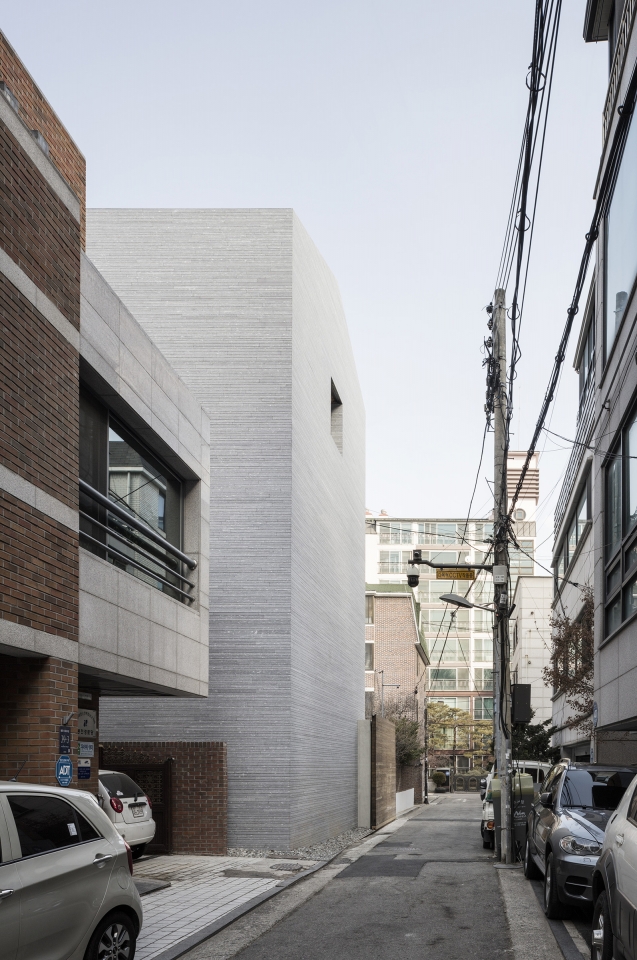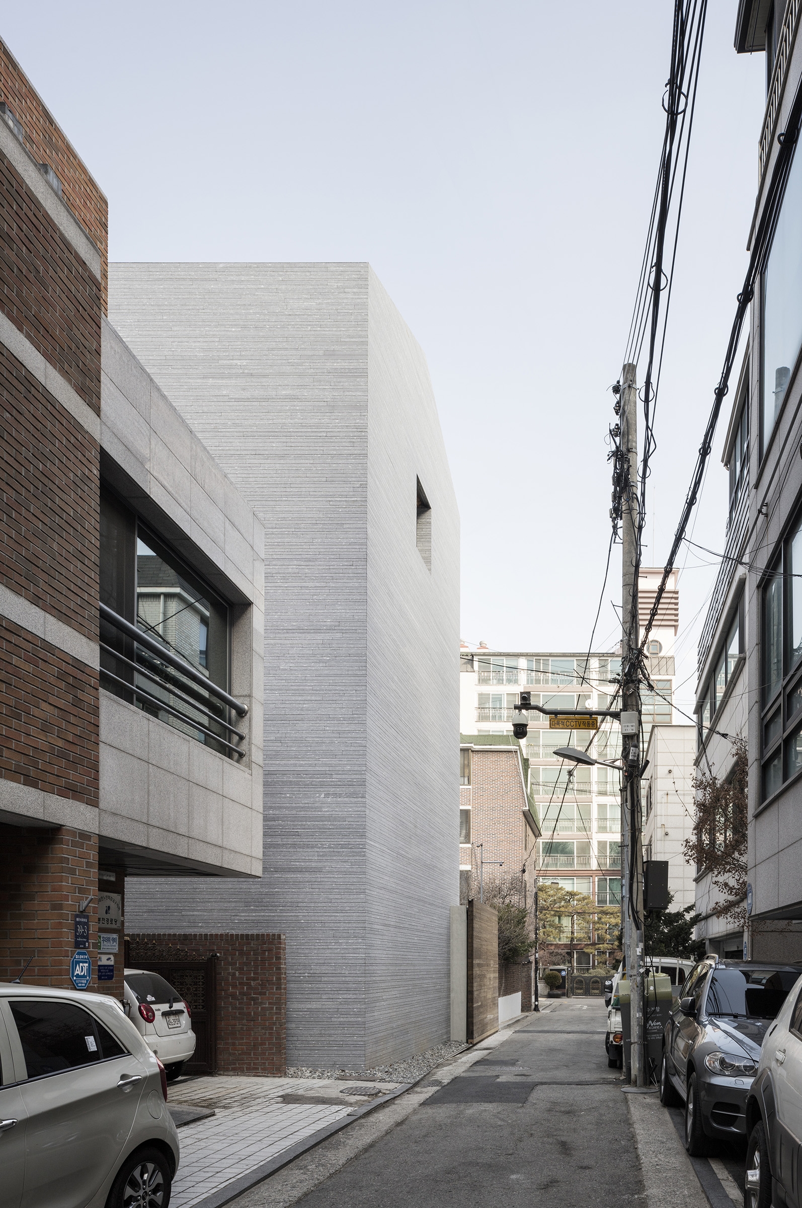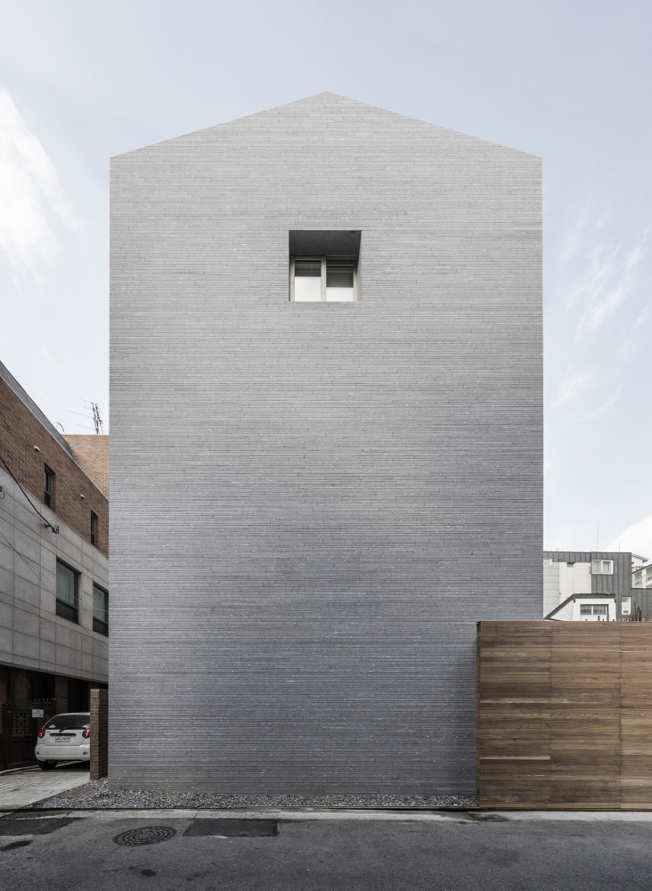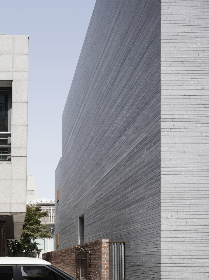 The Boulder House is a residential house for a client who puts privacy first in an area where securing privacy is difficult. To secure privacy, the architect minimized the windows except the direction to the garden in the east, and due to this, the building couldn’t have avoided looking especially massive. To make this rarely-seen characteristic of the building stand out, the architect planned it to look like one gigantic boulder. The architect took great pains in the selection of exterior finishing materials and construction methods to make the building look like one gigantic boulder, and the result is the boulder-looking house.