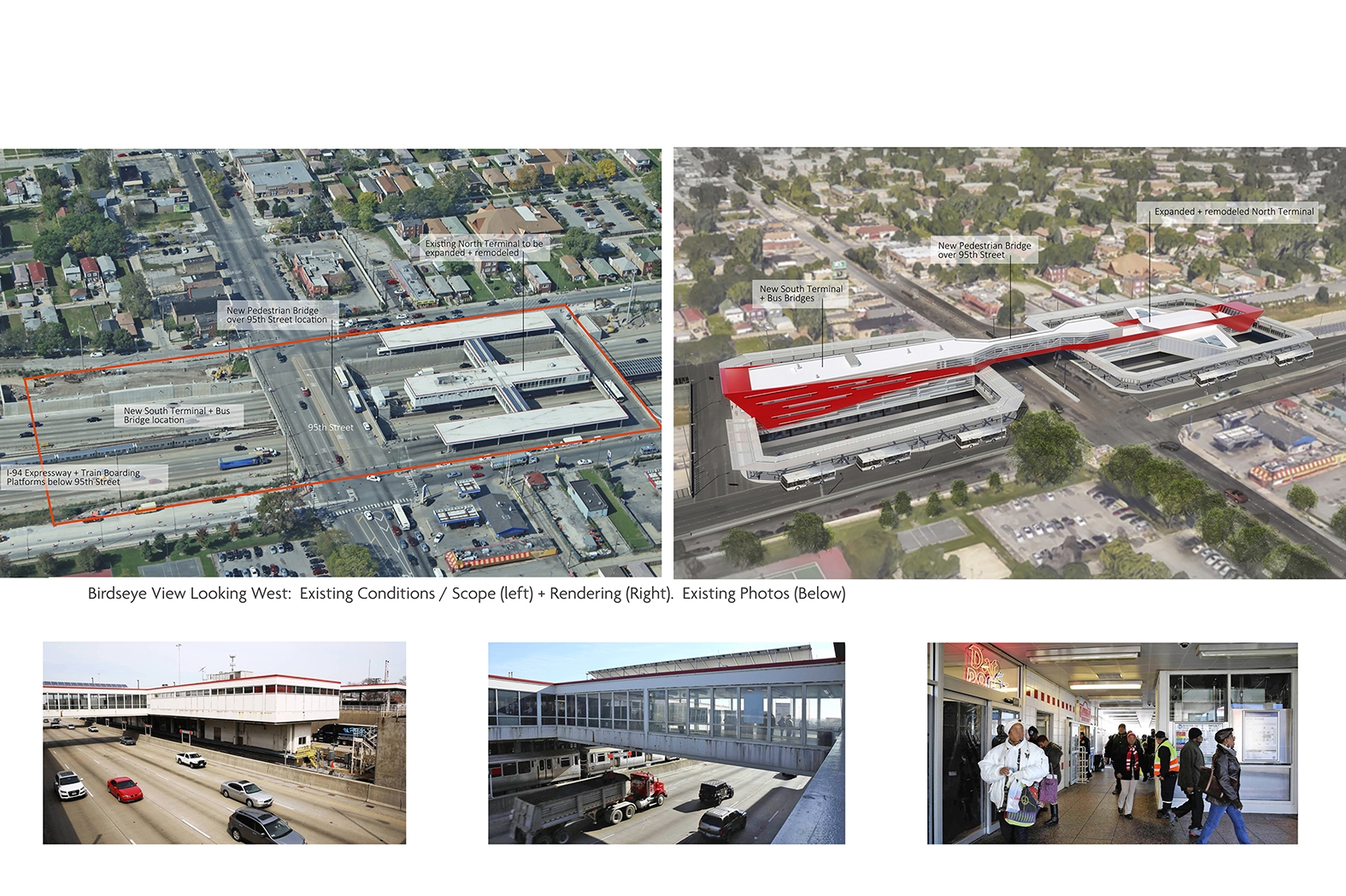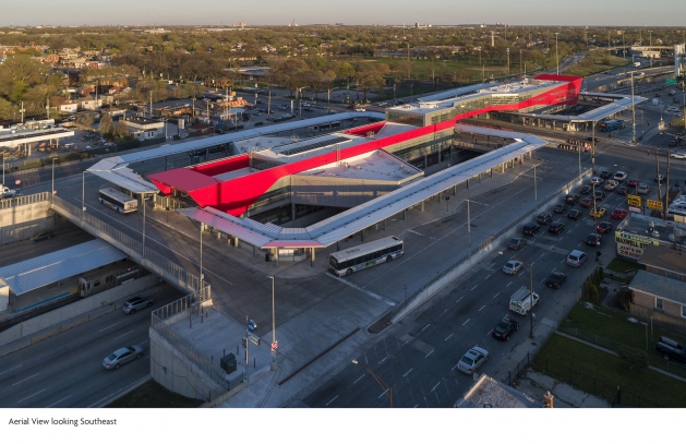 Located between the north and southbound lanes of I-94, the 95th/Dan Ryan multimodal Terminal Station reconnects southside Chicago communities to opportunities throughout the City. This largest reconstruction in CTA history included renovation and expansion of the North Terminal, construction of a new South Terminal, boarding platforms and bus canopies.
