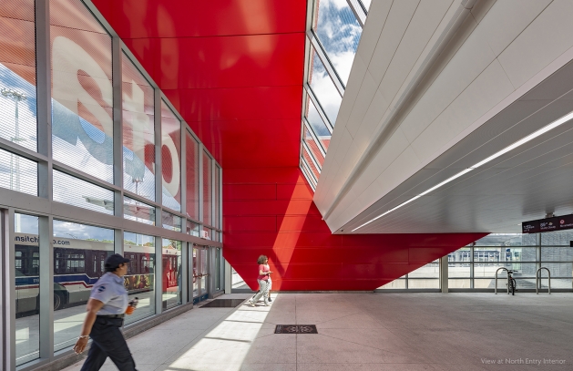 The Station influences its context beyond its primary use as transportation infrastructure to become cultural infrastructure, with ambitions of serving as public sculpture that animates and enlivens on many scales: at the city scale as an iconic gateway; at the neighborhood scale with views connecting east and west from blocks away; and at the pedestrian scale as an open inviting neighborhood station.