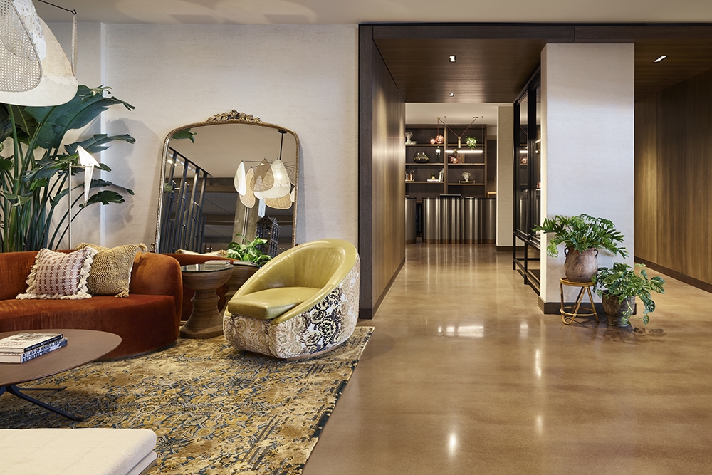 Taking up residence in a brutalist structure, this “communal living room” first and hotel second makes a point of welcoming the neighborhood into its whimsically provocative environment. Designers embraced the architecture, creating thoughtful juxtapositions using bohemian luxe-inspired components and turning material tension into a beautifully balanced design equation.