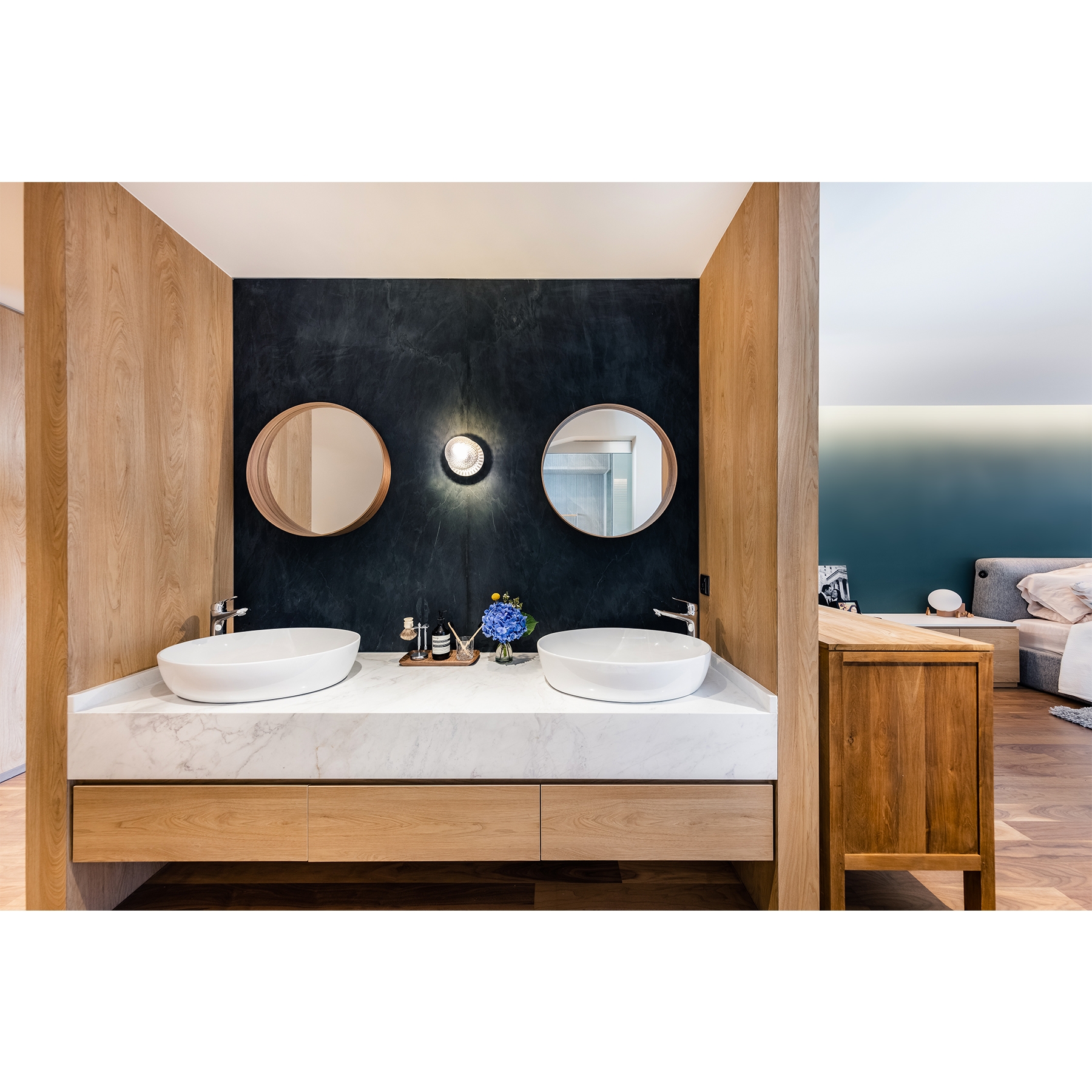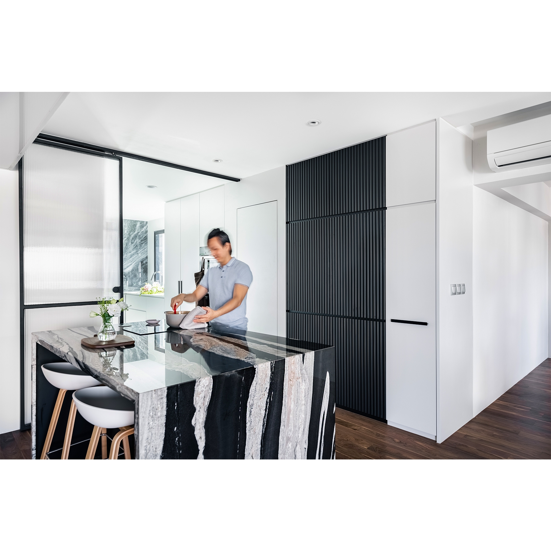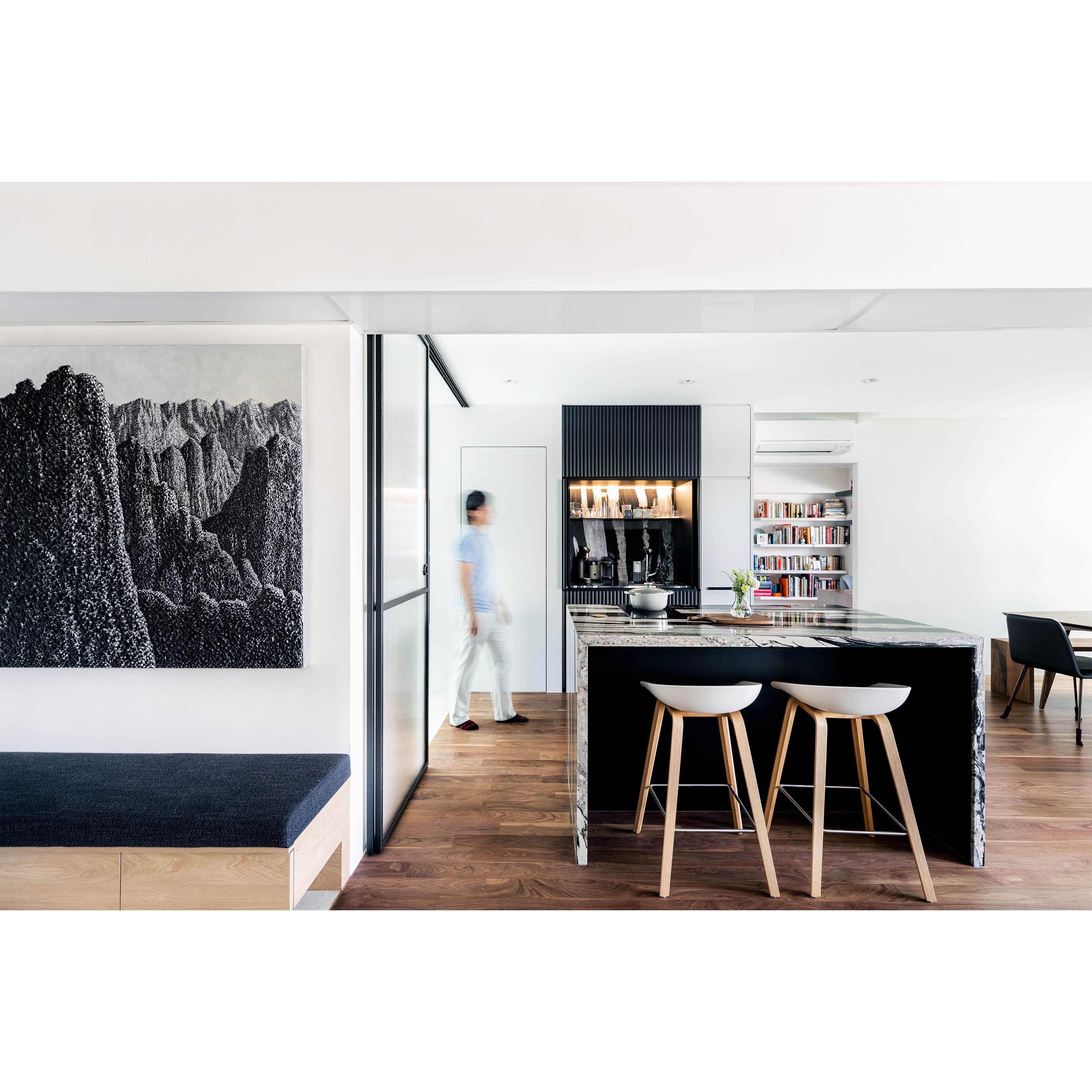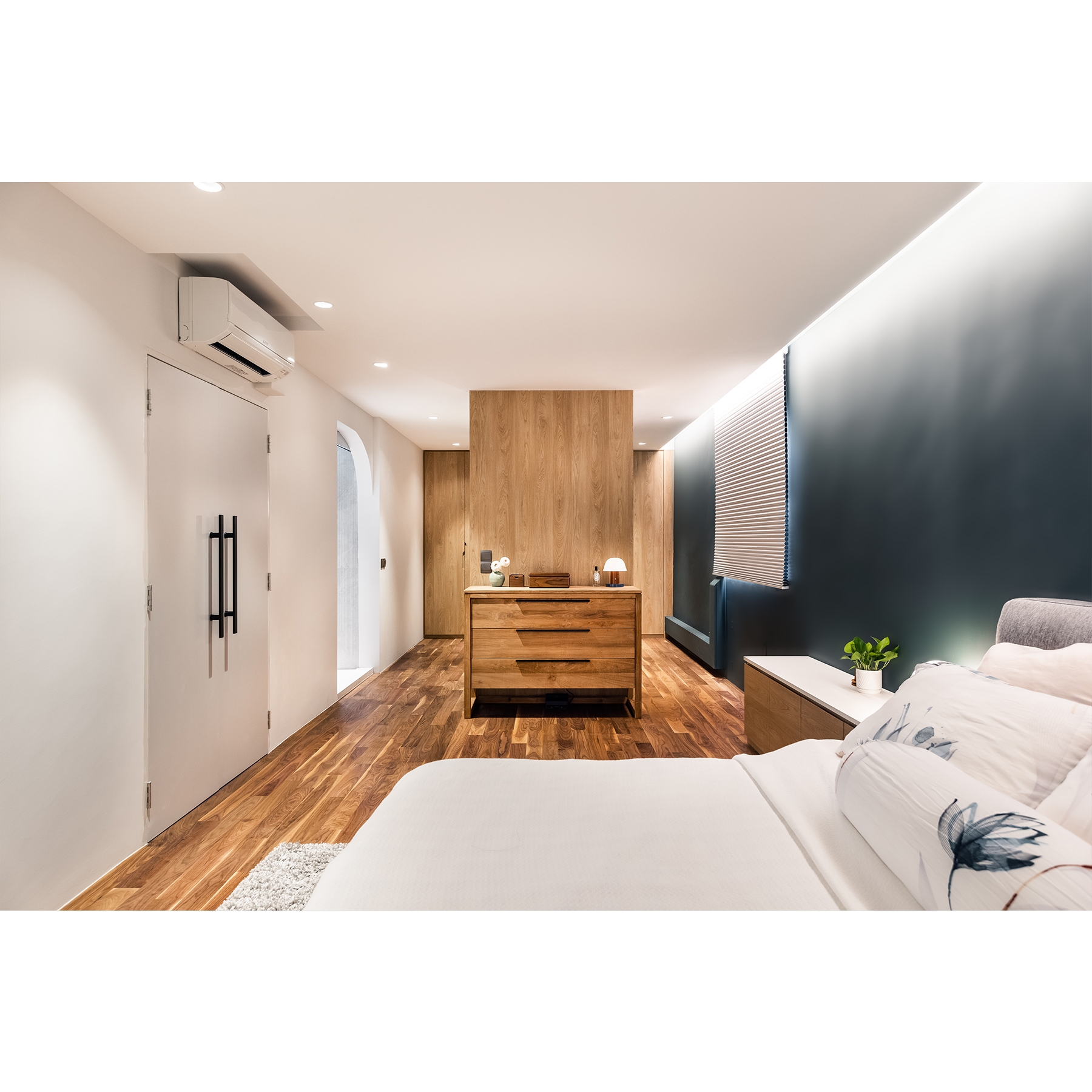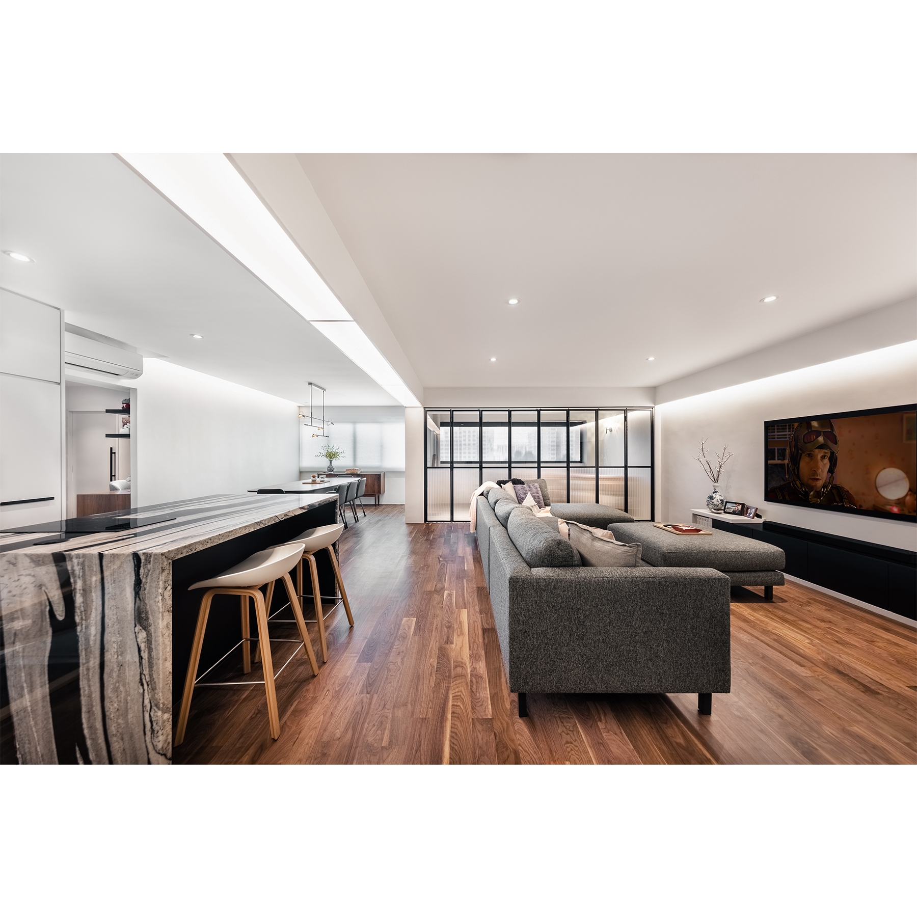 Defined by individualism lifestyle. “Hygge” is not about creating space but to have the art of flexibility and comfortable conviviality. Every quality activities perfectly adapt by itself. For instant, Cooking place that interacts with wet & dry function that can smuggle with a group of friends. The living area also unfolds as a dematerialise garden amenity. Without constraints of organised activities, the sleeping place was sculptured to an aesthetic juxtaposition effect. A velvet blue green is also carefully protract to gravitate owners likes.