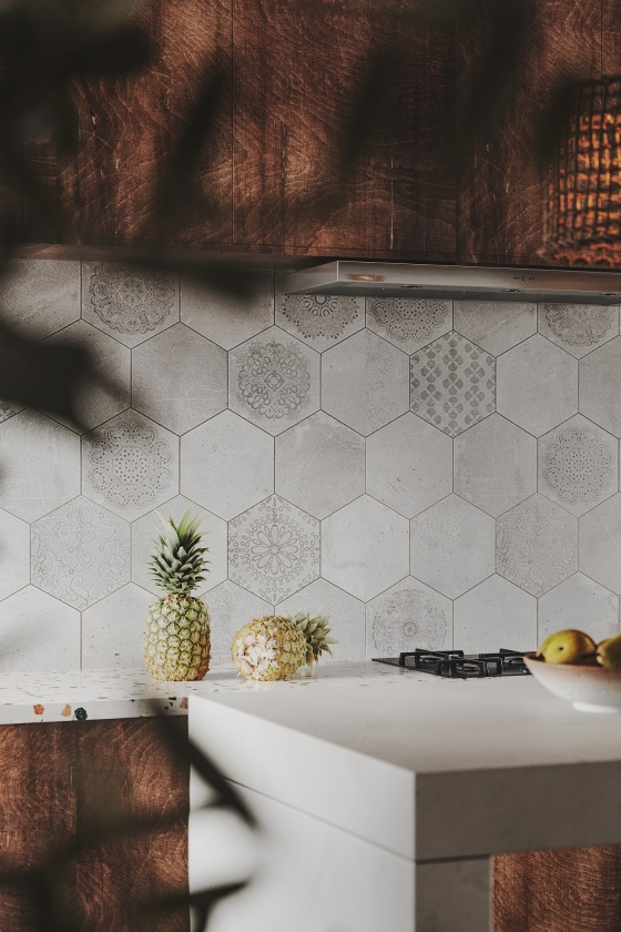 It is also gentle with the wood color. Bright and fresh. The kitchen exudes a relaxed atmosphere. Quaint furniture texture. Retro artistic presentation. Wall pattern closer to life. Not simple design method