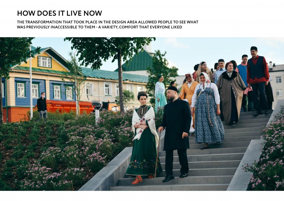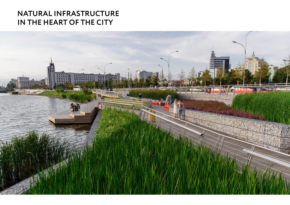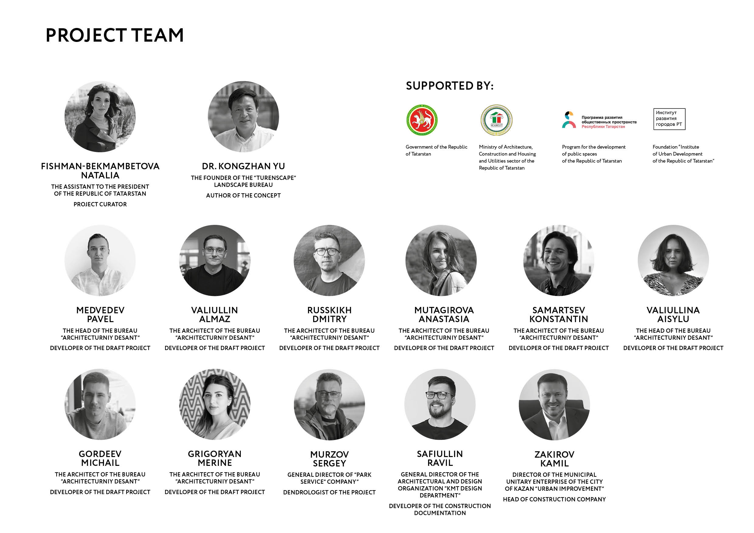 The Turenscape + MAP consortium won the competition in2015 for the development of the concept, initiated by Natalia Fishman-Bekmambetova, the Assistant to the President of the Republic of Tatarstan. The Tatarstan Bureau “Architecturniy Desant”developed and implemented a project.
