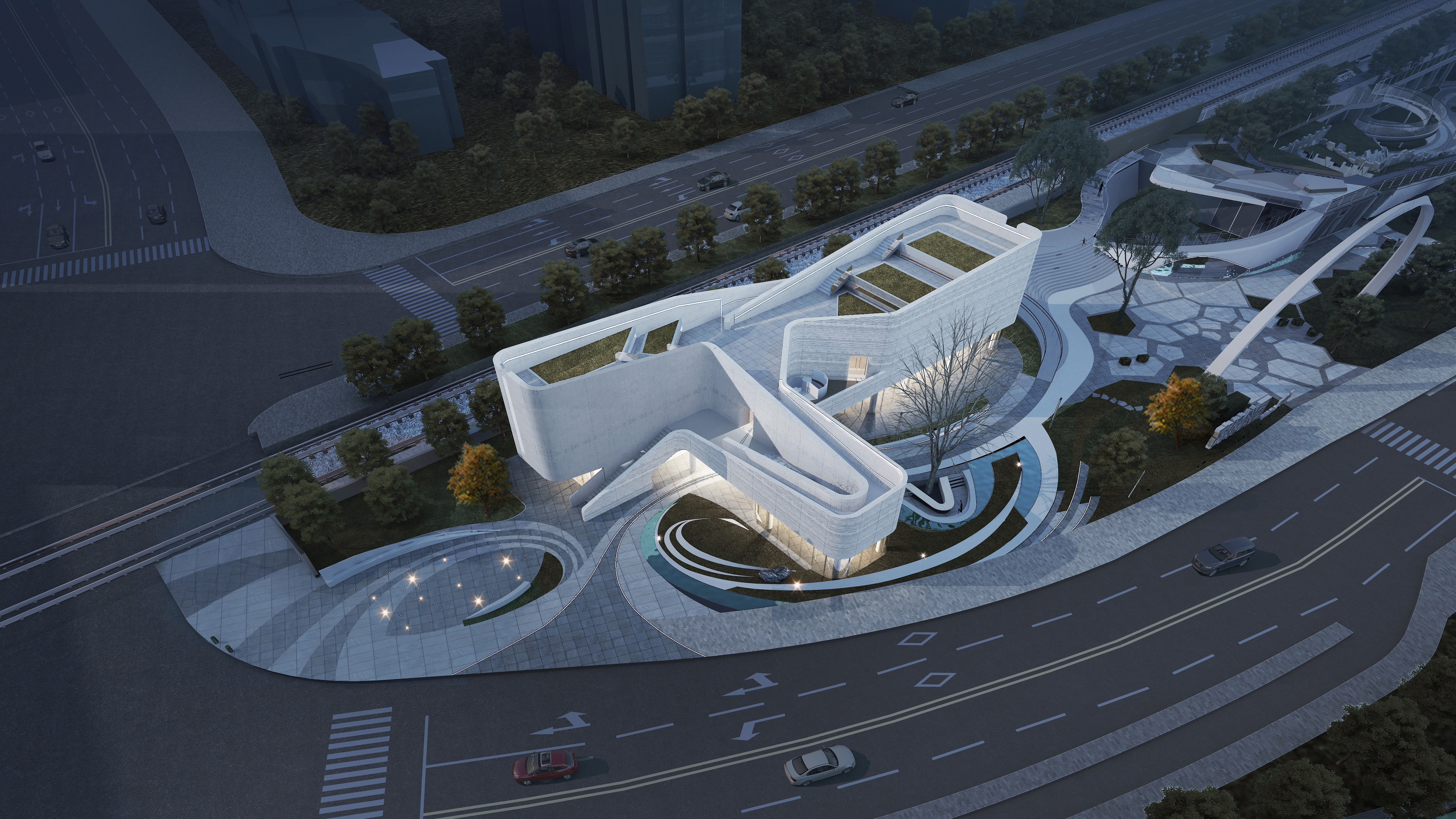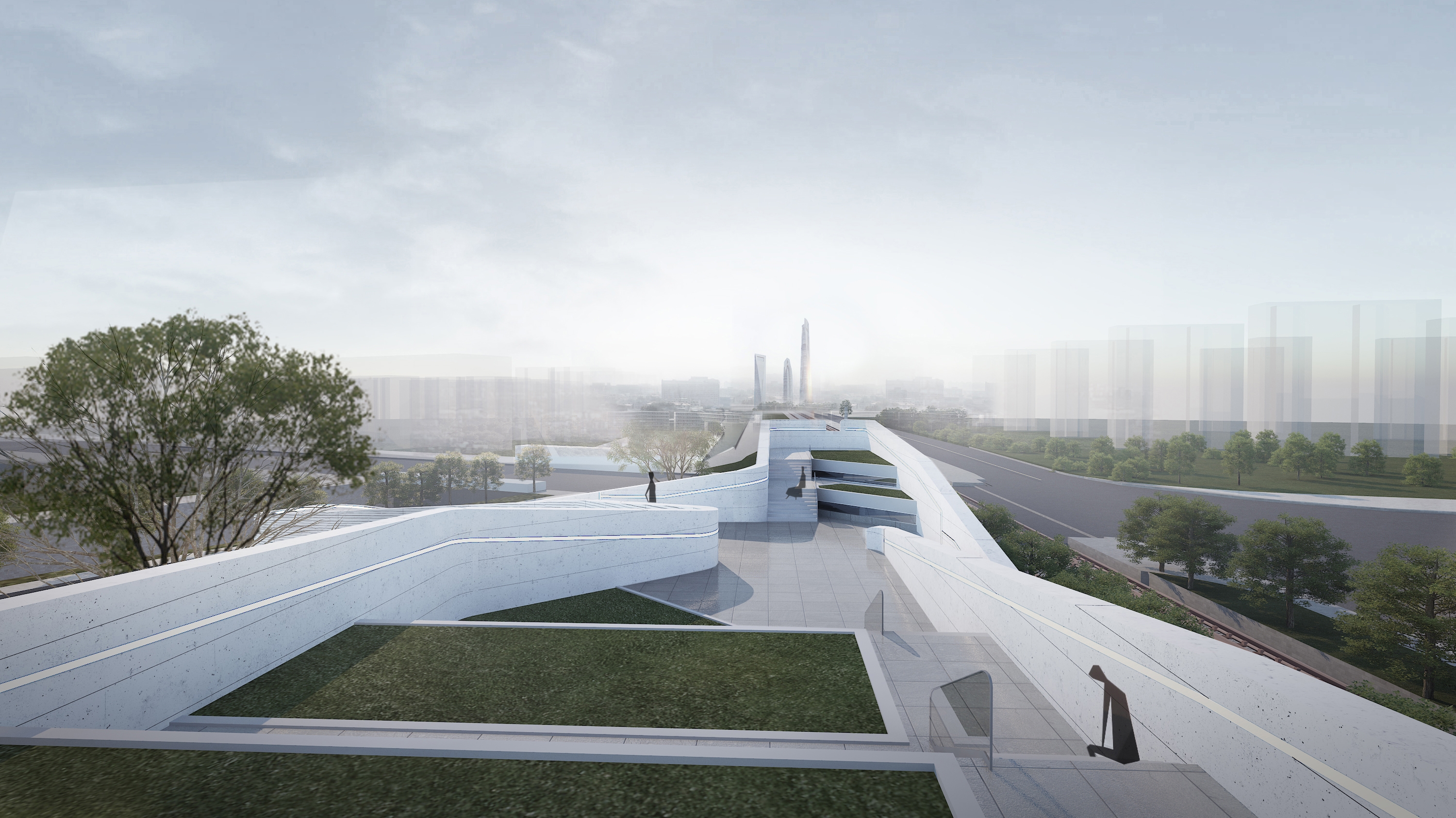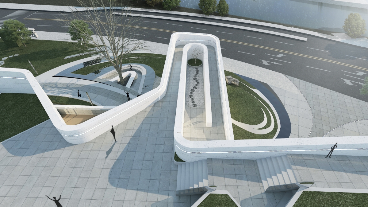 The project is located at a crossroads in Shanghai, China. If you look at here, you will find that the pressure from cities and streets. The rate of regional green space is too low, and citizens lack space. The freight railway still in operation has a negative impact on the site and surrounding traffic. In this renovation project, the architects needed to redefine the place, reshape the building space, and create a more positive impact on the city. We choose to open the site, build a park, and activate the rest negative urban space and achieve limited regeneration between old and new buildings. In this project we reduce the space on the first floor and open up the urban public space. The concession of space forms the second moving line of three-dimensional space. The reconstructed roof system optimizes the interior space and provides roof lighting conditions at the same time. The three-dimensional path grows from two directions, forming a link at the roof of the building where people could have lots of activities.The concrete texture it is further enclosed to form a new space. The new building will continue the dynamic elements of the park and complete the process of "rebirth".