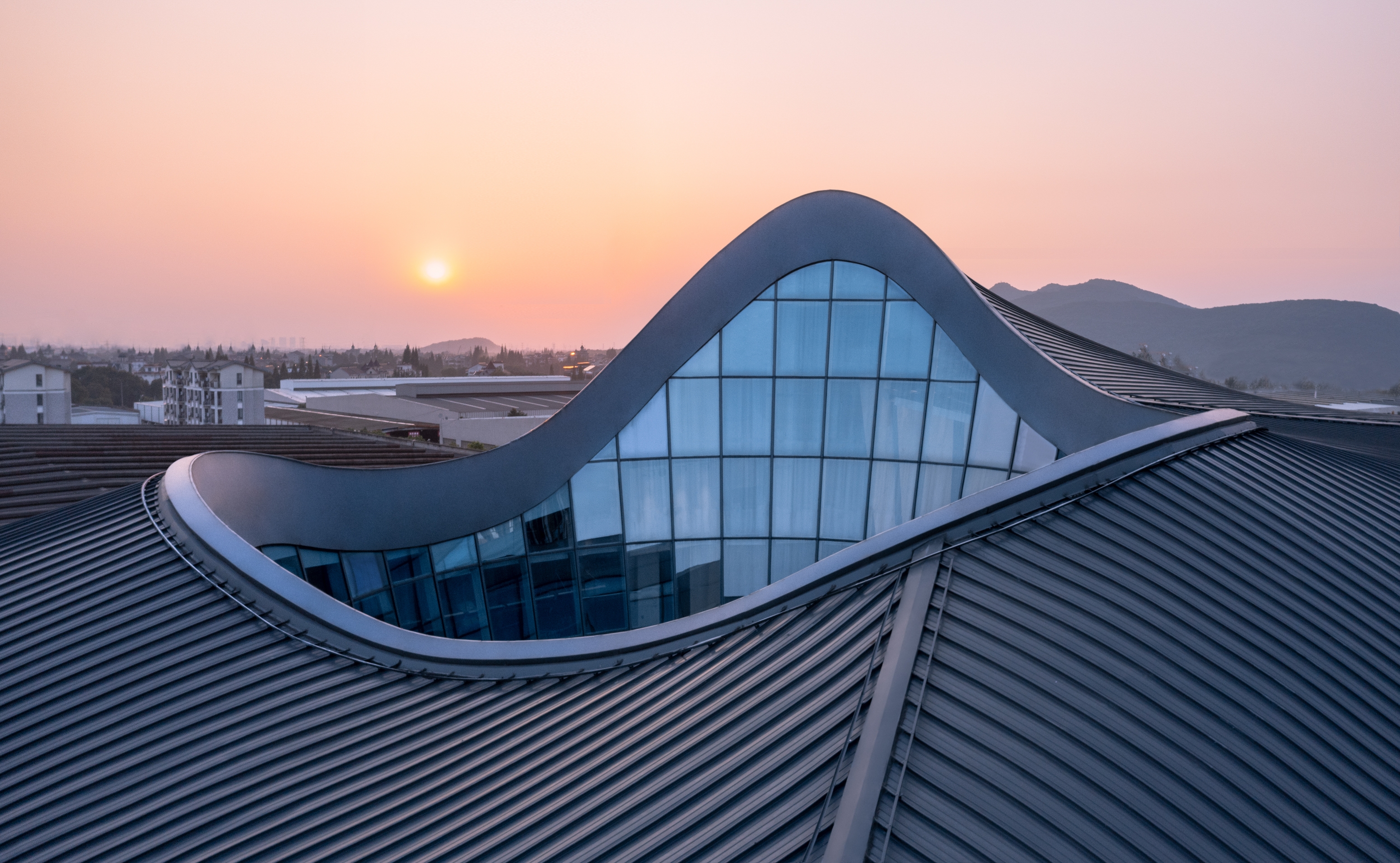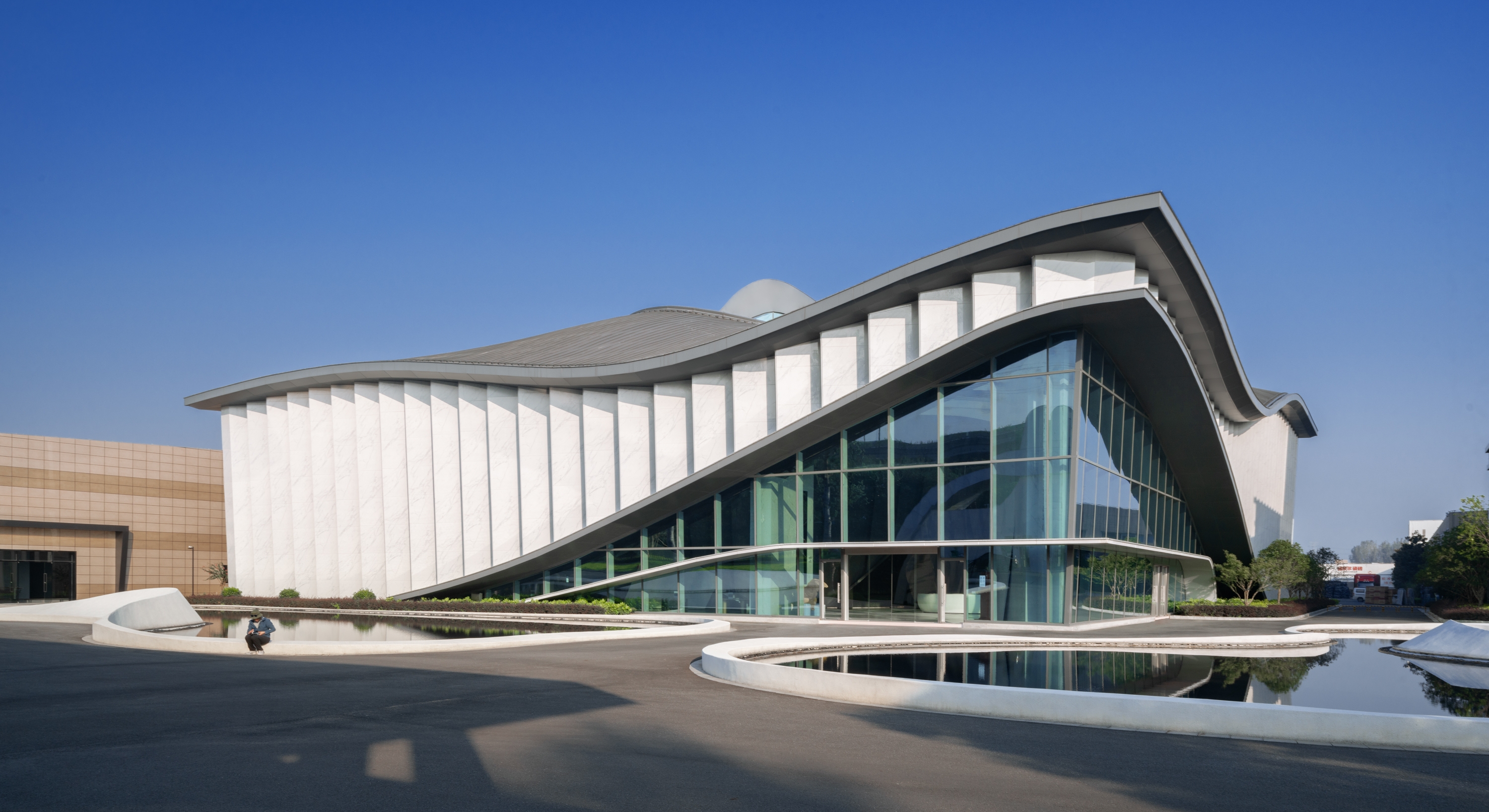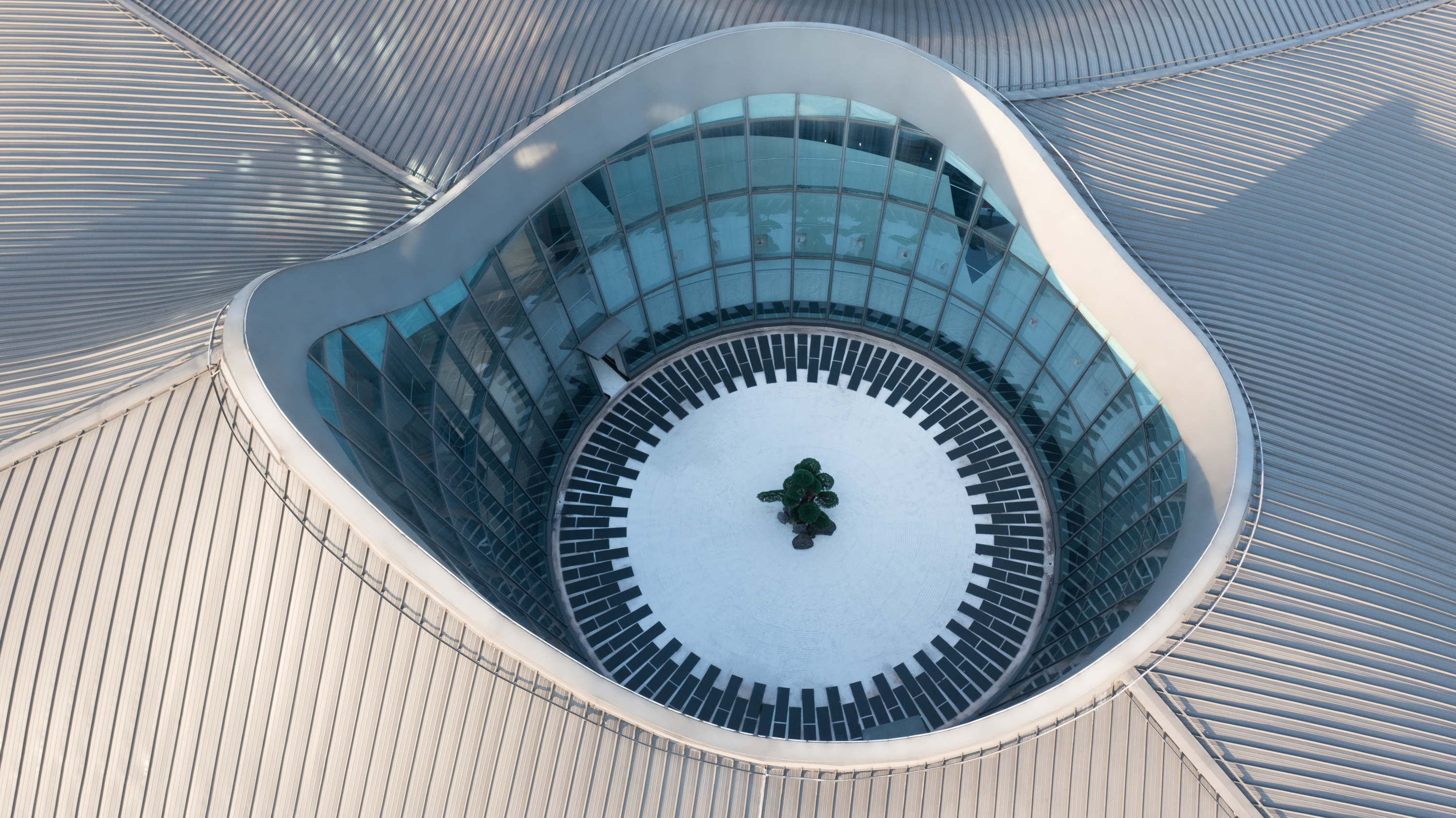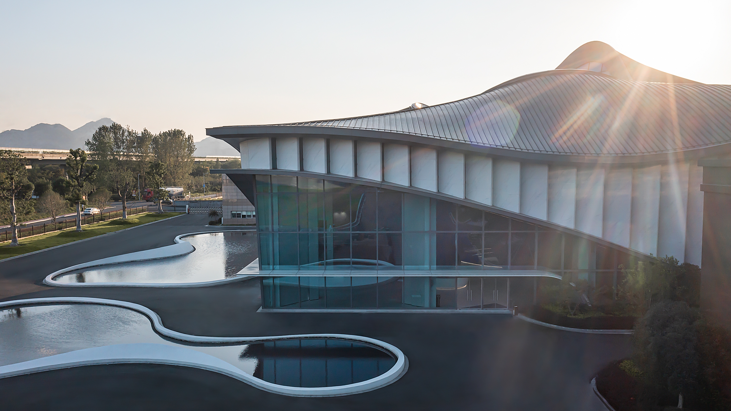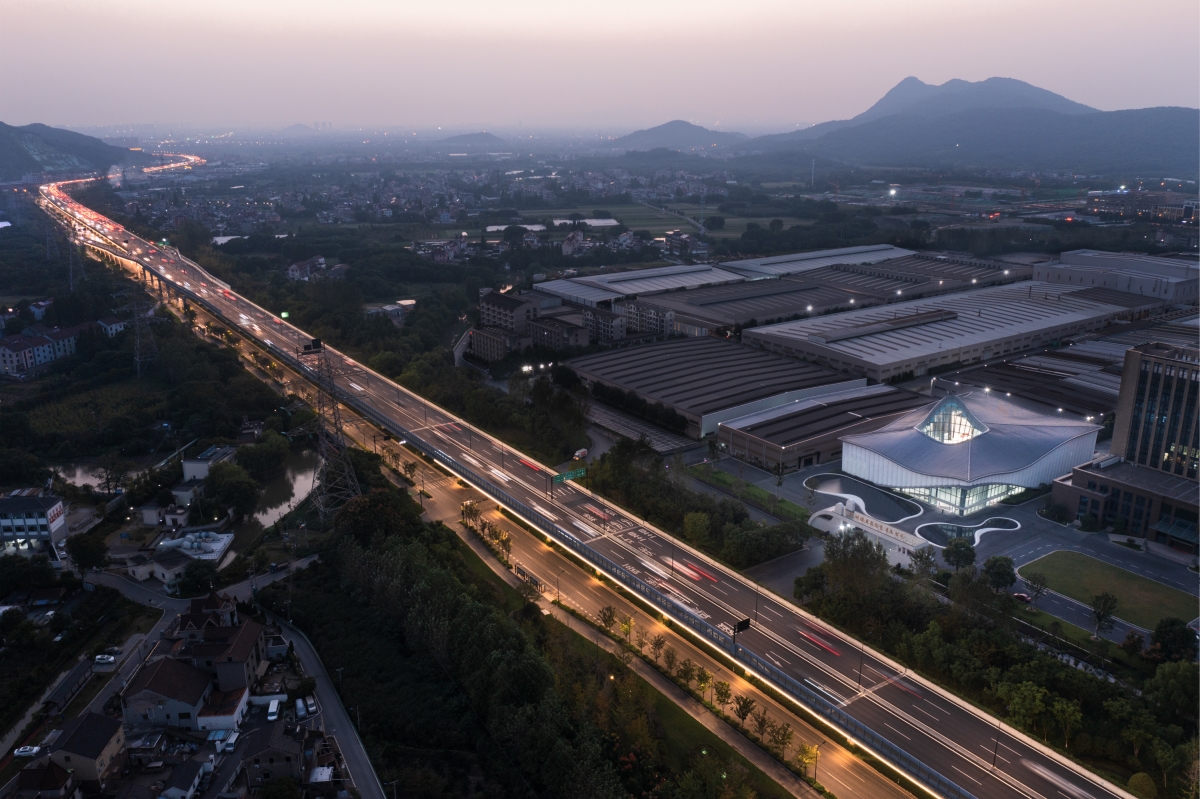 The building is based on a square, and the space hopes to echo the spirit of ‘Cong’, ‘Cong’ is one of the ‘six tools’ recorded in Zhou Li, ‘six tools’ were the sacrifice ritual which is used by Liangzhu area to carry its own belief system. The inspiration of architectural configu ration is spread out from ‘the round sky and square earth’, and the shape of the mountain, which is surrounded by the Half mountain and the Linping mountain, extracting to form a flowing curve and shape. It has become a kind of freehand sloping roof. Under the large roof of the building, it meets the functional practicability and the economic demand of construction.