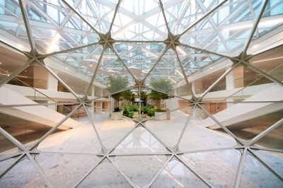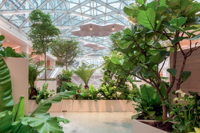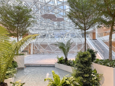 This offices transformation operation, which increased the surface area from 31,000 m² to 42,000 sqm is opening the former building to the city offering a new public place with a foodcourt, and creating biophilic place that is versatile, service-oriented and that improves quality of living. Here is the new generation of tertiary spaces with integrated AI tecnologies. In addition, a set of green terraces accessible to all employees have been installed on the roof.
