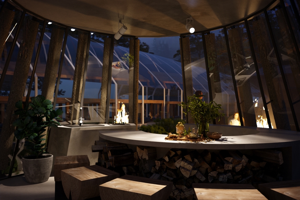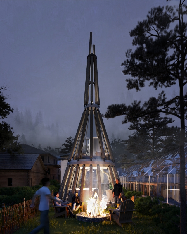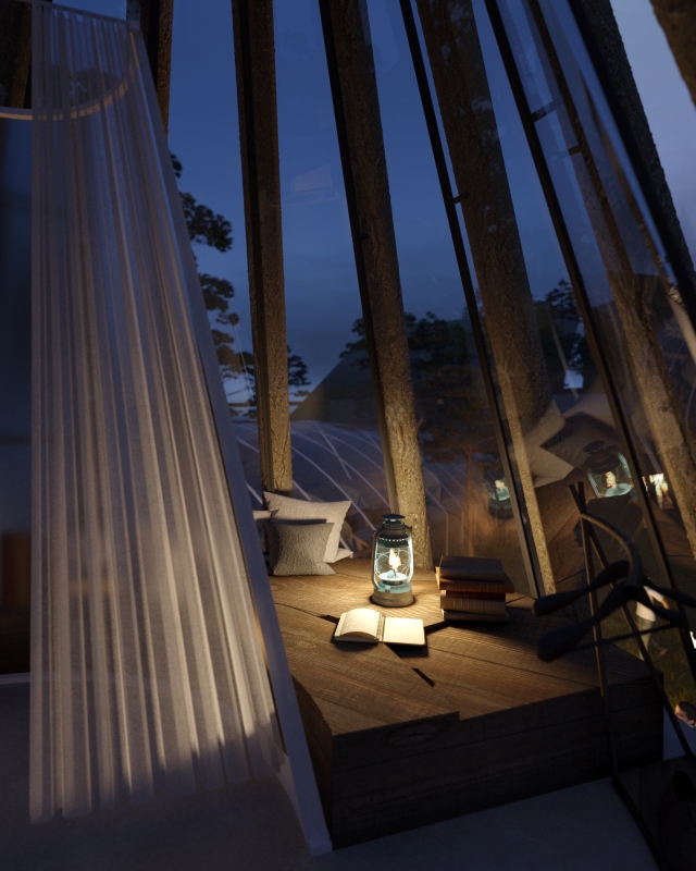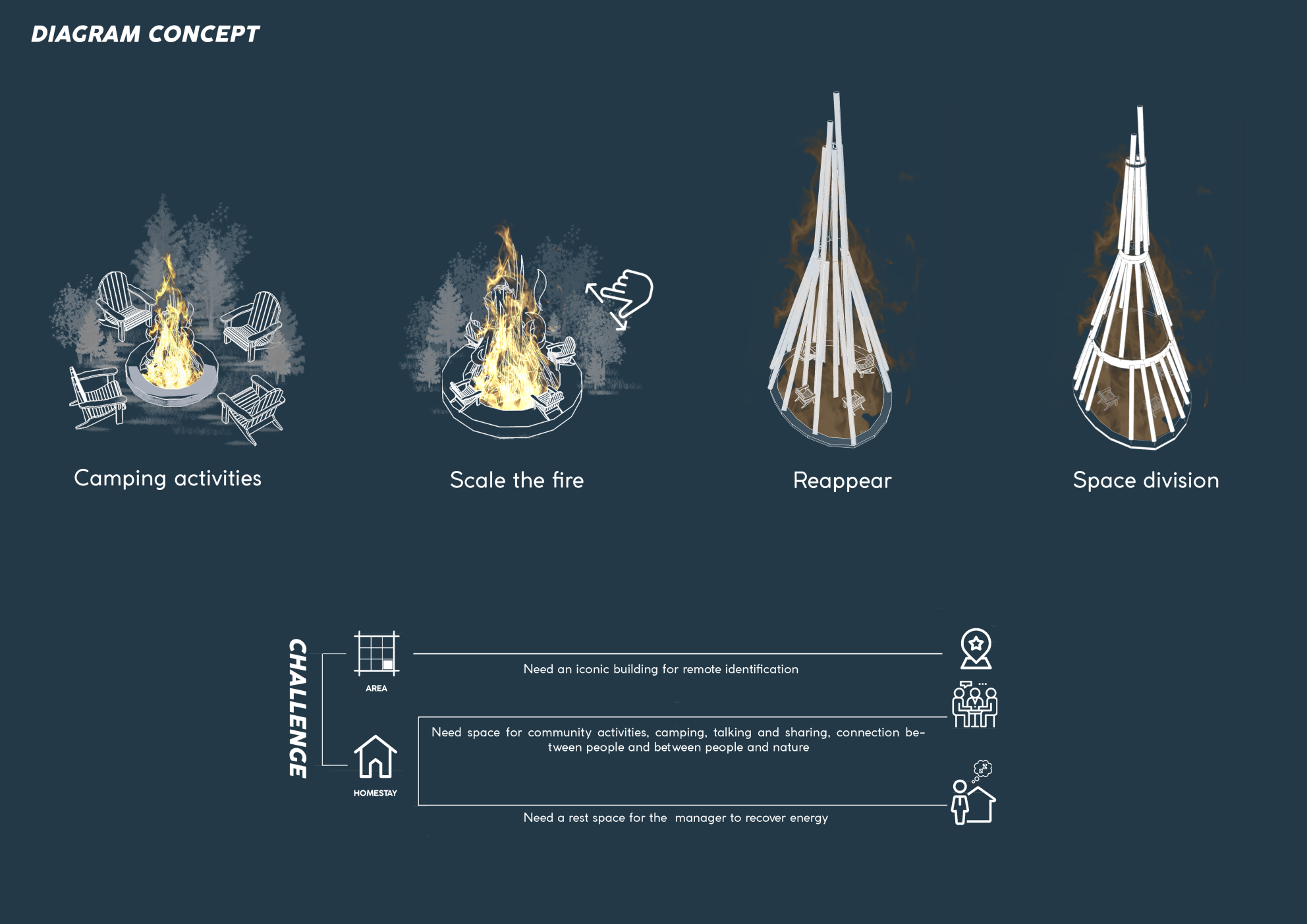 The image of flickering campfire wood has since become an ideal source of inspiration. We are always looking for a design that is both intimate, connecting people to people and between people and places. What's most private, we choose to put it on. The bar is located on the ground floor. The second floor is a place to stay for the guardian of the homestay and use the solution to minimize the uses. We decided to choose local materials such as pinewood, glass, etc., so that the building has a slightly integrated directly with the inherent naturalness of the context.