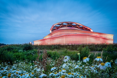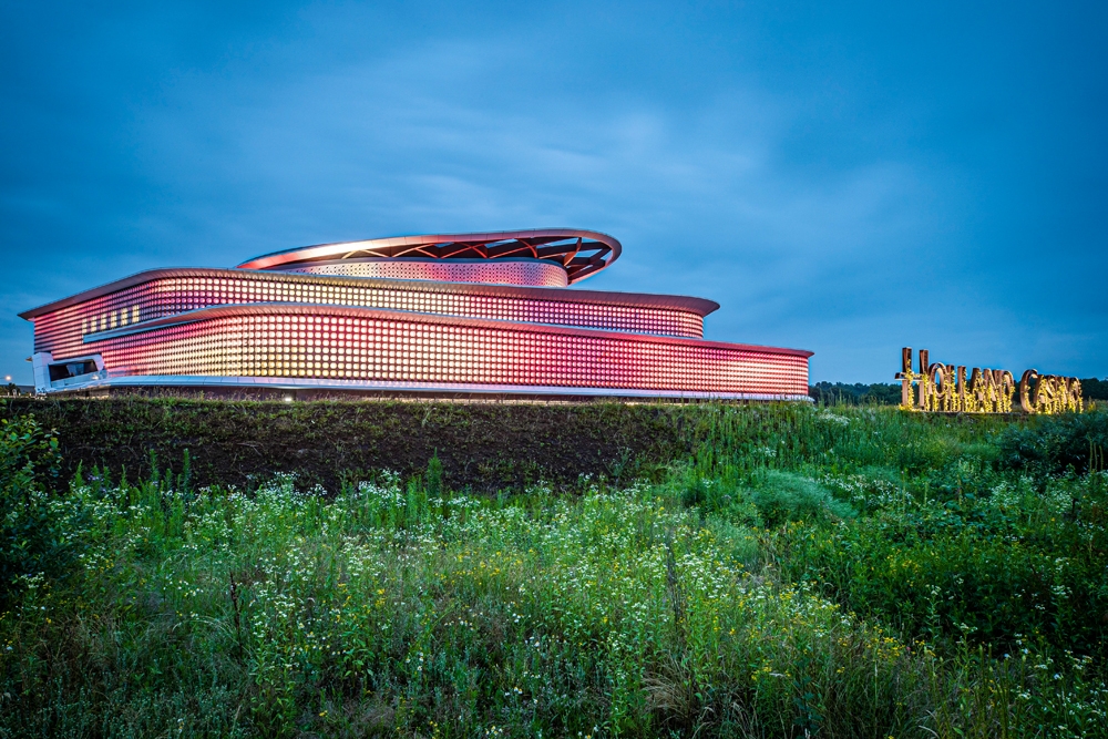 The spectacular design for a flower-shaped, sculptural building is the new landmark for the City of Venlo. Behind its show-stopping good looks, it embodies two major design principles: sustainability, and optimizing the user experience. From a distance, this unique building is highly visible, appearing as a kind of welcoming gateway to the Netherlands. The colour-changing interactive façade provides a breath-taking light show during the darker hours, while emphasizing the casino’s flower-shaped structure.
