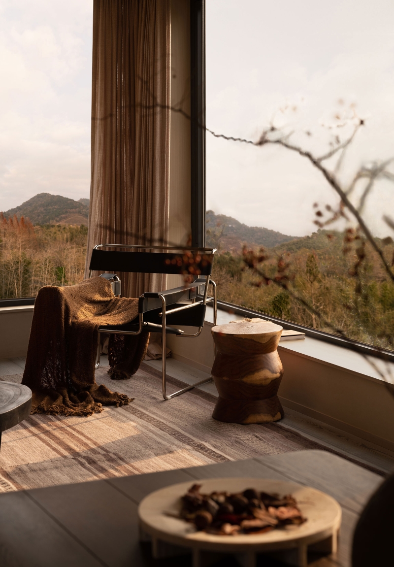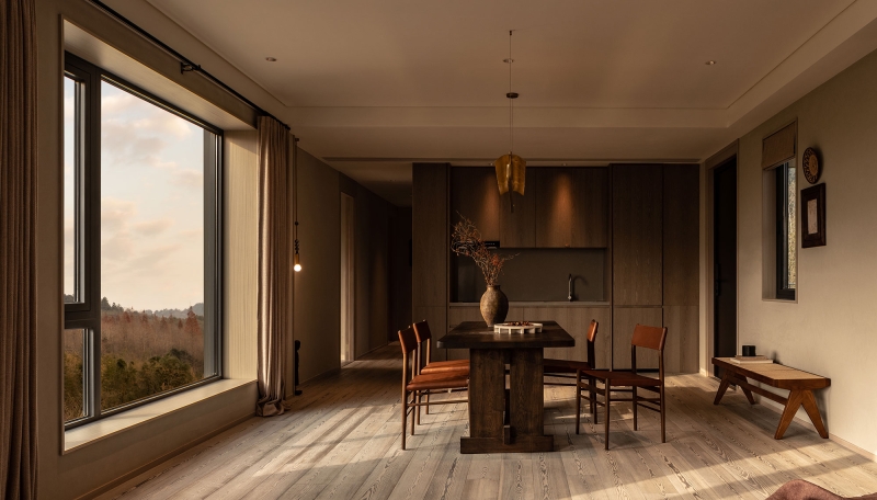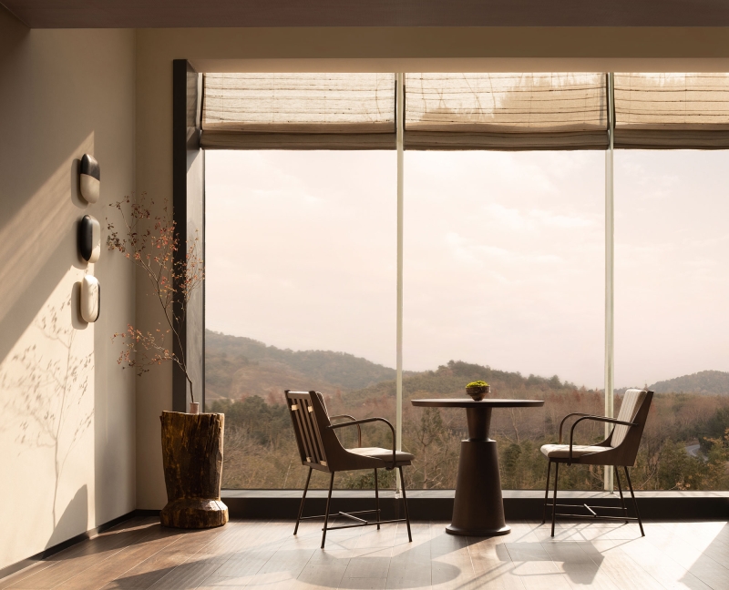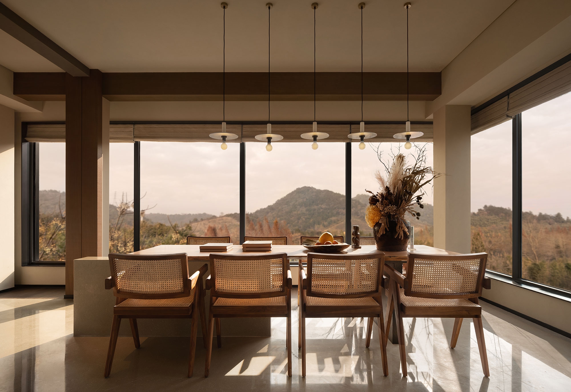 Being harmonious with nature, the design is guided by original condition with spatial aesthetic. The idea of living in harmony with life that the designer bears is based on the harmony between people and others, nature, space and life, a kind of pure power without the limit of form or idea. Therefore, the designer is committed to build this coffee shop as a poetic space and homey residence.This project includes water bar, dining area,deck and other areas, providing infinite possibilities for residents' daily life. The harmonious nature, rich humanities and colorful life constitute the media of the designer in creating the space and landscape. From the perspective of the designer, structure and porcelain bear essence beyond themselves. The seemly free proportion and irregular order of the space realize the space change from exterior to interior. The abstract mural exists the same in four seasons, then art integrates with nature, presenting an ideal scene.Still and quiet, passing and returning constitute aesthetic contrast in the natural landscape. In the changeable scene, the relationship between people and nature delivers the struggle and meditation of life to some extent.