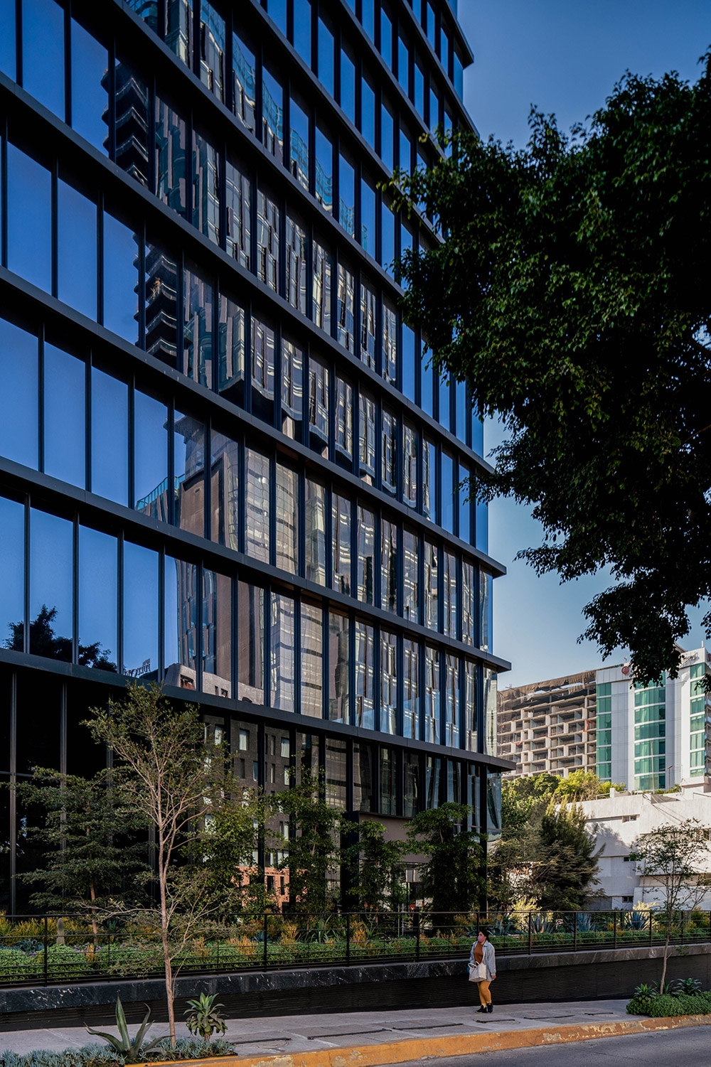 The project located in one of the most important financial arteries of the city of Guadalajara, has 18 levels of corporate offices and two commercial levels. In response to its urban context, the building proposes a commercial floor surrounded by public space that absorbs the existing unevenness between the streets, unfolds creating the access ramps to the building and allows the transition for the different uses. Its volumetry uniquely expresses its iconic will, but it is not only a formal desire. The search to develop a building with optimal thermal behavior and the desire to provide the best views to its users are part of the variables that determine the design. Torre Helix complies with the highest international standards for corporate spaces and creates a balance between aesthetic considerations and the search for the application of better design and construction techniques to achieve energy stability and sustainability.