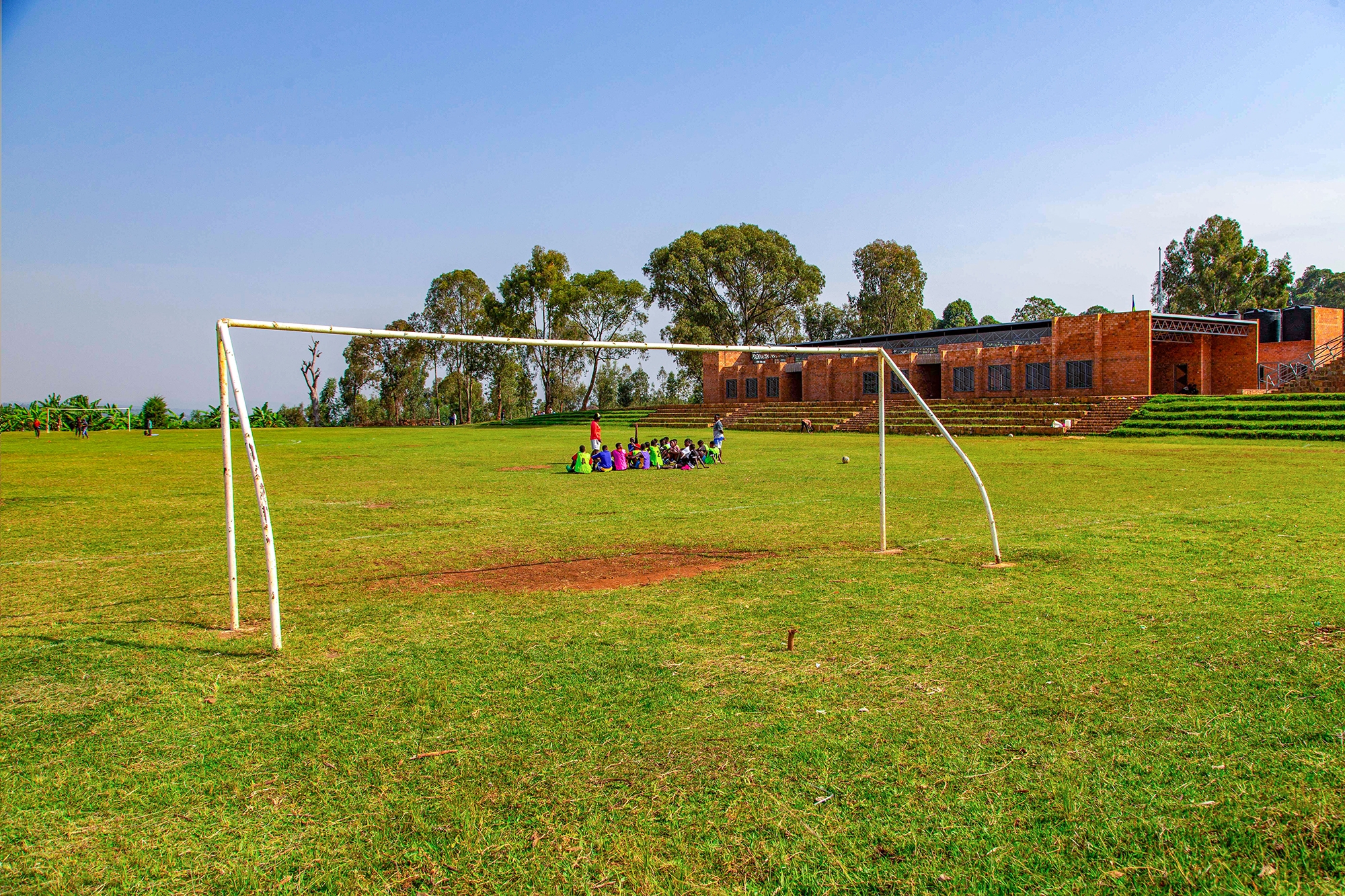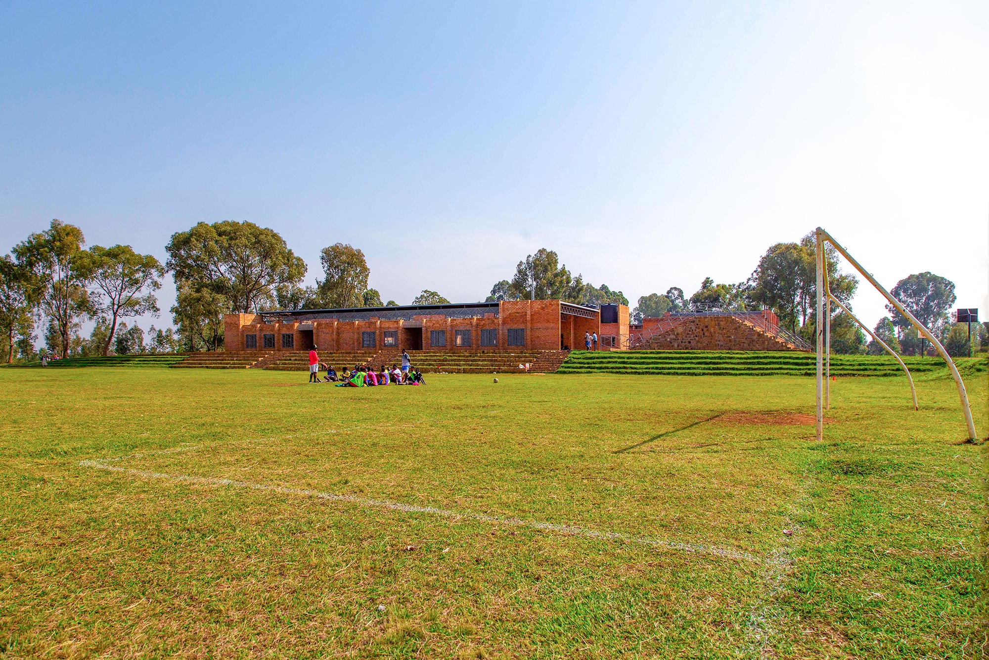 The Learning and Sports Center is located among the rolling hills of rural Masoro in Rwanda where nonprofit design firm has been working for the past 14 years. The center includes a library, classrooms, IT education rooms, exercise spaces, community teaching gardens, outdoor seating, a basketball court and soccer field, all of which are accessible to the community members free of charge.