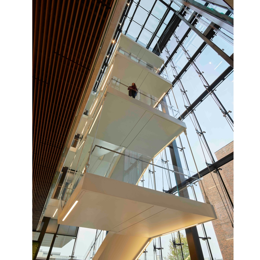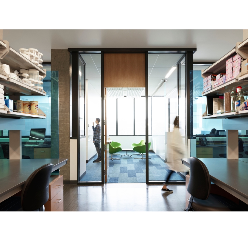 The building houses 40 principal investigators and their teams where research labs, teaching labs, an active learning classroom, café, vivarium, growth chambers and greenhouses holistically integrate their approach to life sciences in a space designed around creating a healthy collaborative environment.