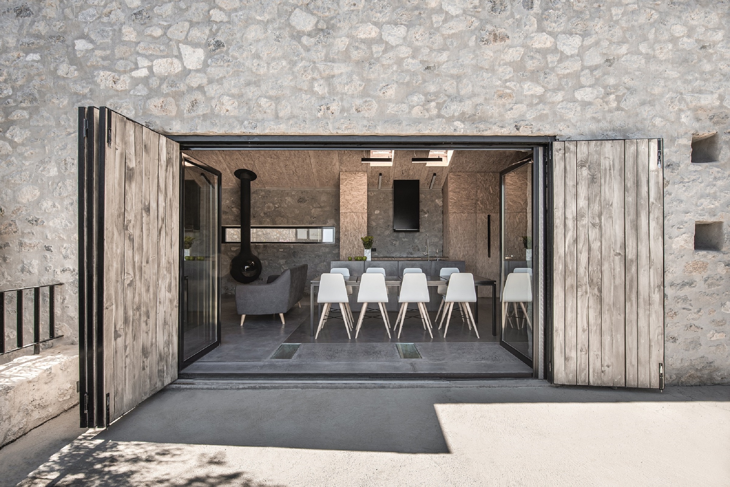Environmental, and regional economy benefits were accomplished by specifying craftsmen and natural materials within a 100-mile radius of the construction site. Reclaimed stone was sourced from the nearby storage and supplemented with a new one from a local quarry.