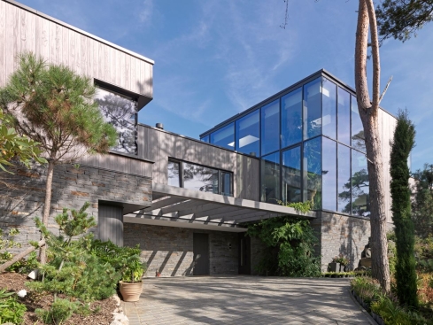 Built into a rugged hillside overlooking the extensive natural coastline in South Wales, the innovative new-build family home is progressive in design and sympathetic to its rural surroundings. The home sits beneath towering pine trees, making extensive use of Kebony, a global leader in the production of sustainable wood, for its façade. Locally sourced Gwrhyd Pennant Stone is also used on exposed walls to blend naturally into the remote landscape.