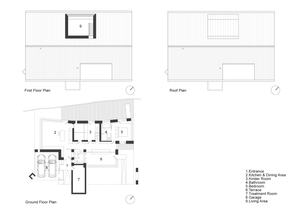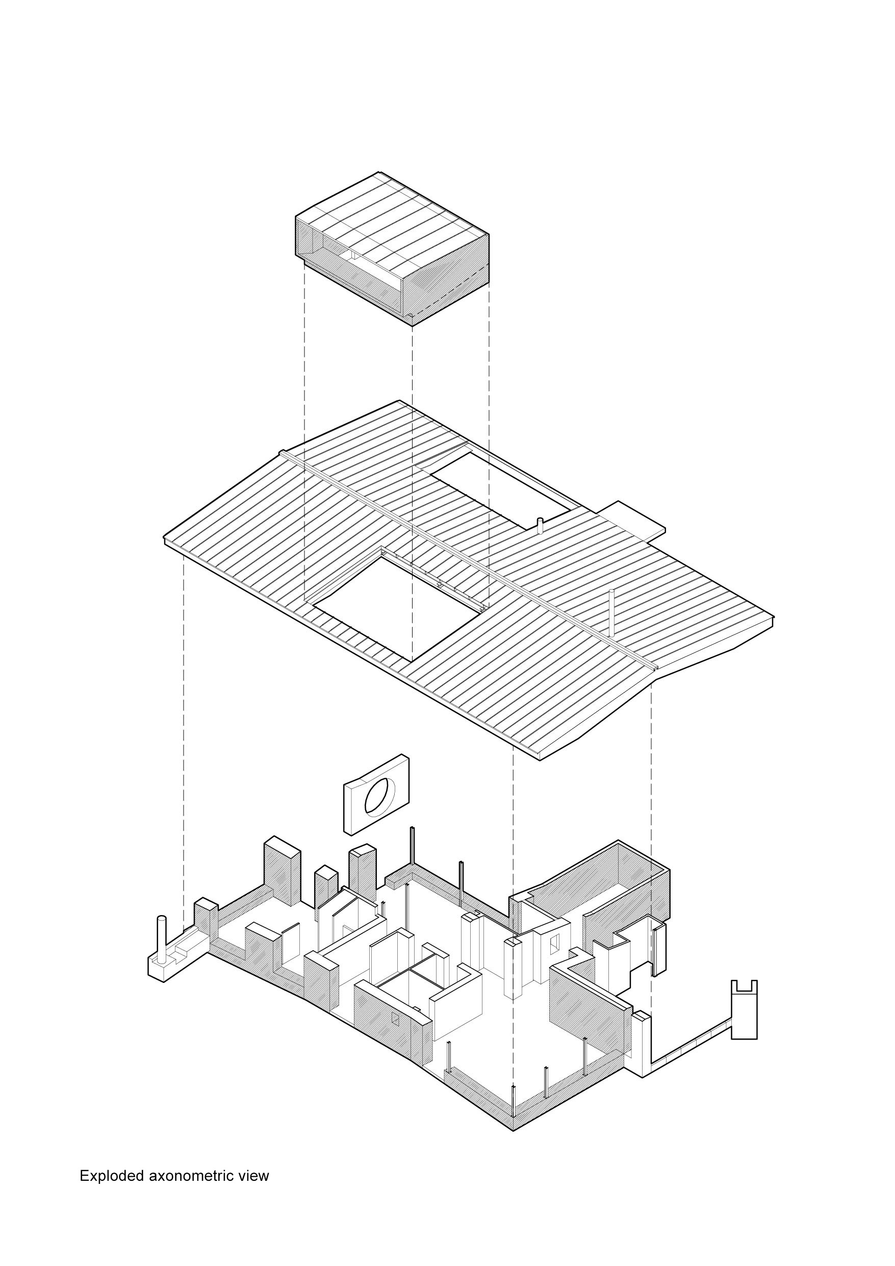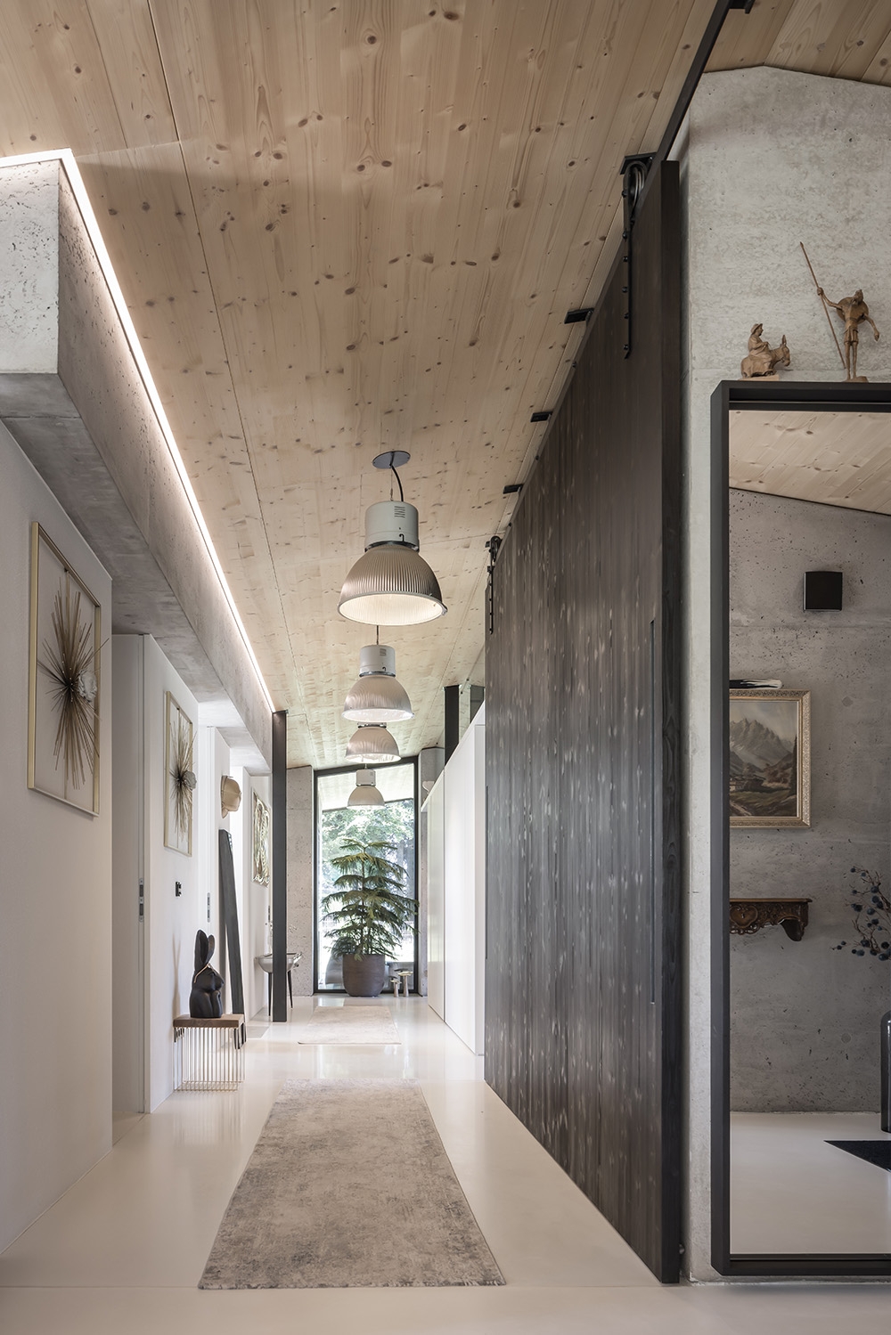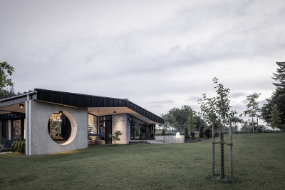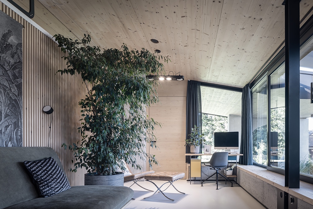 The monolithic structure follows the formal principles of curating space and framing the surrounding landscape through solid and void. The modern interpretation of vernacular architecture of the region, a single-storey volume with an extensive overhanging roof that withstands the harsh winter and hot temperature in summer, becomes an inhabitable seamless sculpture cast in concrete. Rooflines, concrete structures, and void spaces craft high rooms with wide openings. A massive dormer offering magnificent views to the West sets a striking accent.