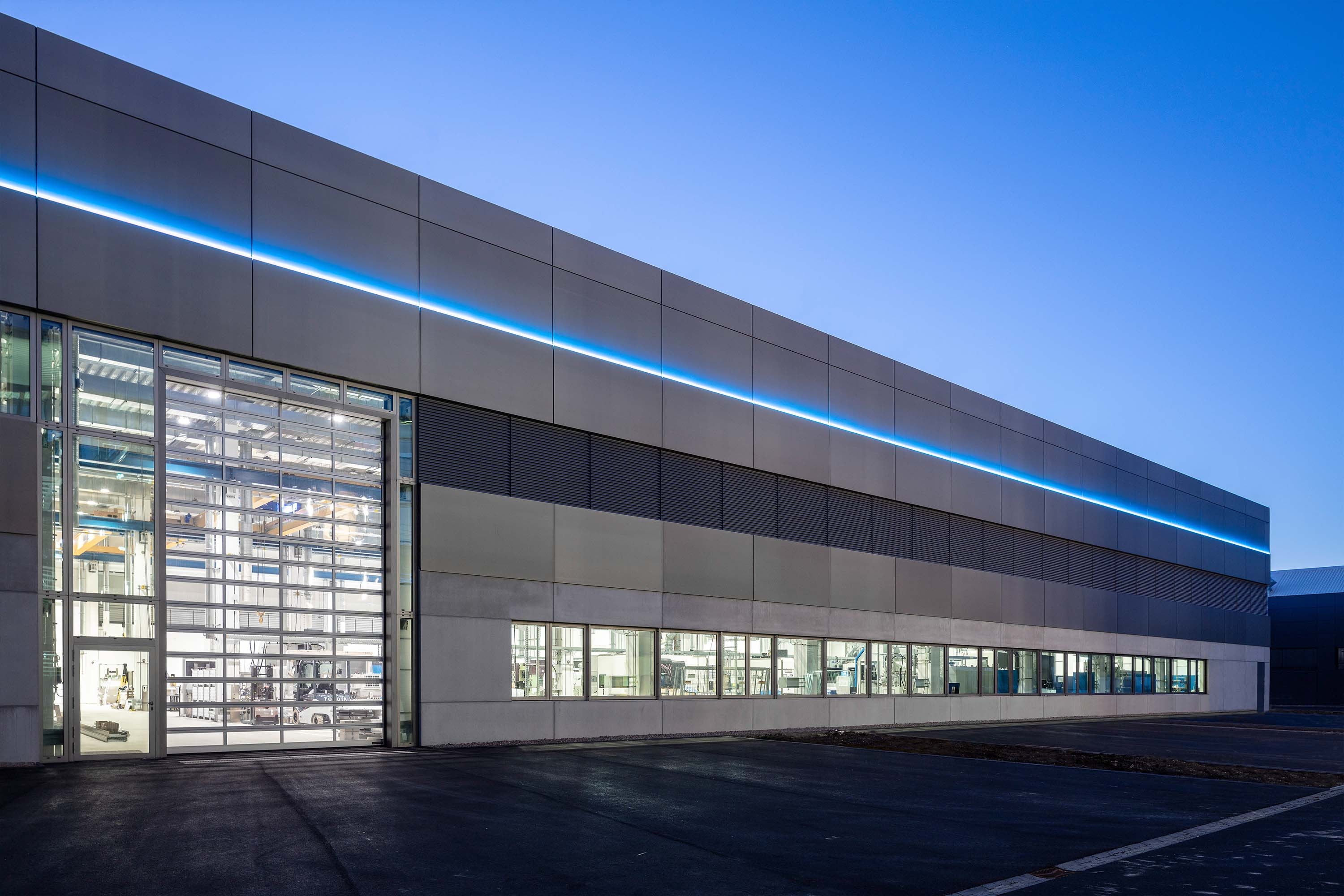 The new hall comprises about 3000 m² of floor space distributed over three hall bays. A 2-story building supplemented with building services and ancillary rooms.