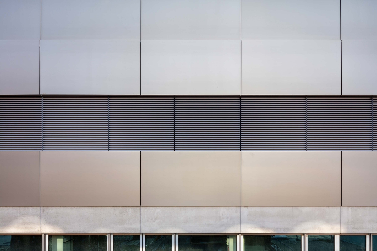The base of the entire building consists of a precast reinforced concrete facade. A metal facade is installed on the upper floors. Metal bands connect the old and new buildings.