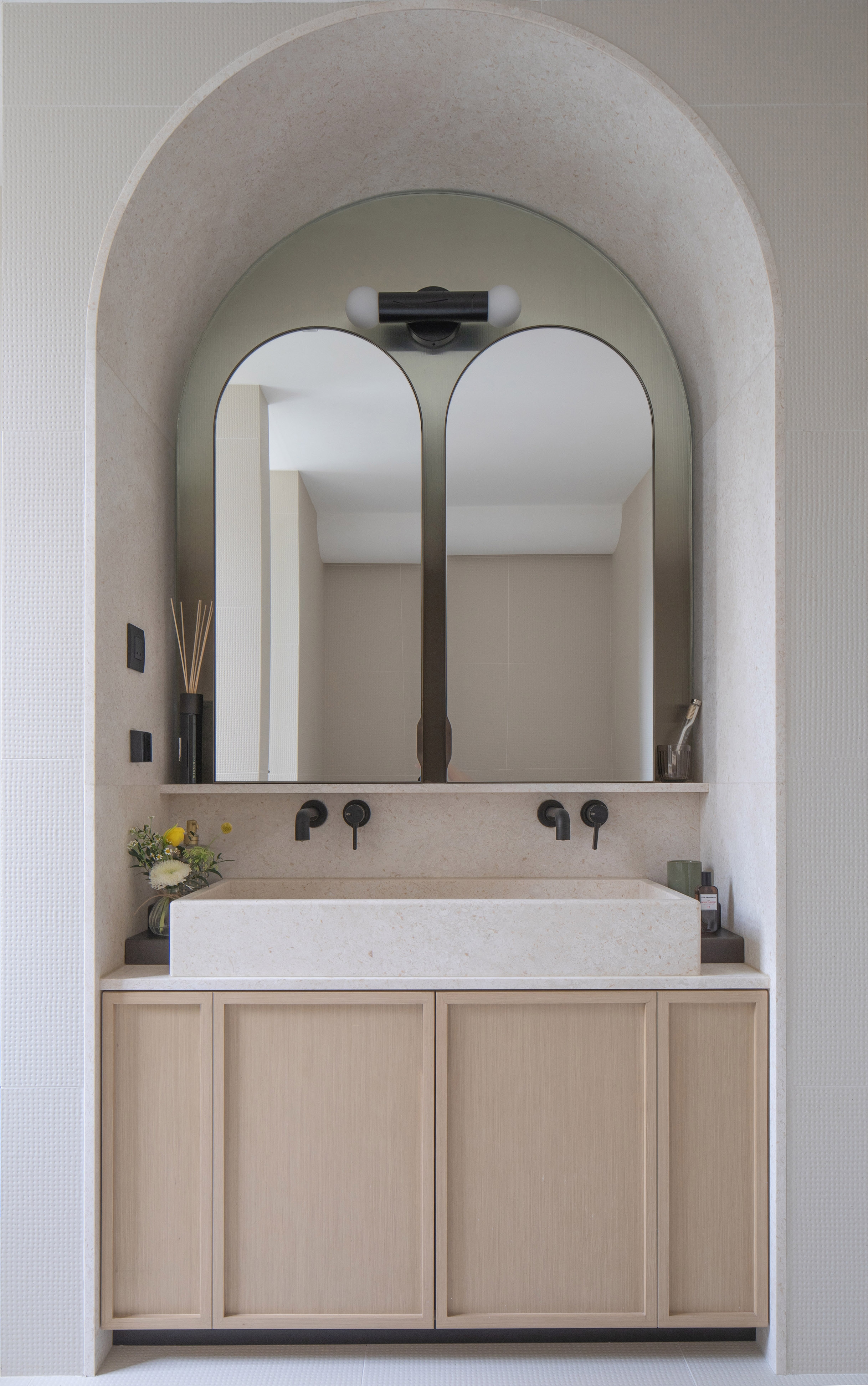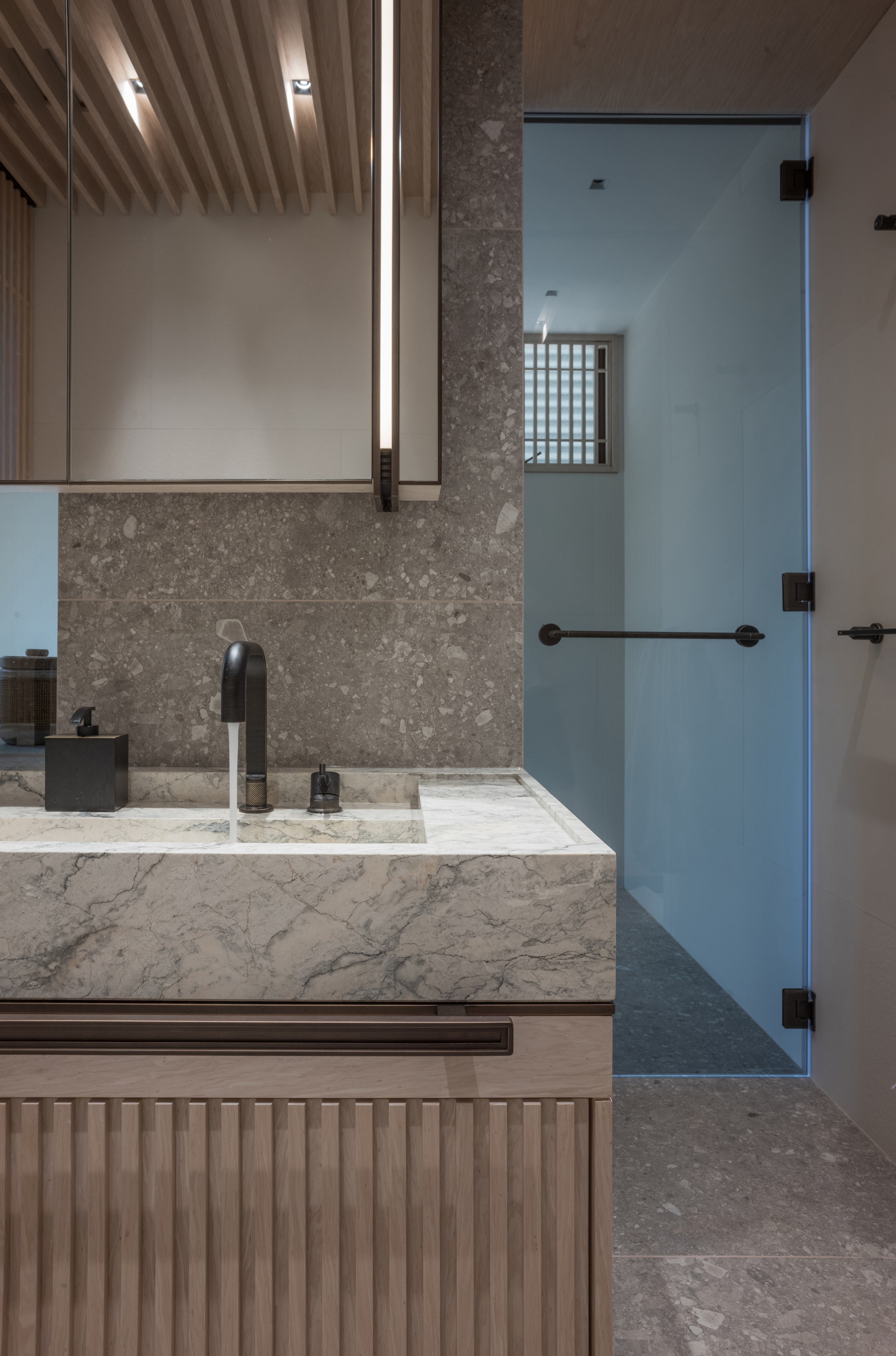 The 3-storey house is divided into three distinctive parts: a welcoming dining, living space and kitchen for family and friends; a flexible display area for the artwork within the house; a calm and intimate resting quarters on the upper two floors; While all areas are infused with a wide range of styles of artwork and sculptures collected throughout the decades.
