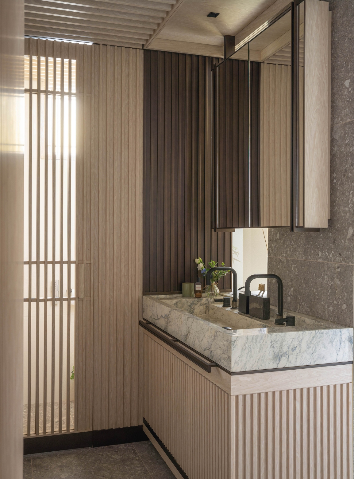 This house was conceived for art collector family who wanted to expand their living space and infused their home with both art and nature, tying a stronger connection to the hill peaking towards Deep Water Bay, Hong Kong – the veritable soul of the south – finding harmony, influence and poetry within.