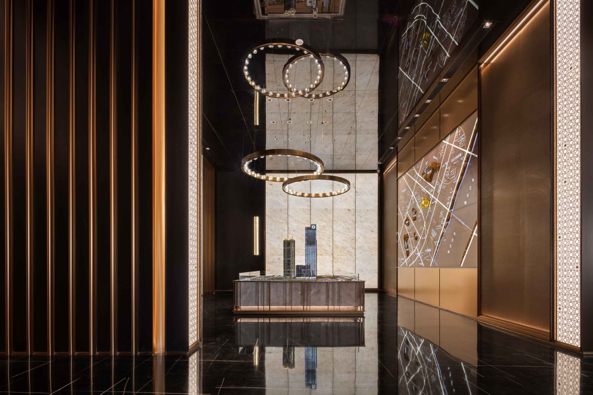 In this project, the designers put the circles as specific symbols. Refining visual elements and innovating artistic form from the modern classic, the designers integrate the “minimalism and elegance” philosophy and exquisite details into sales center, allowing guests enjoying the ultra aesthetic experience.