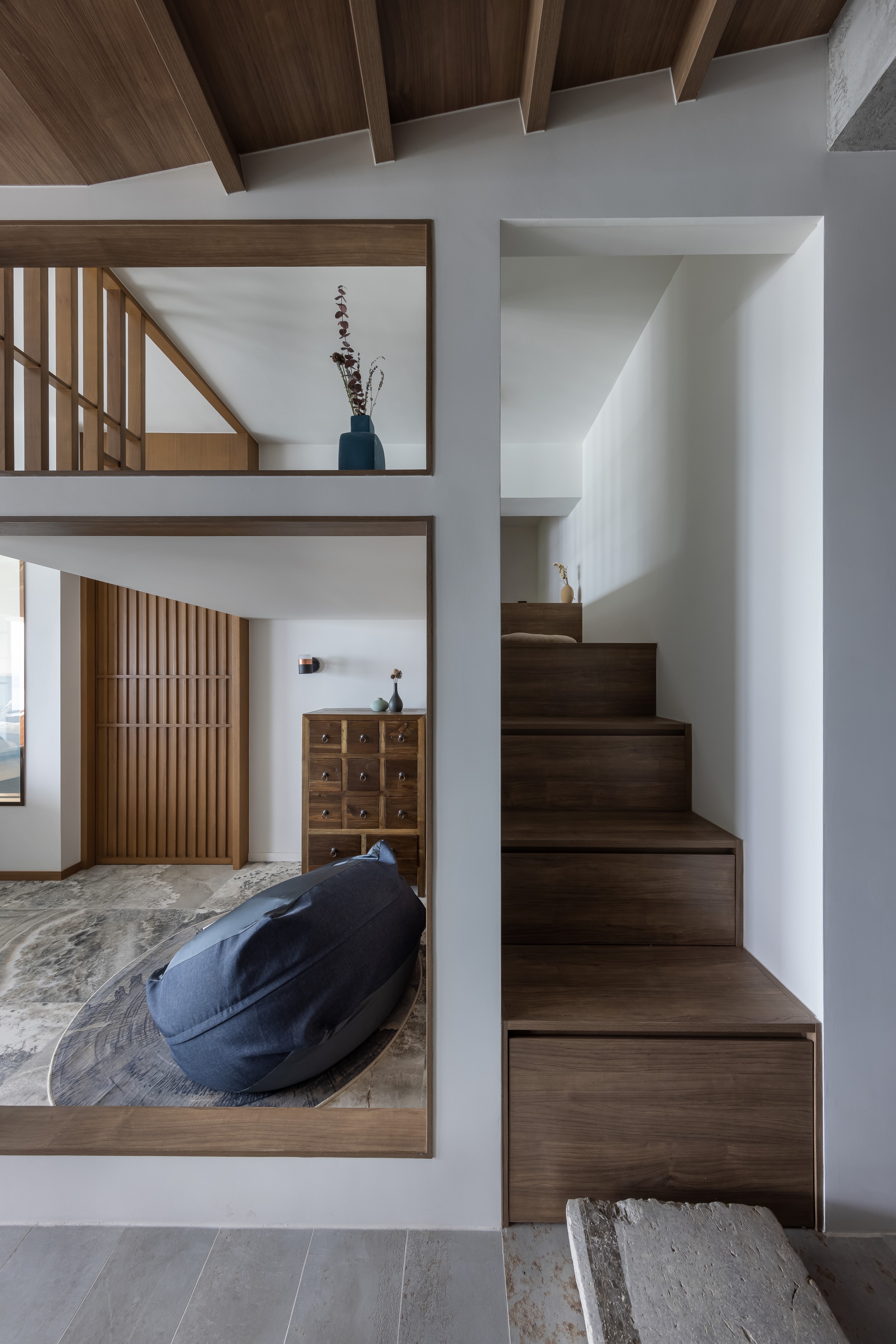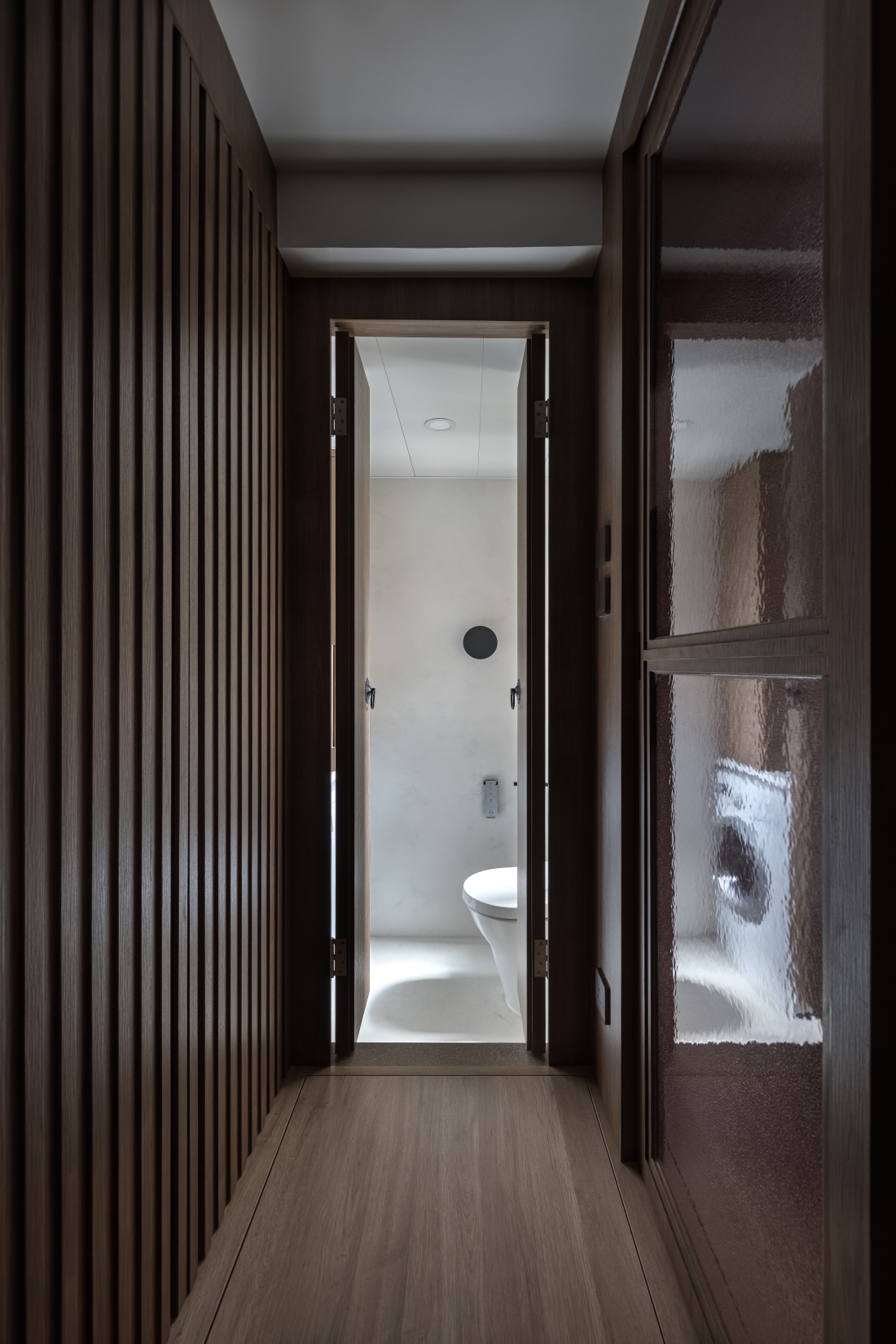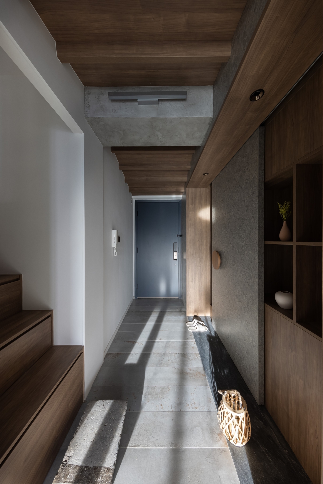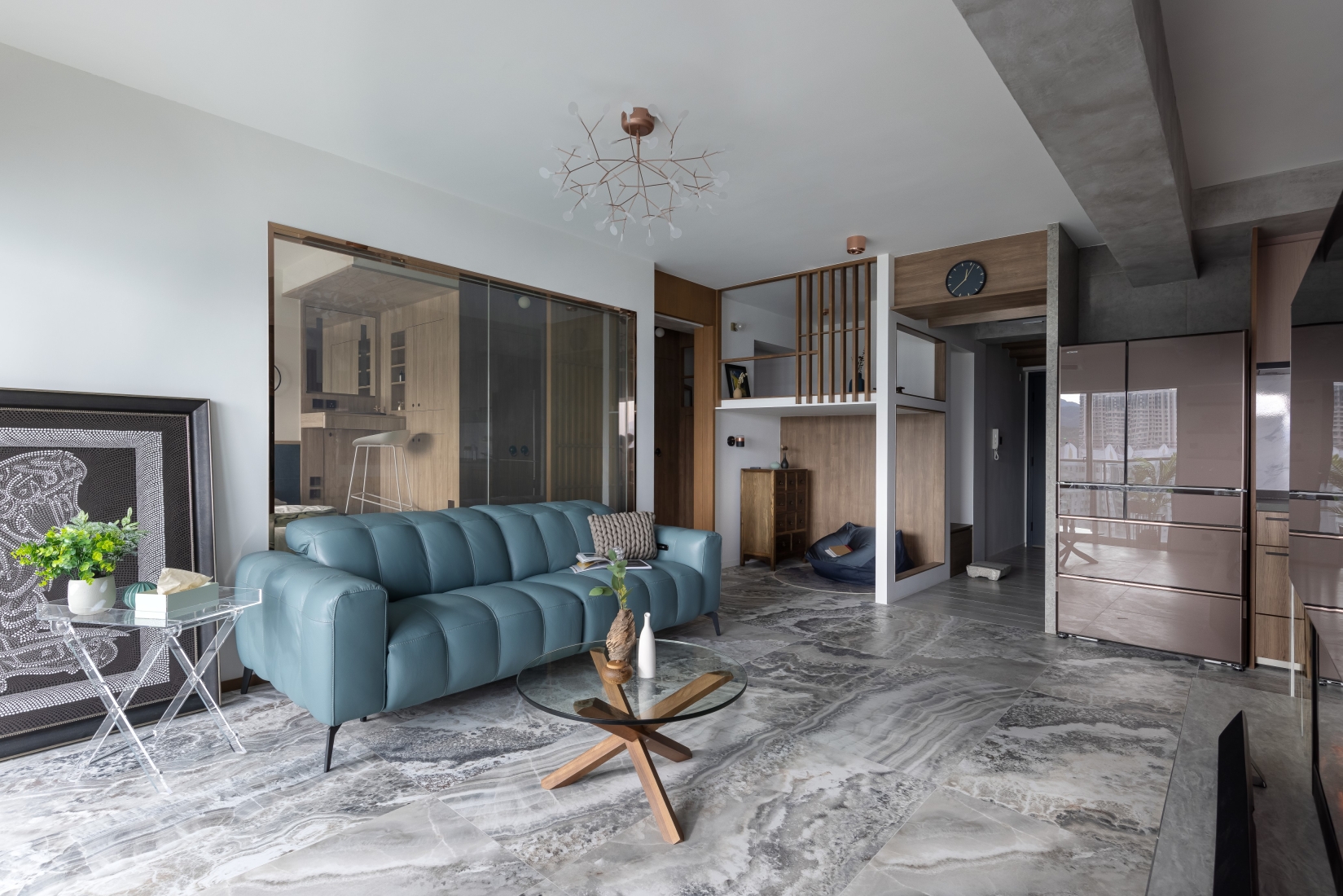 Hong Kong is a small place, but a big city to live. After work for a half entire life, finally facing the harvest period. Client couple would like to slow down a little bit, think about the future of life. Earned of this, designer uses a open-plan style, and according to clients' living habit to design the house. Open-plan design unleashes space potential, it brights more different feelings to the visual, broaden your horizons. About the color and materials, designer mainly uses dark wood color, and floor uses grey marble with clean vein lines. Wood and stone elements enrich the visual.