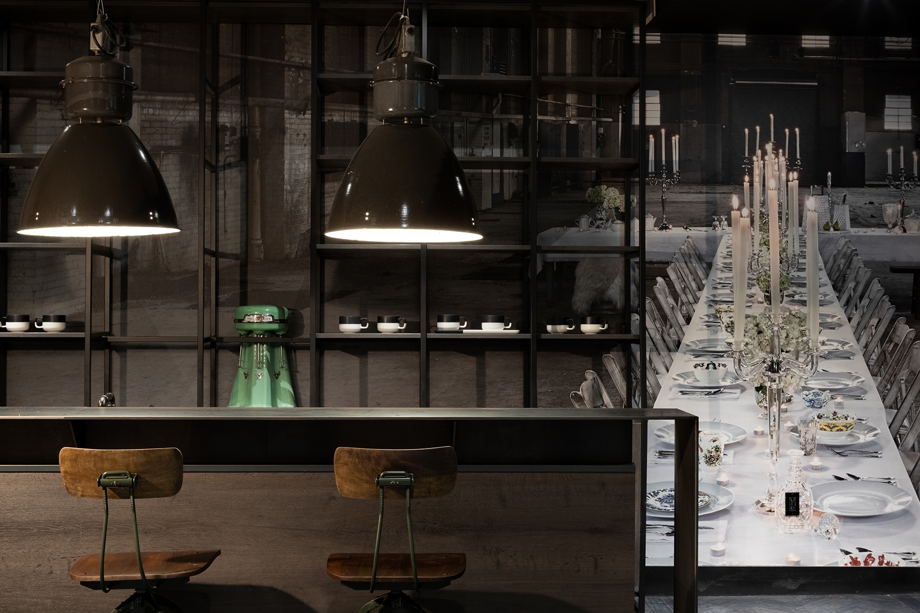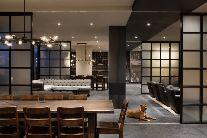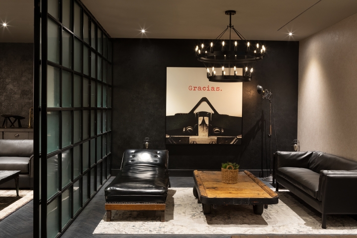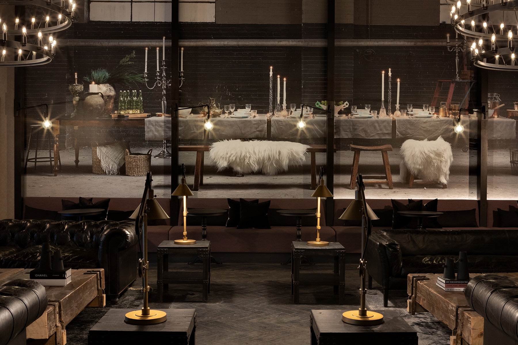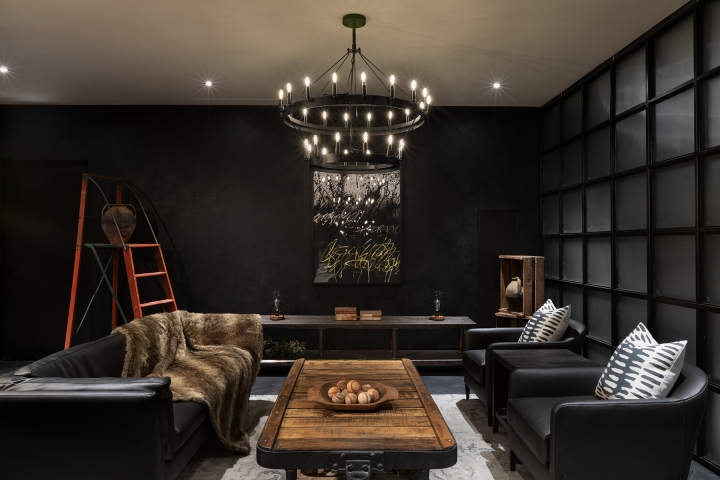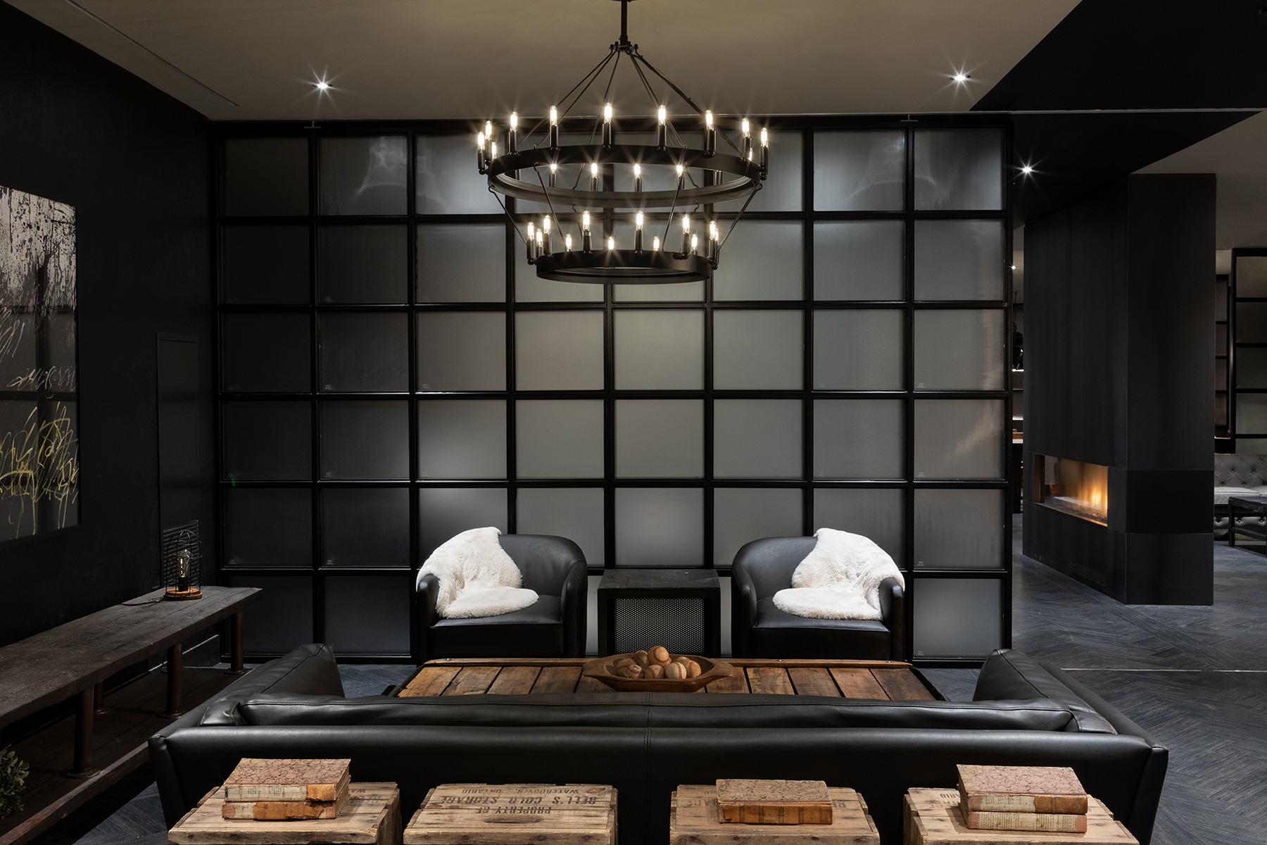 The final design incorporates weathered wood and exposed brick, paired with black metal accents and large-format photography that highlights the history of the space. The combination of raw and natural textures, alongside a muted sepia palette, is used throughout the shared areas, creating a seamless transition from one space to the next. Most of the materials – from barn wood to raw steel – have been refurbished and reimagined by local artisans, adding a sustainability element to the design while creating a unique aesthetic all its own.