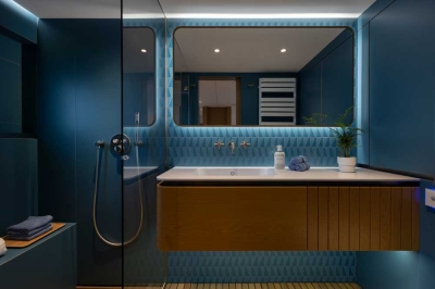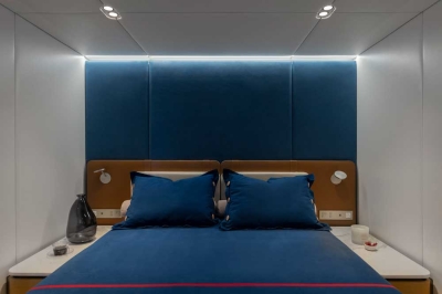 One of the most spectacular features on board this 80 Sunreef Power is the master suite. With a double bed facing the bow terrace, a bathroom with a walk-in shower, dressing and desk, the suite is bathed in sun from the huge window.