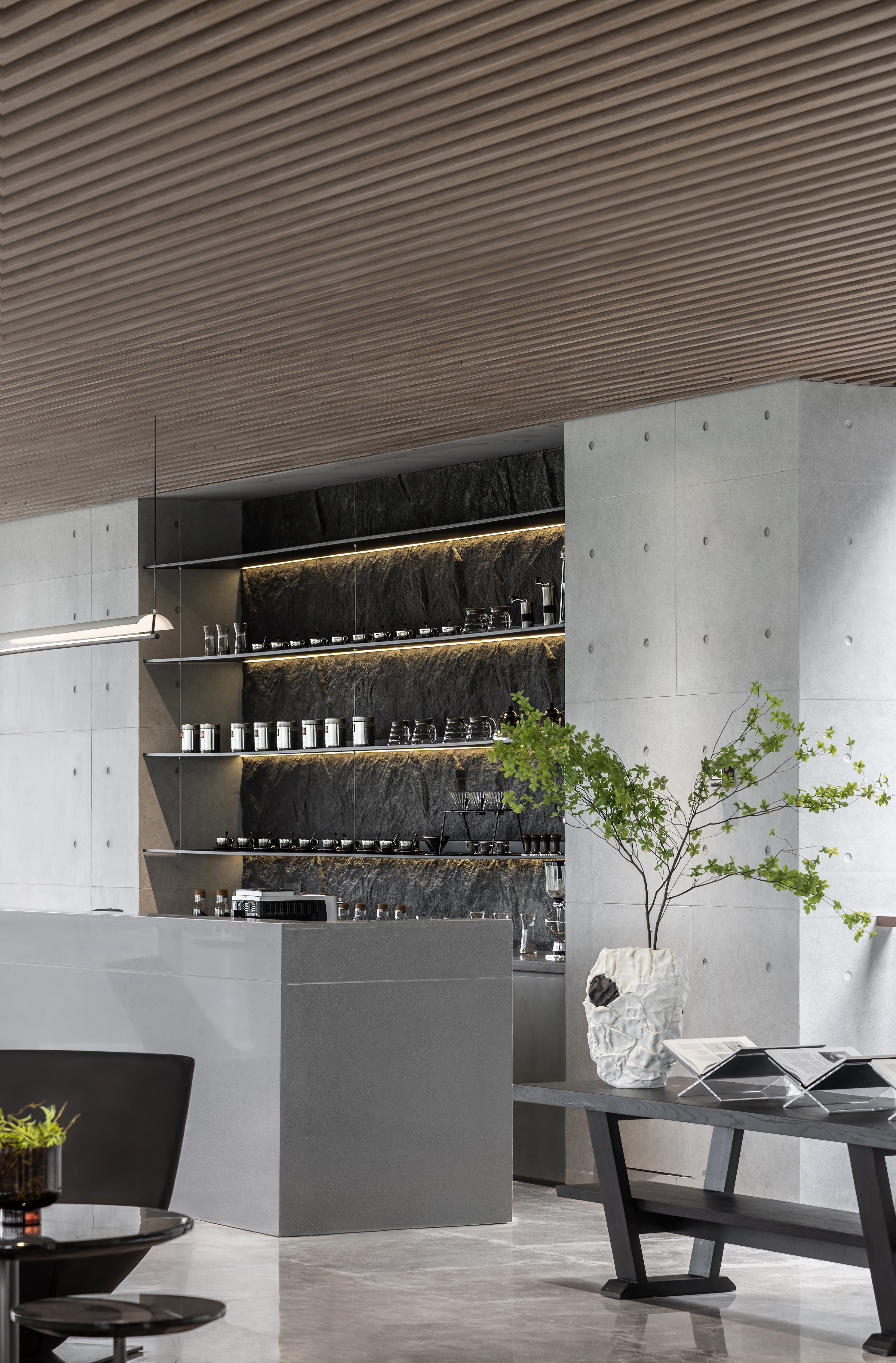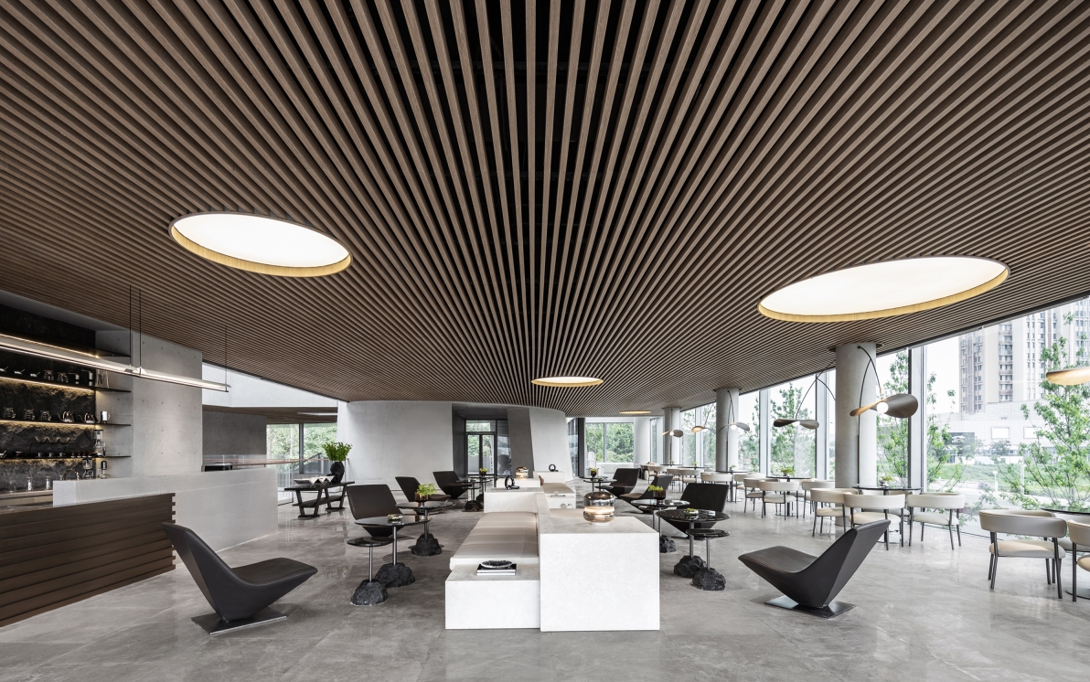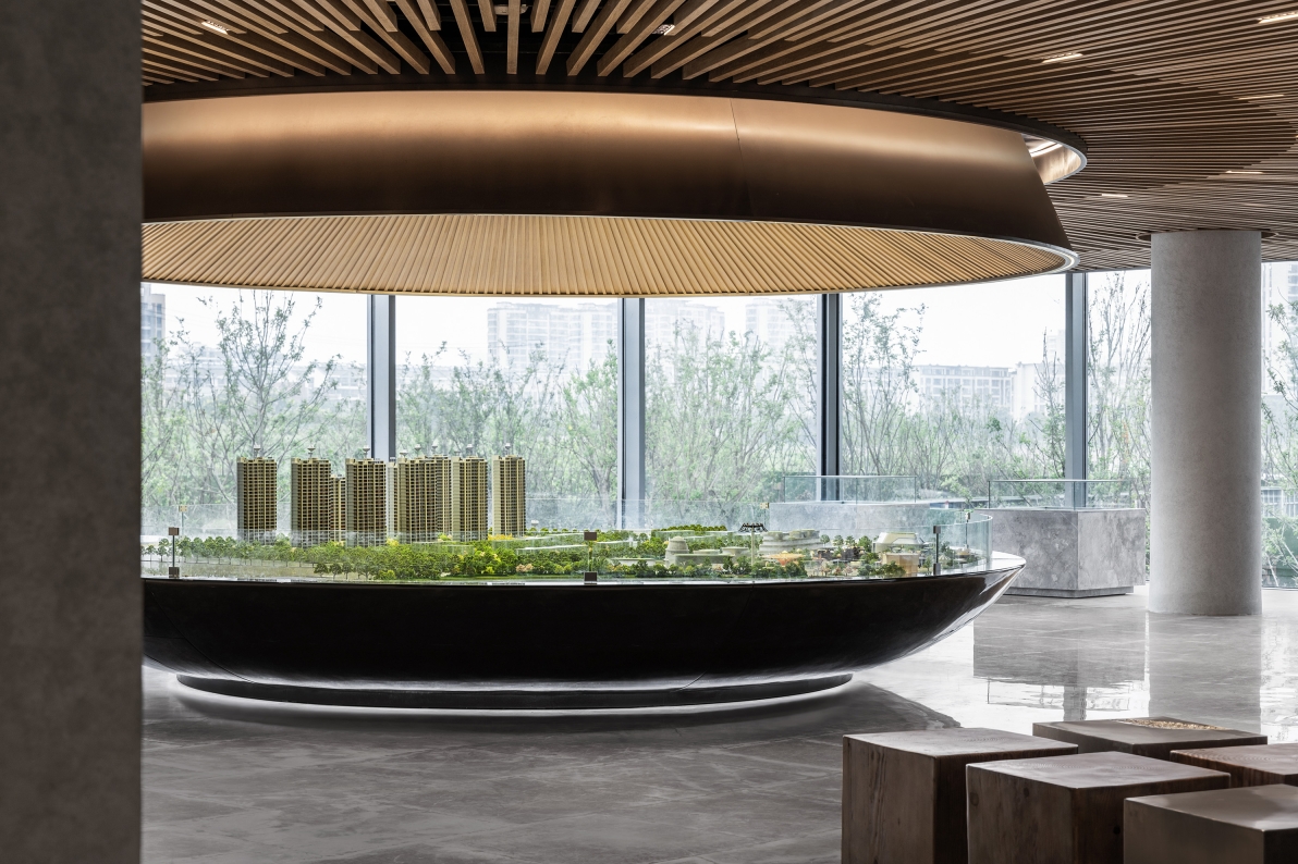 The current shortage of water resources is an imminent issue that human beings have to address without delay. However, this problem has not yet claimed our attention. Therefore, the inspiration of this project comes from Day Zero, a documentary directed by Kevin Sim: “Water may come into people’s daily life in many images, in particular, people’s life of feelings.” The designer extracts the element of “water”, combines “sales center, exhibition center, experience center and art center” in one work, and adopts an open and inclusive design concept to harmonize the indoor and outdoor scenarios, creating an organic commercial space for the residence project where different scenarios interact with each other and complement with the streets.The project is located in Lishui District, the south source of Qinhuai River in the upper stream. The designer extracts the natural elements of Lishui’s “Tian Sheng Qiao (Natural Bridge)” and “Yan Zhi He (The Bridge of Rouge)”, uses large stone panels and caement to create blanks, and adorns the project with wood for a natural feeling of clemency and intimacy.