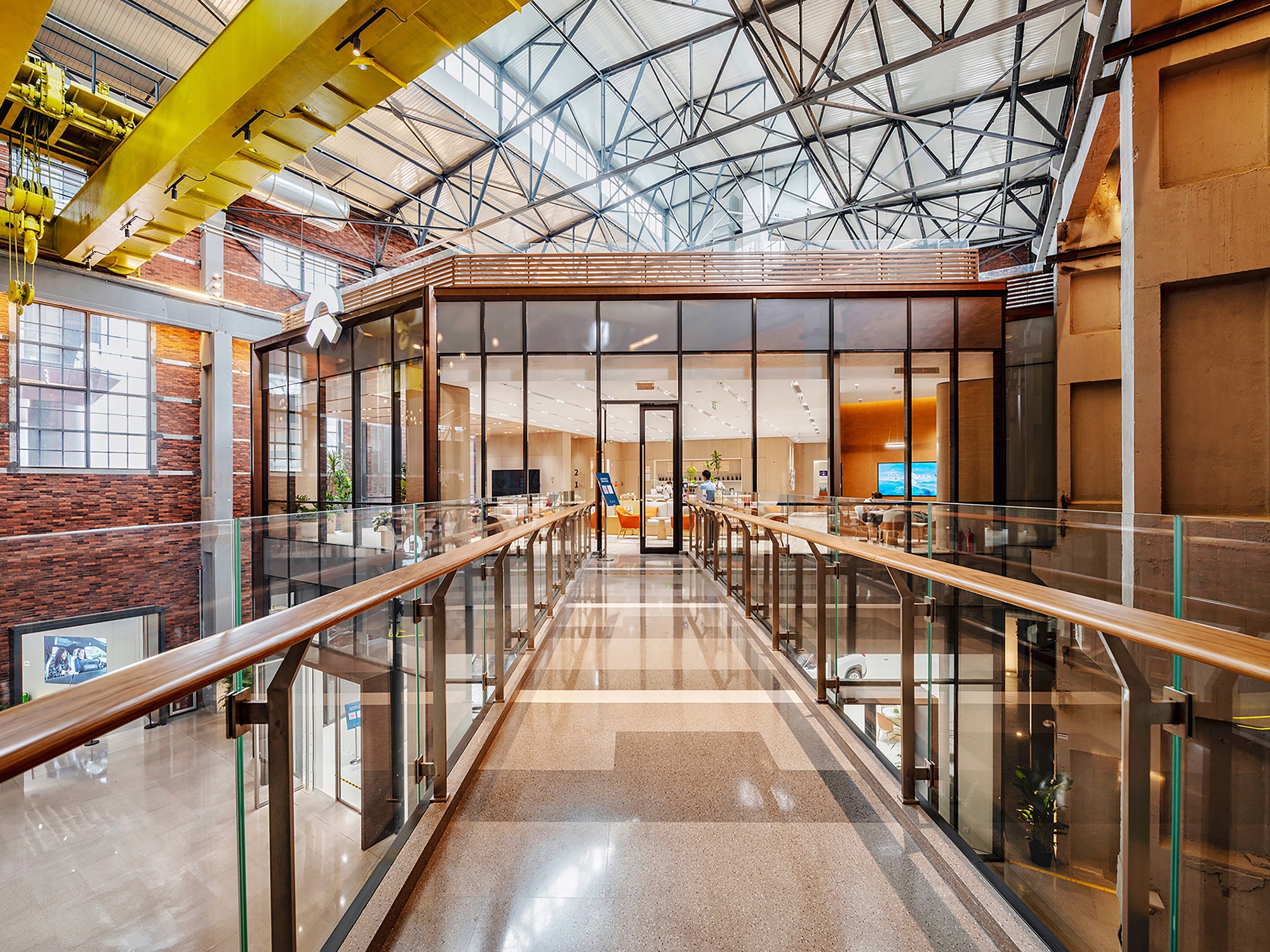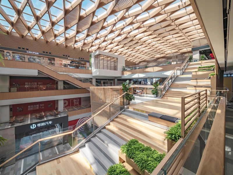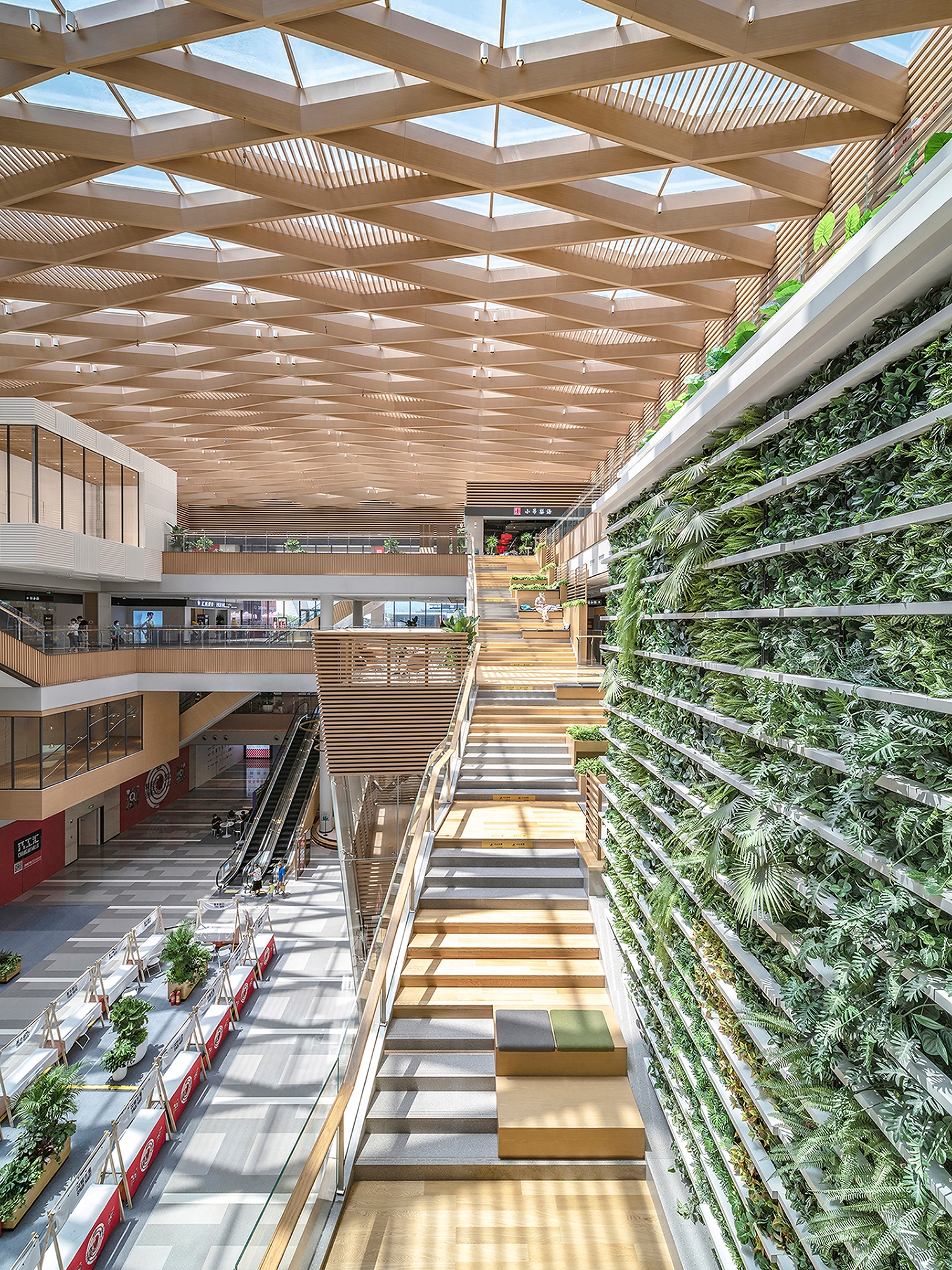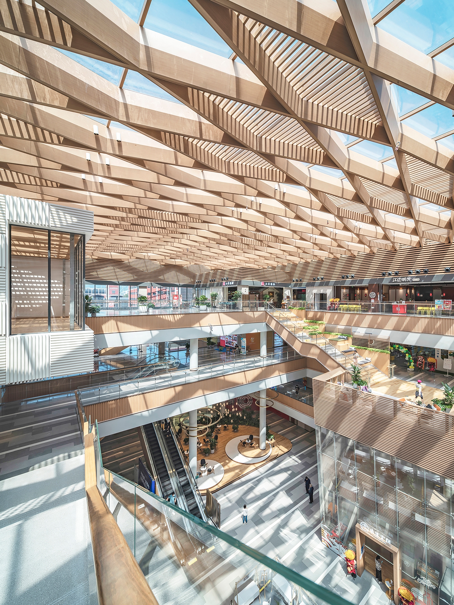 The project is located in the northern part of Beijing's Shougang Park, which was constructed in 1919 and epitomizes the golden era of China's steel industry. As a new commercial landmark, Chang'An Mills inherits Shougang's industrial legacy while forging a brighter future. In doing so, we explored not only the synthesis of past and present, but the ability to create a shared space that meets the needs of the current consumer experience, while retaining dynamic and interactive elements. The old site’s Fan Room was built in 1992, after the renovations, it now functions as the project’s main entrance and east atrium. The project’s authentic industrial atmosphere proved to be the core modeling concept for the design; the original truss structure, overhead crane and structural columns have been preserved in their original form, together with the red brick texture of the old factory façade. The peoject uses diamond-shaped array, semi-permeable boxes of various dimensions which can be dynamically used for retail and stairways in the new-building space, allows people to travel through time and space and experience the singular atmosphere of this place.