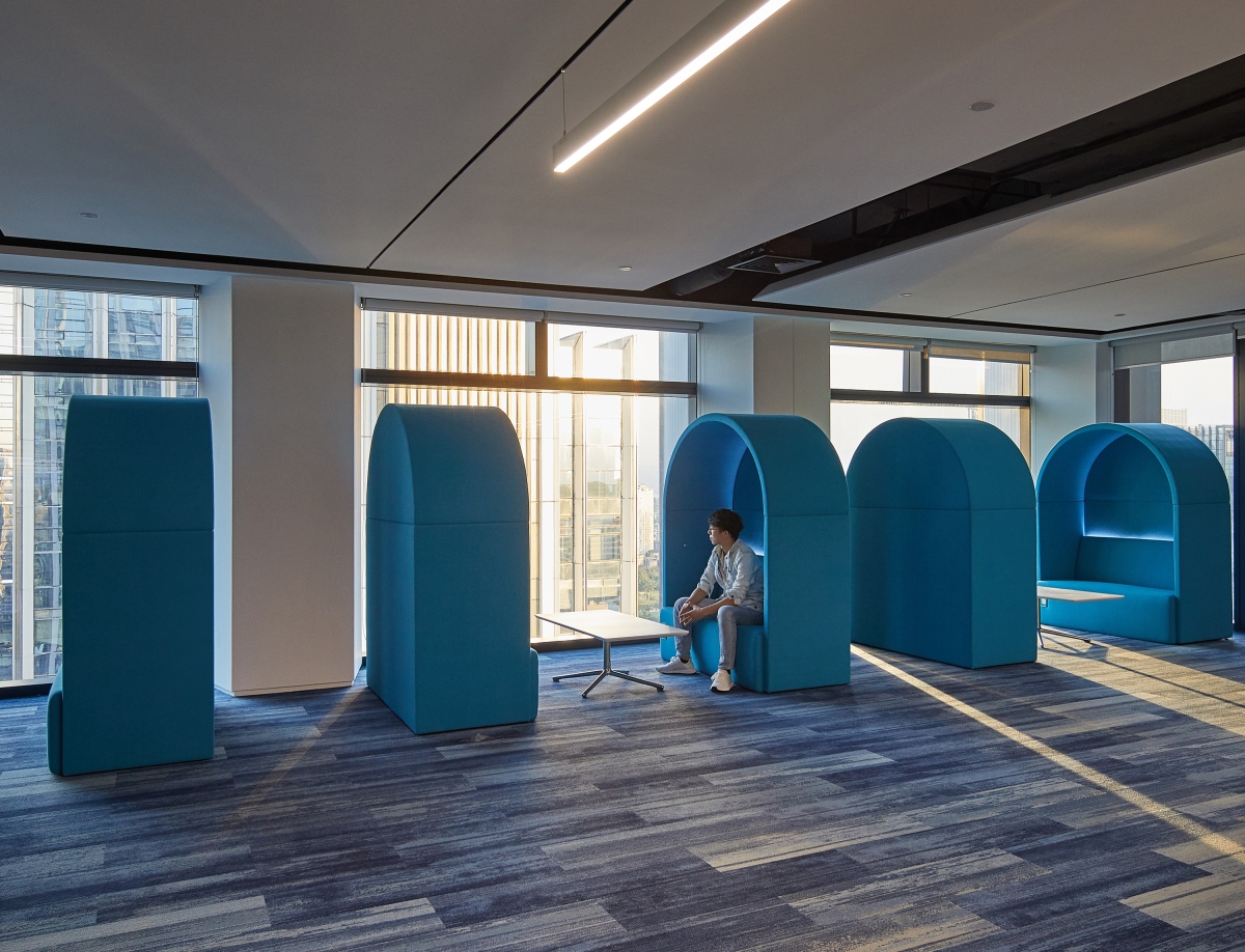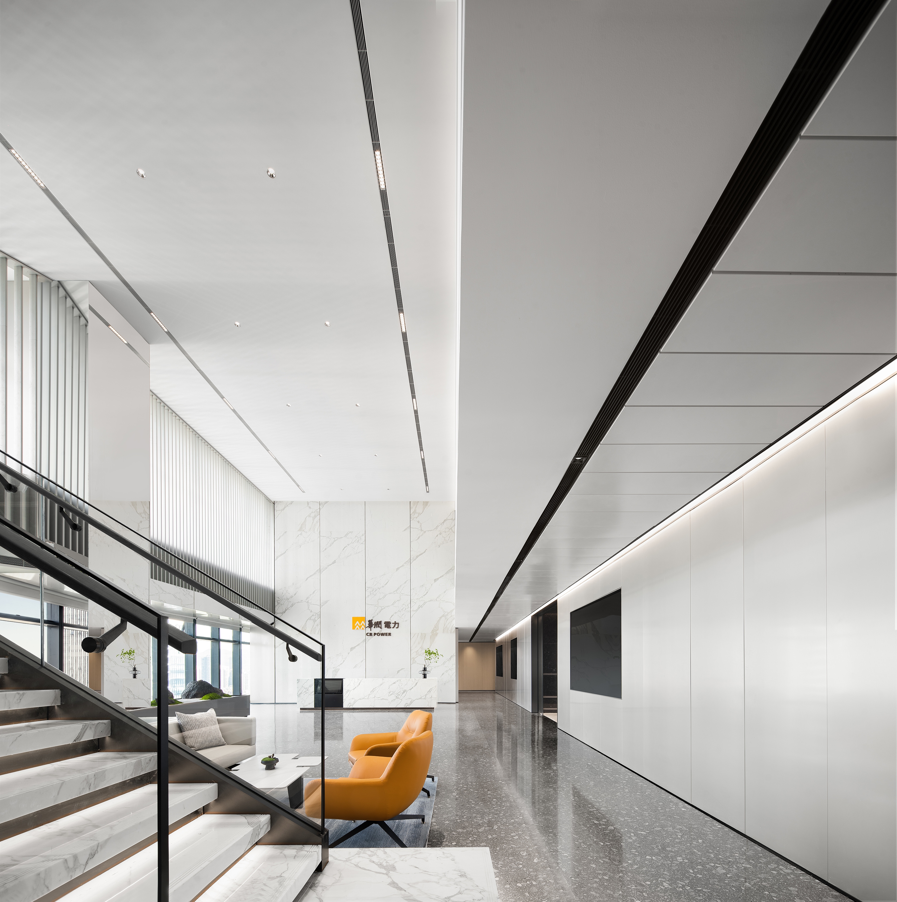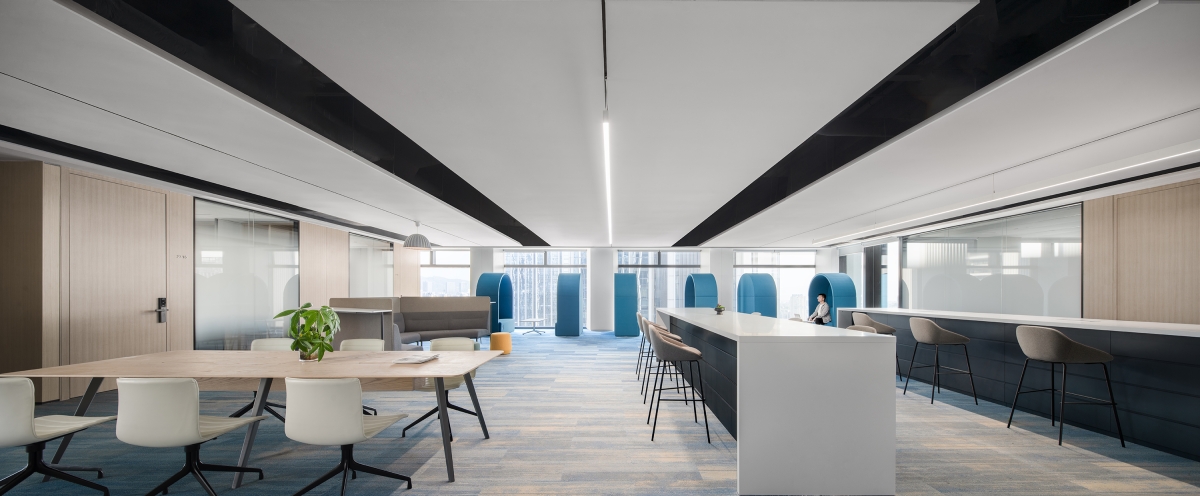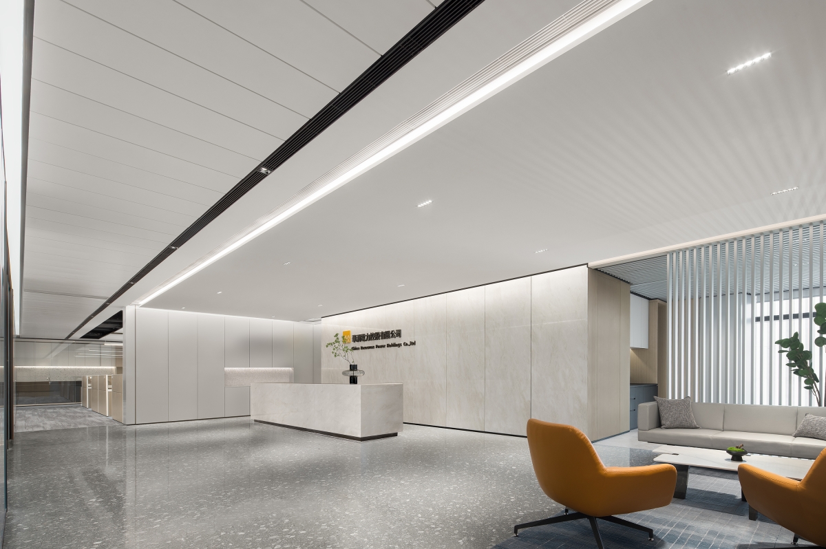 Based on the design of the central core tube of the building and taking advantage of a floor-to-ceiling glass curtain wall, which gives the site good daylighting and visual openness, the design team customized and optimized a spatial strategy that balances rationality and humanity, to respond to the human-oriented brand values and the corporate spirit of openness and sharing that CR Power upholds. The design abandons the traditional form of workspace, but creates a simple, natural and efficient modern headquarters office that enhances the connection between the company’s teams and their clients and meets diversified needs of work, life and communication.
