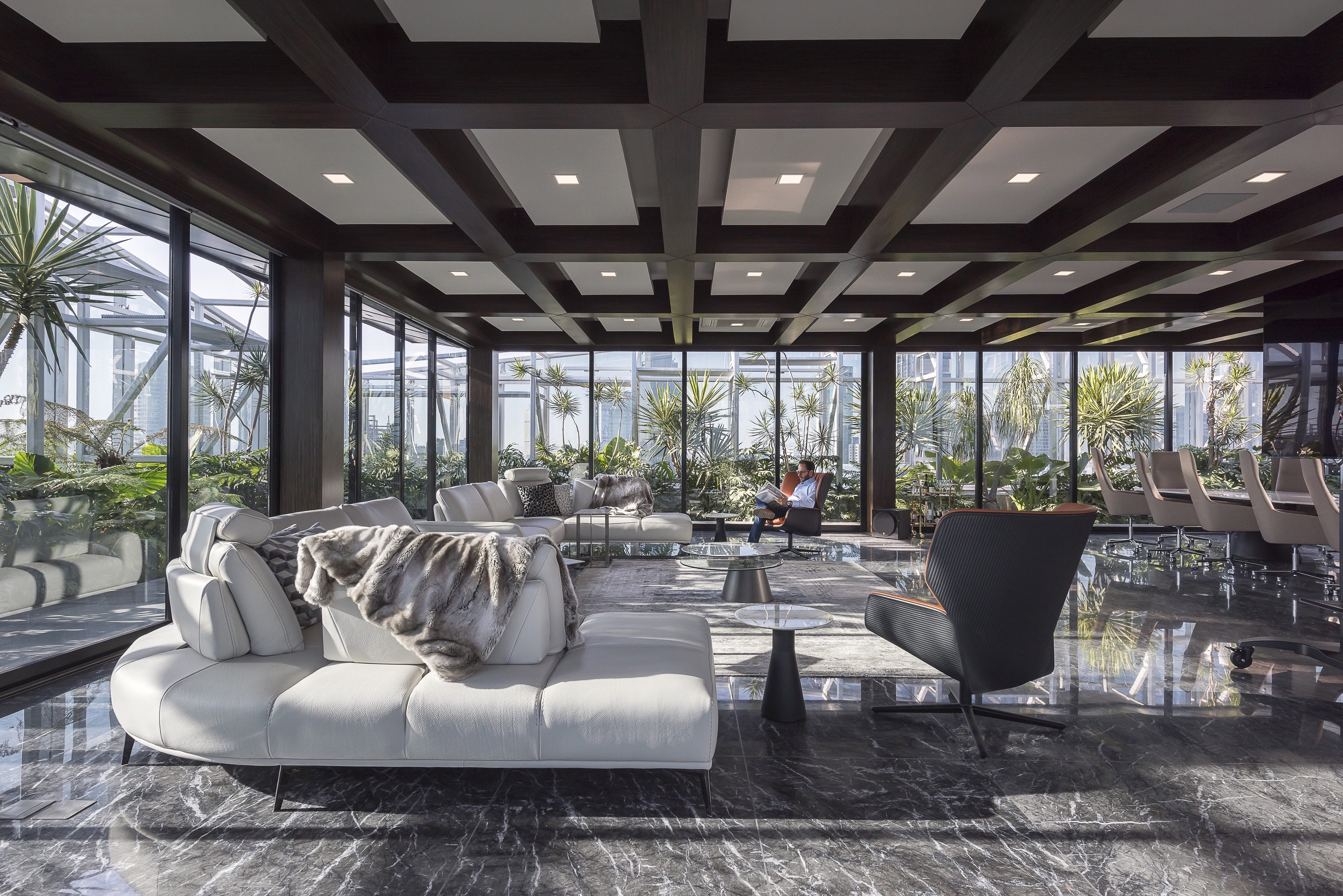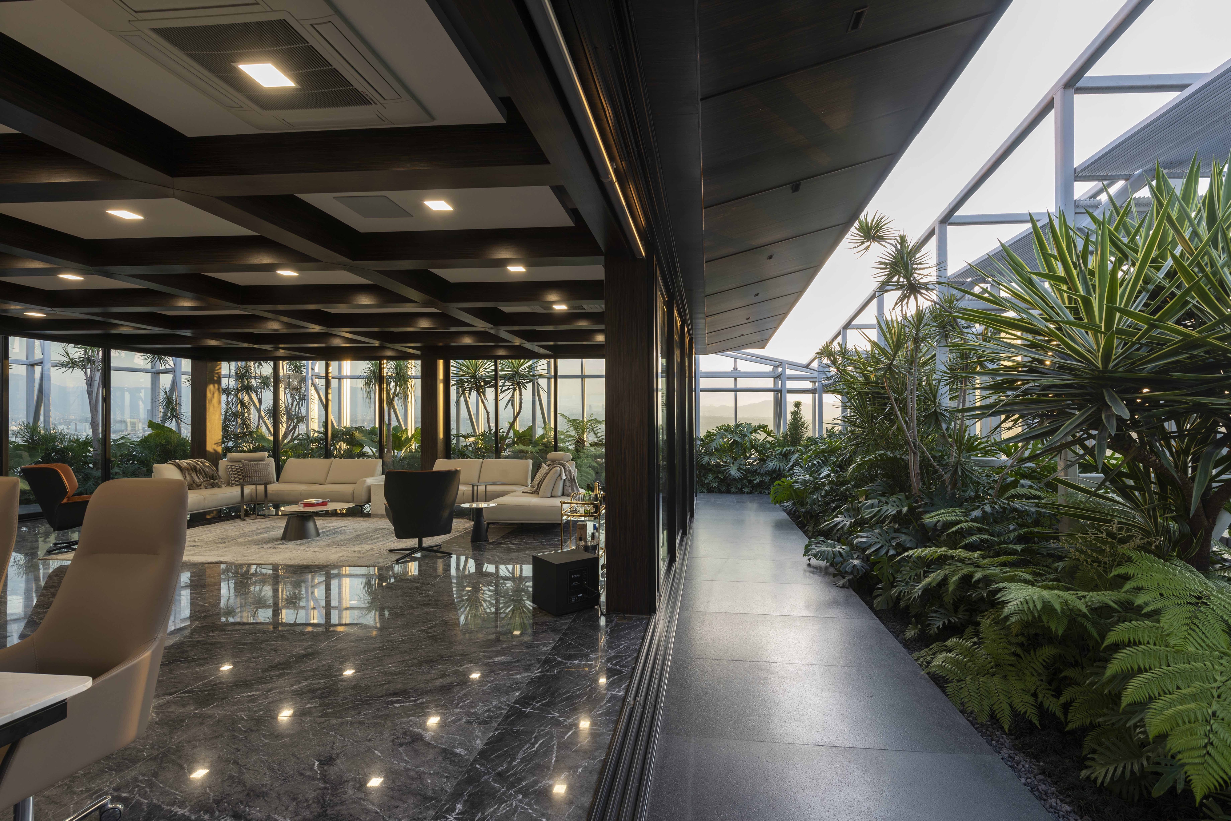 The connection to the exterior is given special emphasis due to the spectacular 360° views, framing them and relying heavily on natural light throughout the day. Artificial lighting is thoughtfully designed to be effective as well as ornamental, enhancing the quality of all spaces. Efficiency and sustainability are core principles achieving important energy savings. The rooftop has a central lounge that can be configured in many ways opening up completely on all directions onto an oasis of native vegetation that creates a pleasant microclimate positively impacting the life quality of people.