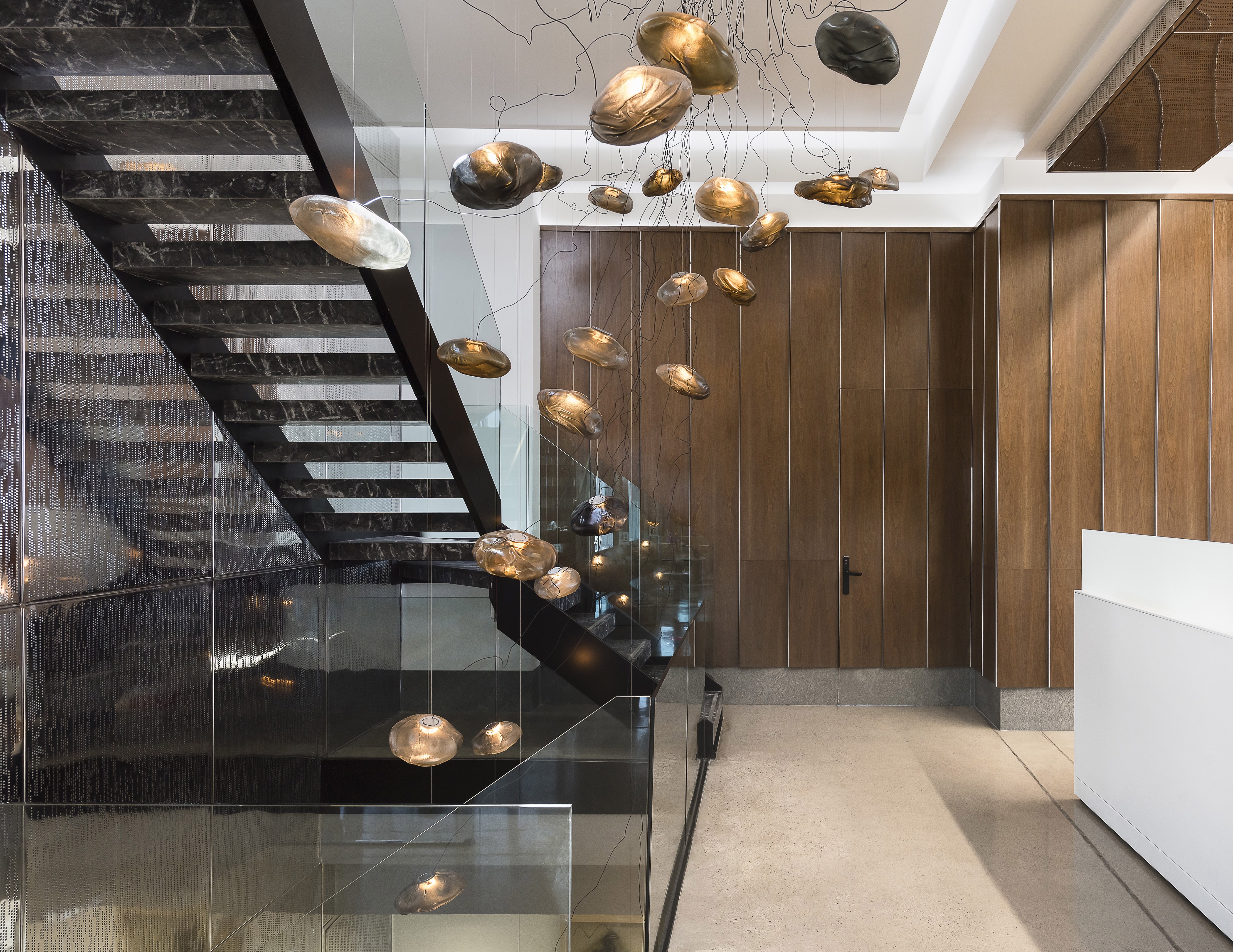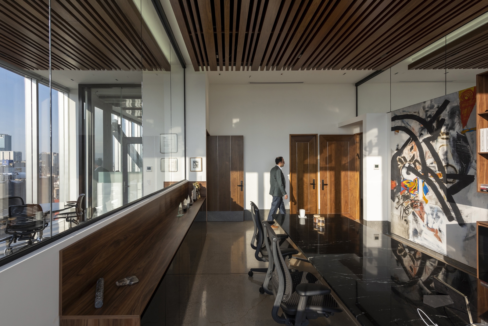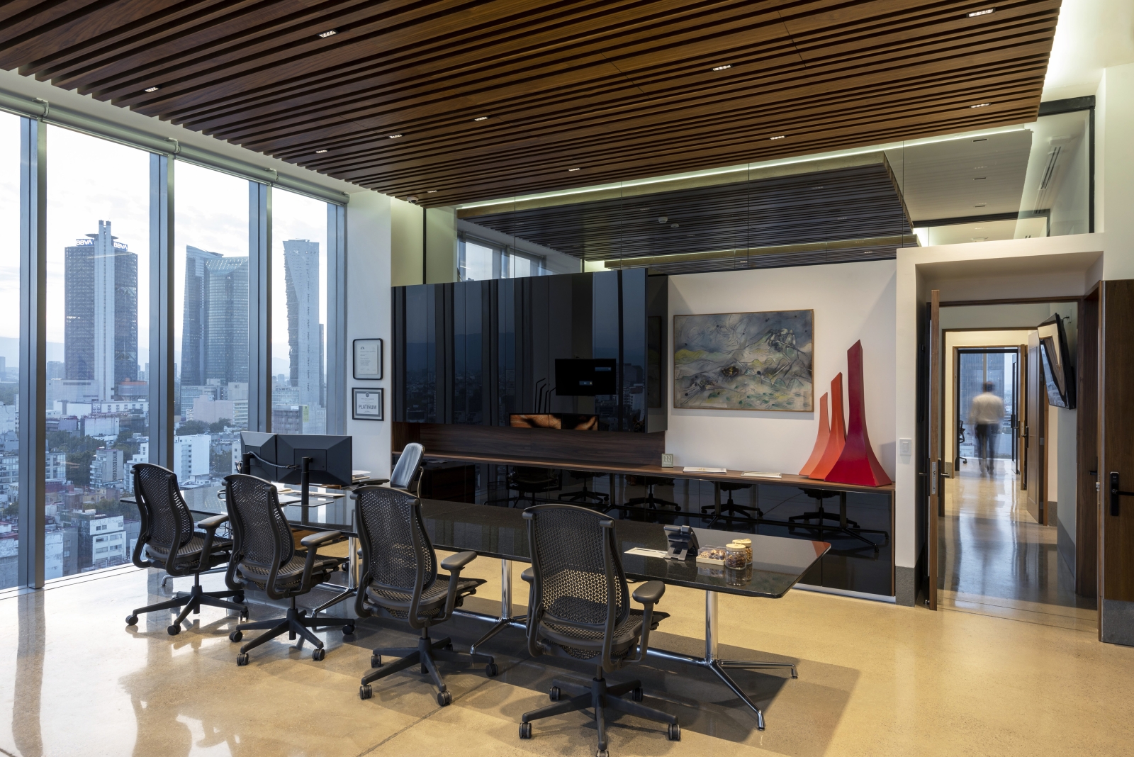 CIMET is consortium dedicated to architecture, construction and real estate development, its headquarters occupy the 2 topmost levels plus roofgarden of the Torre Glorieta Cibeles located in Mexico City. The design of the space takes into account the necessity of these diverse activities, departments & their relationship, striving to create harmonious, comfortable spaces where all members can feel inspired to create, solve, perform and unfold best; a key objective was to make everyone feel at home by employing a combination of specific light, material and spatial combinations.