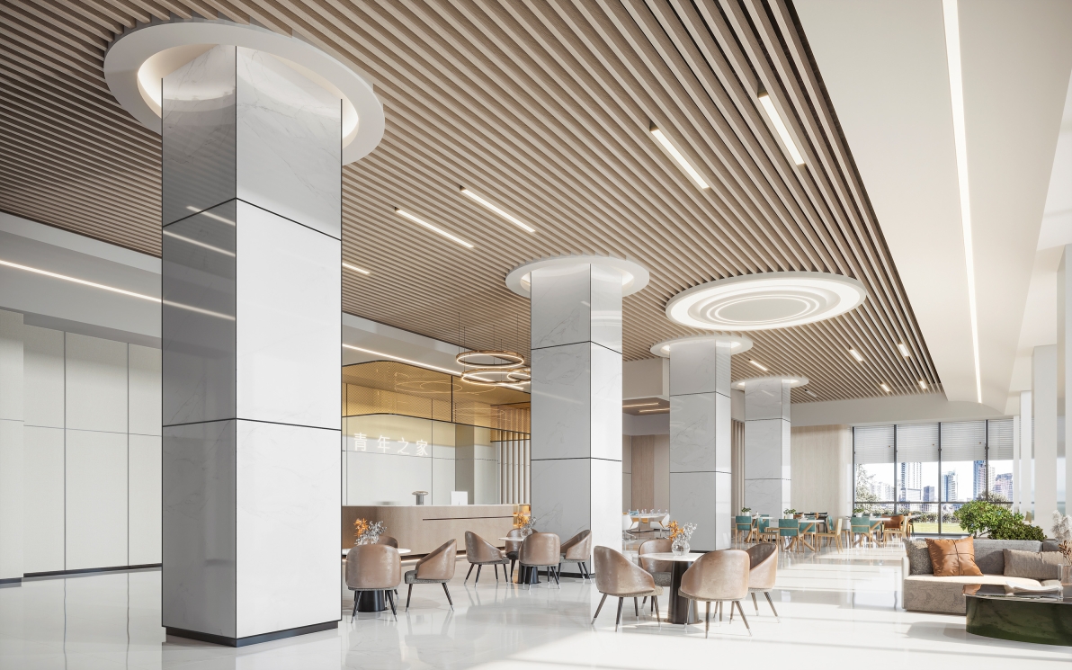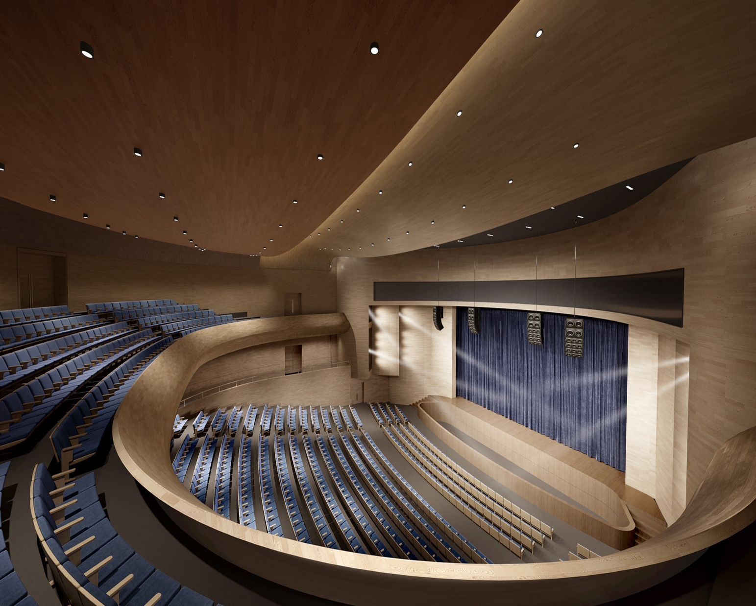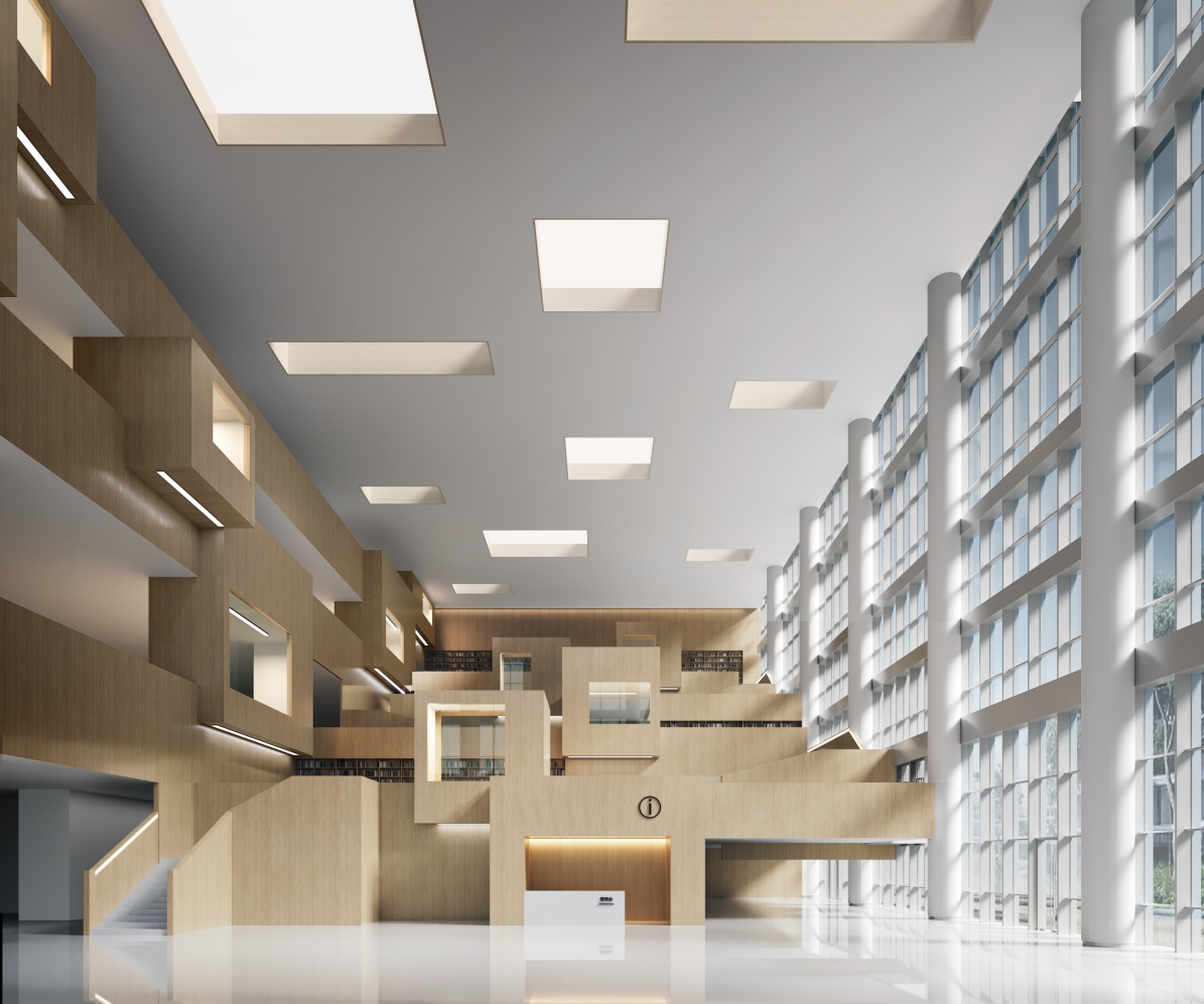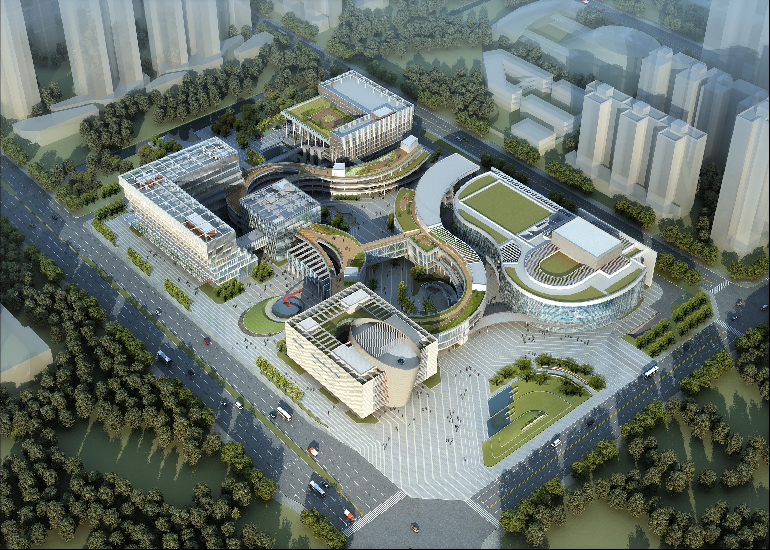 Chengdu Gaoxin Culture Center is located in the south of the Dayuan Park in Chengdu High-tech Zone, at the intersection of Tianfu Fourth Street and Shenghua South Road. The planned gross floor area of the project is about 168,800 square meters, including about 100,900 square meters for the above-ground buildings and about 37,860 square meters for the basements. The cultural center consists of five venues and one ring. The five venues serve as the library, cultural hall, multi-functional theater, workers, youth and women's service center, and comprehensive experience exhibition hall. The characteristic commercial functions, such as bookstore shopping, training salon, sports and fitness, are gathered in the "vitality ring", which further connects the five venues. In the spatial layout, these cultural venues are independent of each other, and moderately integrated, realizing "venue sharing and space connectivity".