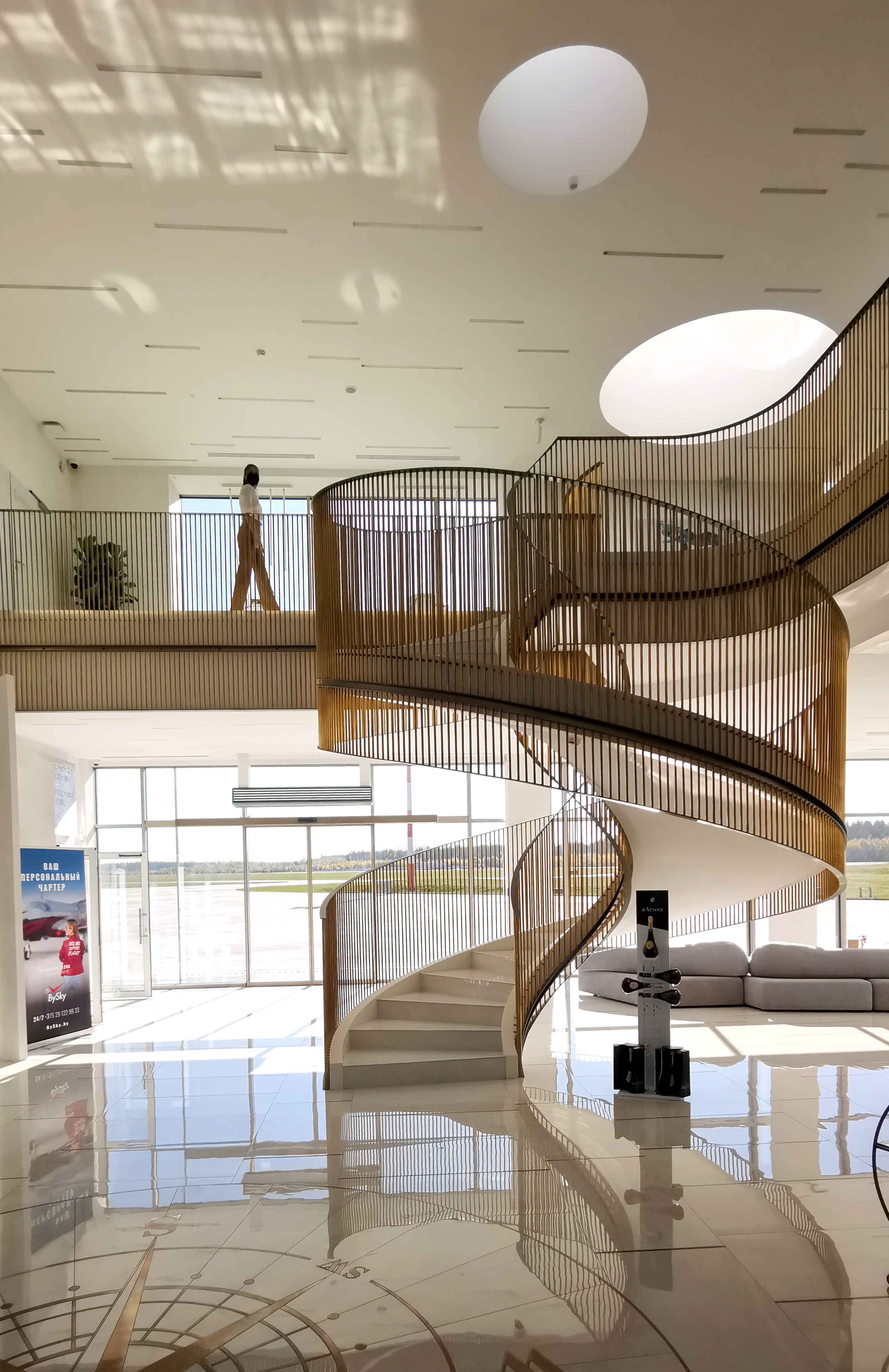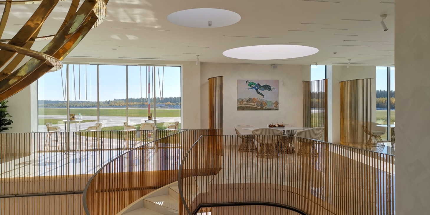 The Interior design project for the new private jet terminal of Minsk covers reception hall, lounge, bar, meeting room, toilet, roof floor corridor and VIP saloon.