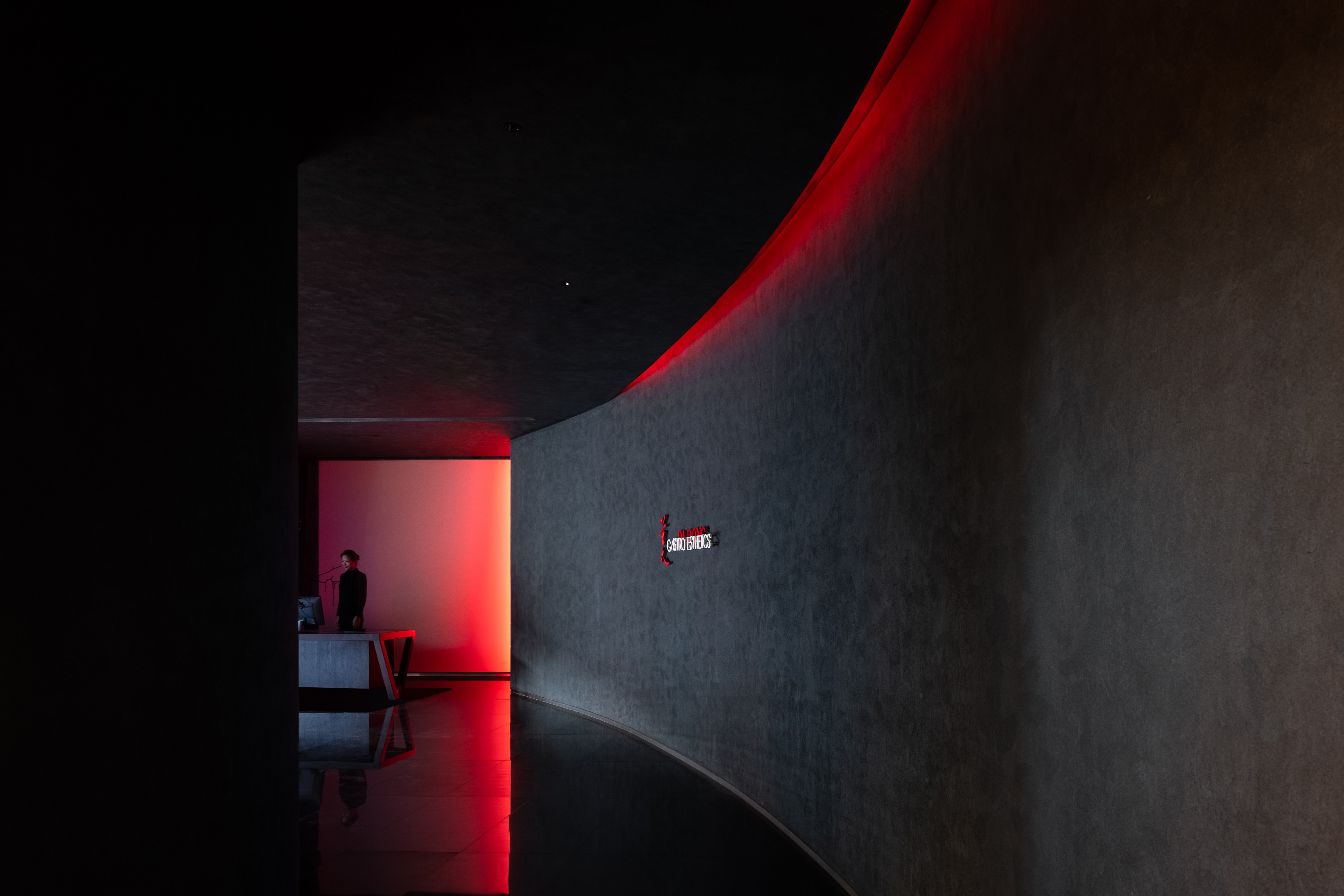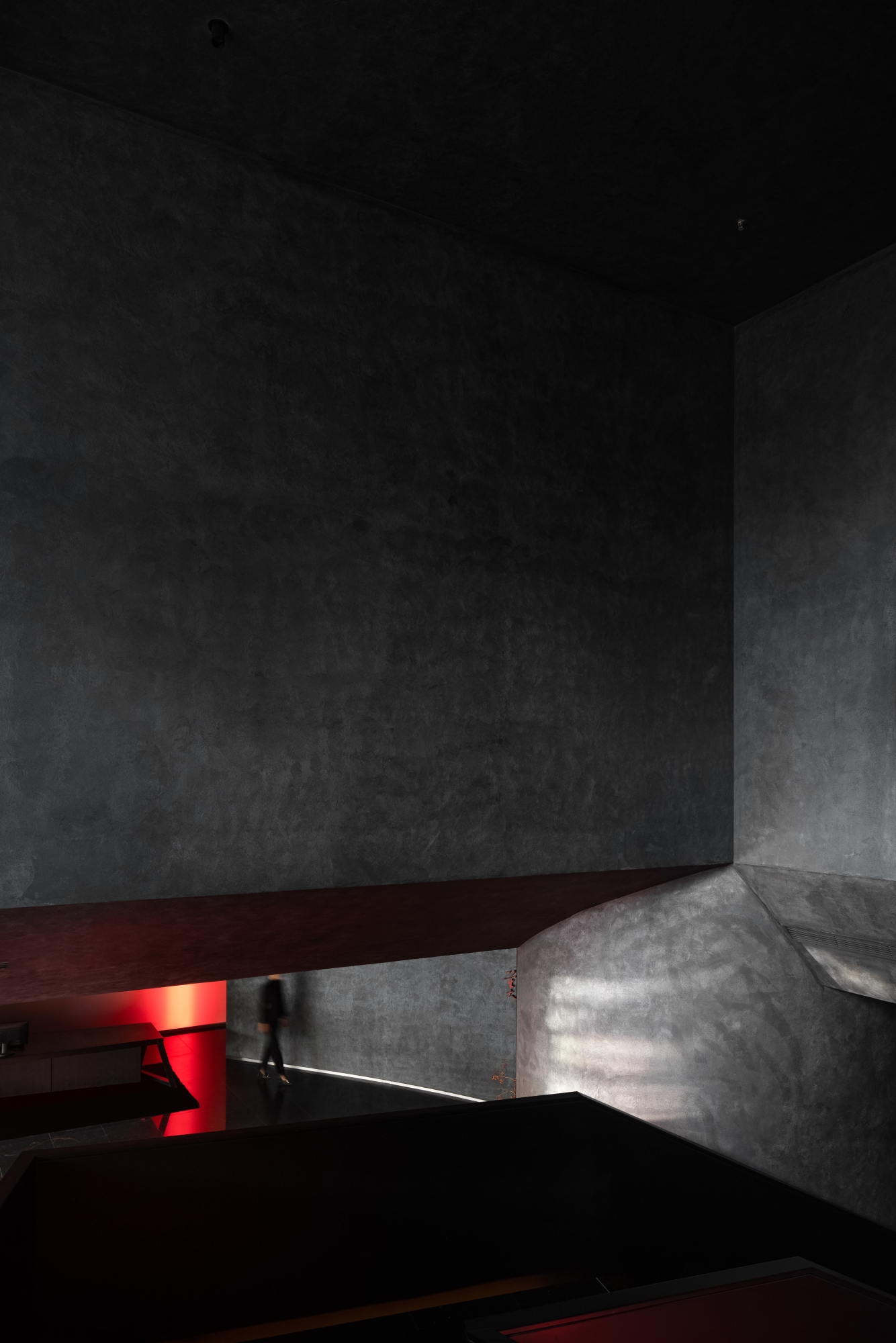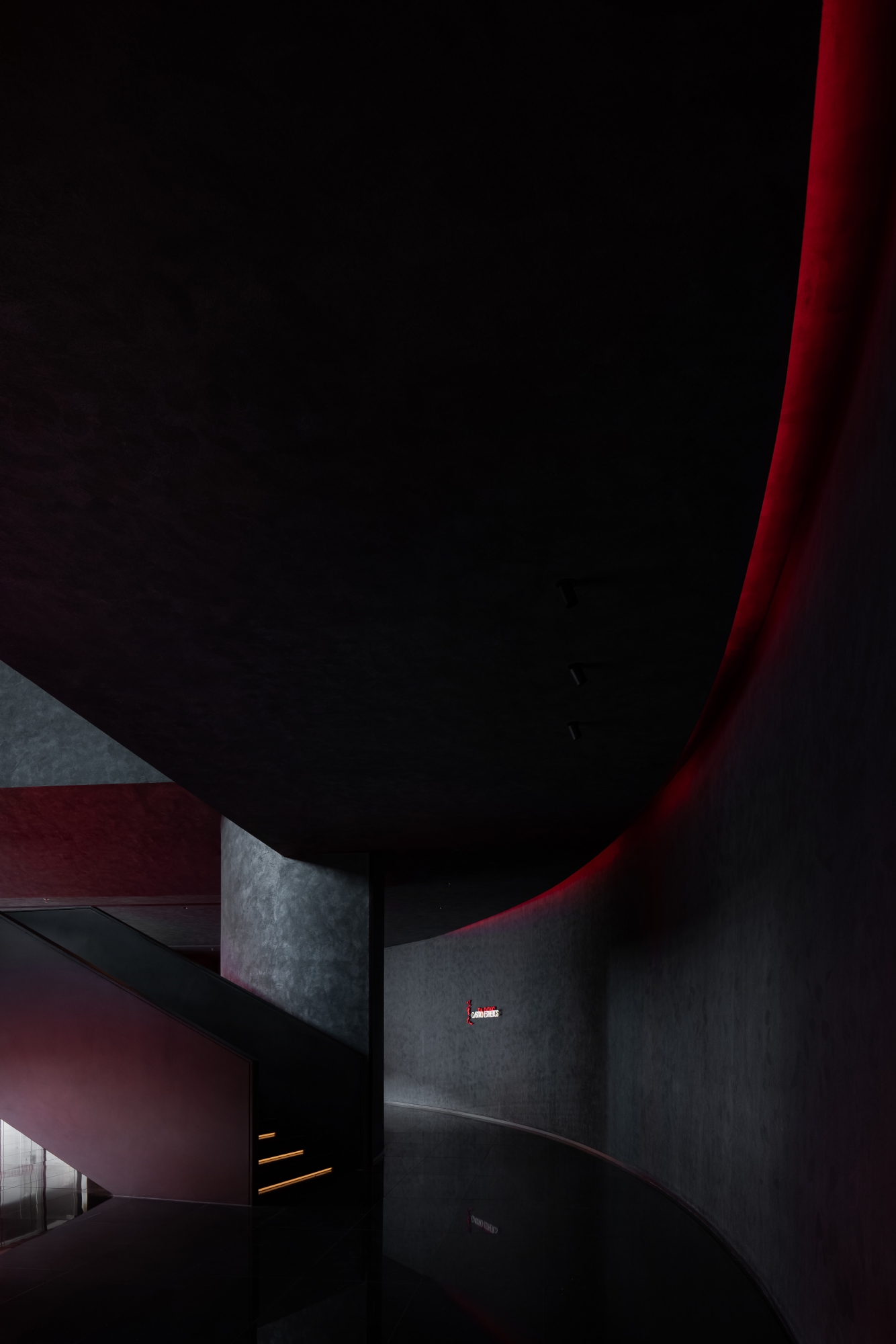 Light and shadows permeate structural gaps. The light and shadows move in the curved hallway space, breaking conventional sedate and dull spatial atmosphere, full of a sense of dynamics and curved beauty.