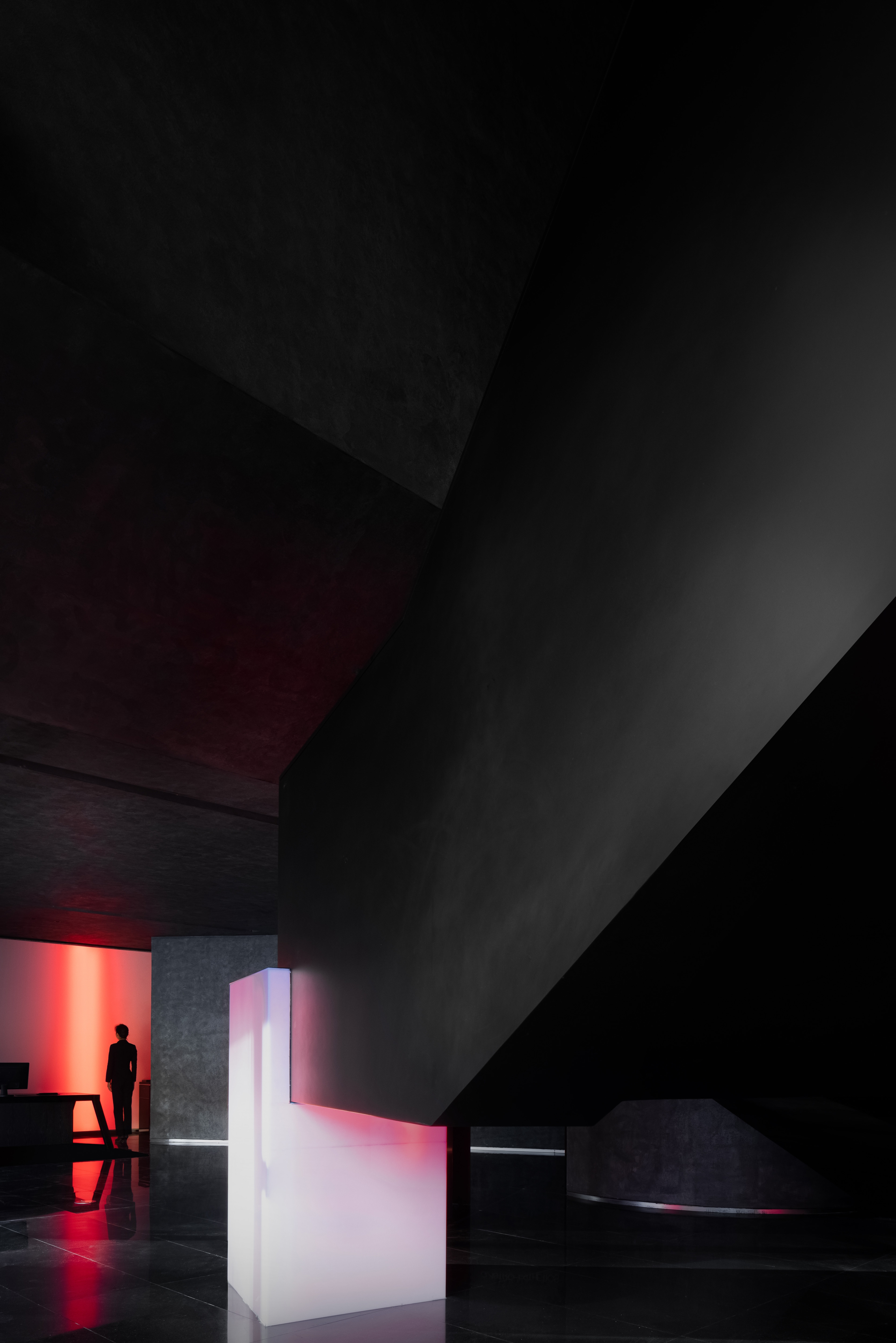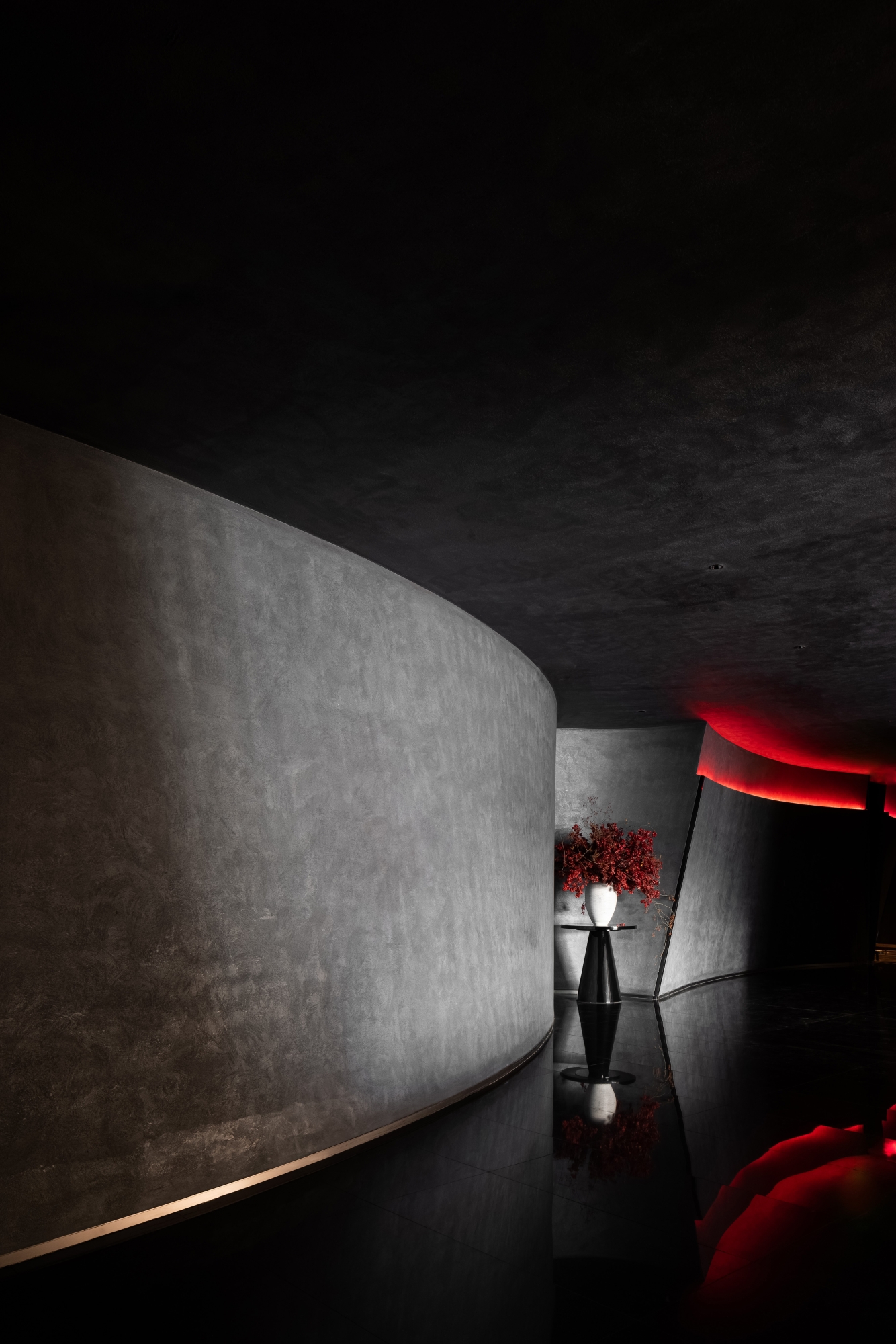 The project adopts modern materials and design techniques to interpret the Chinese restaurant. Curved surfaces and shapes divide the space and create the basic form of the restaurant. Curved forms break the stereotype of conventional Chinese restaurants, thus generating a unique spatial experience. Black mirrored stone materials applied to the floor create a water-like effect. Abstract forms reflected on the water-like floor make people feel as if they are walking into a beautiful “landscape painting”.