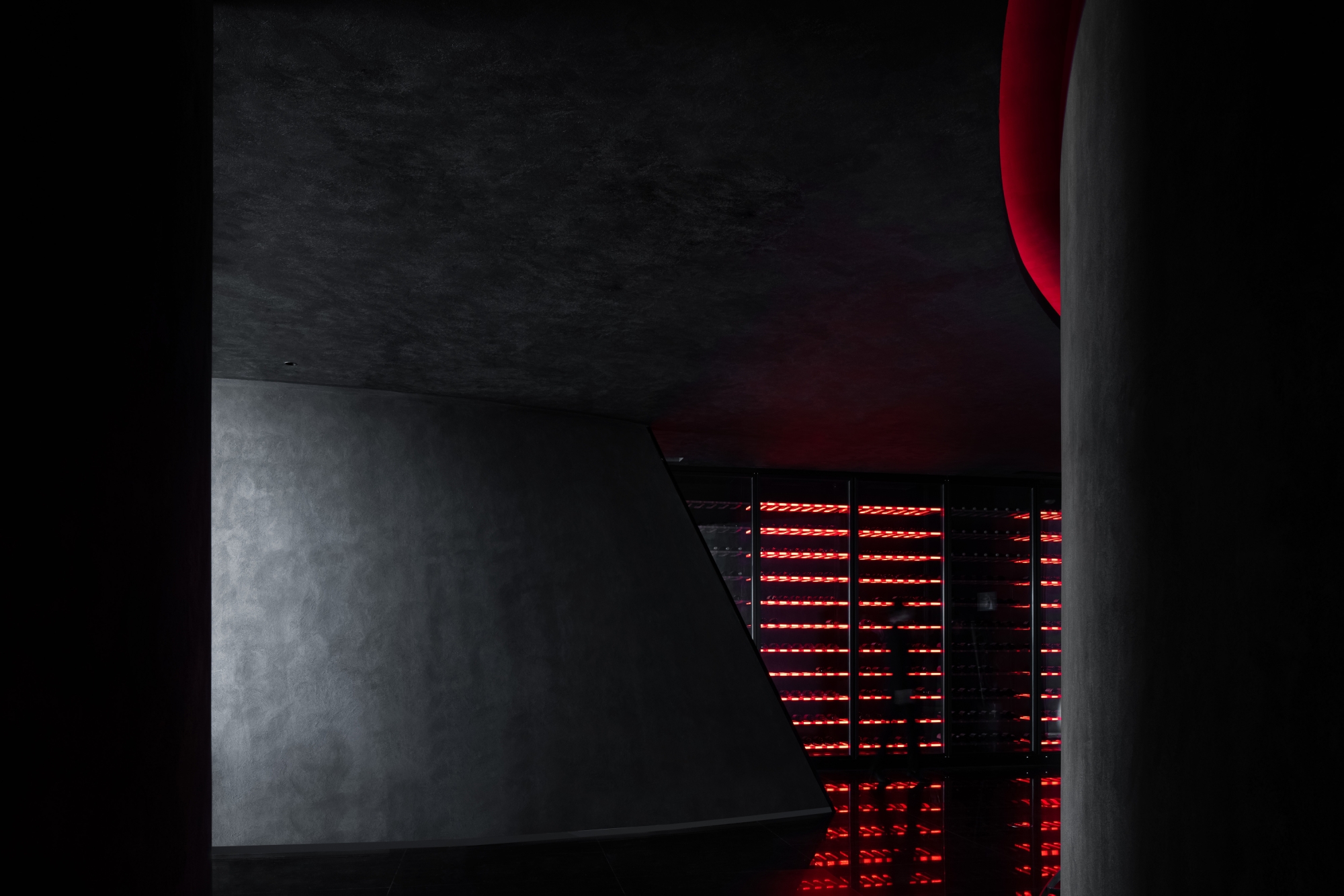 The black gall wood with soft texture and the black, natural and rough art paint from Italy enrich the black tone with varying aesthetics. Black mirrored stone materials and light gray wood applied to the floor reveal a sense of future and warmth.