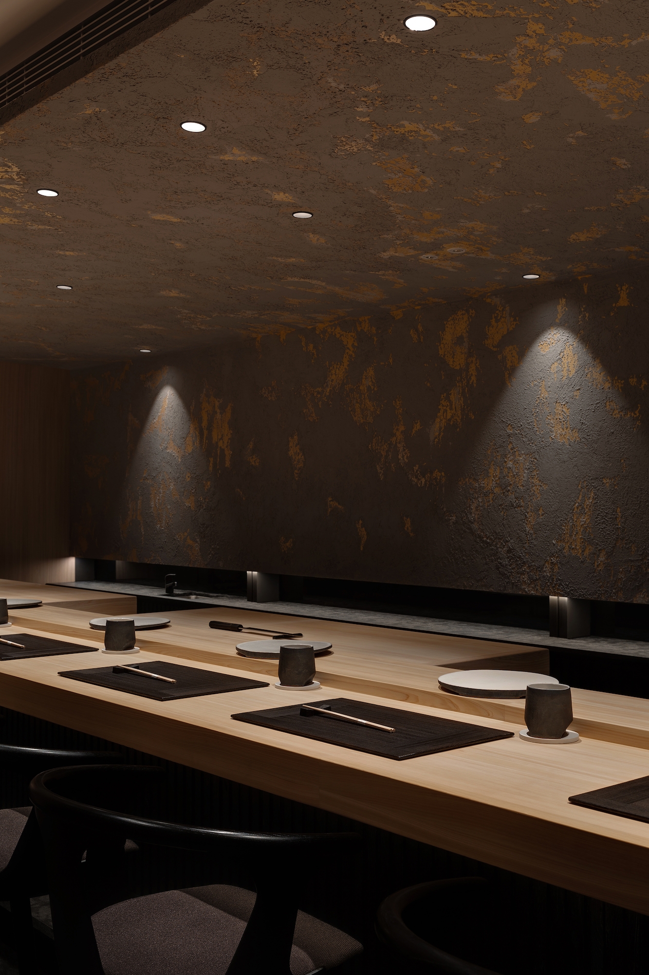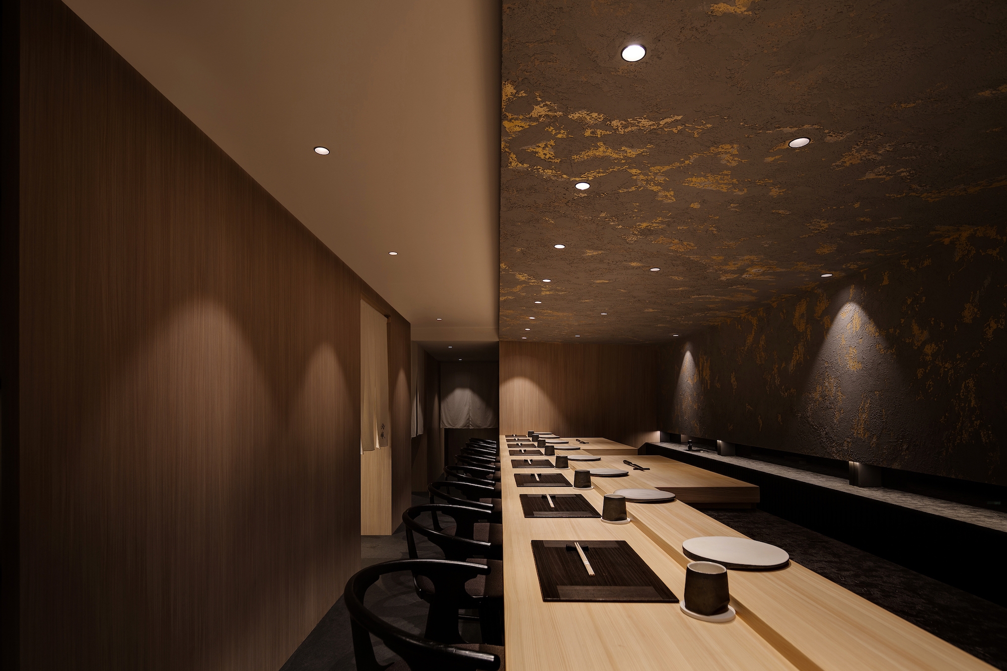 Sushi Kamosu is an Edomae Nigiri-Zushi Sushi-ya located on the 15th floor of a Hong Kong commercial building, the greatest challenge of this project is to express the Tradition, Spirit and Culture with design language and pass a Japanese Sushi-ya imagery to customer.