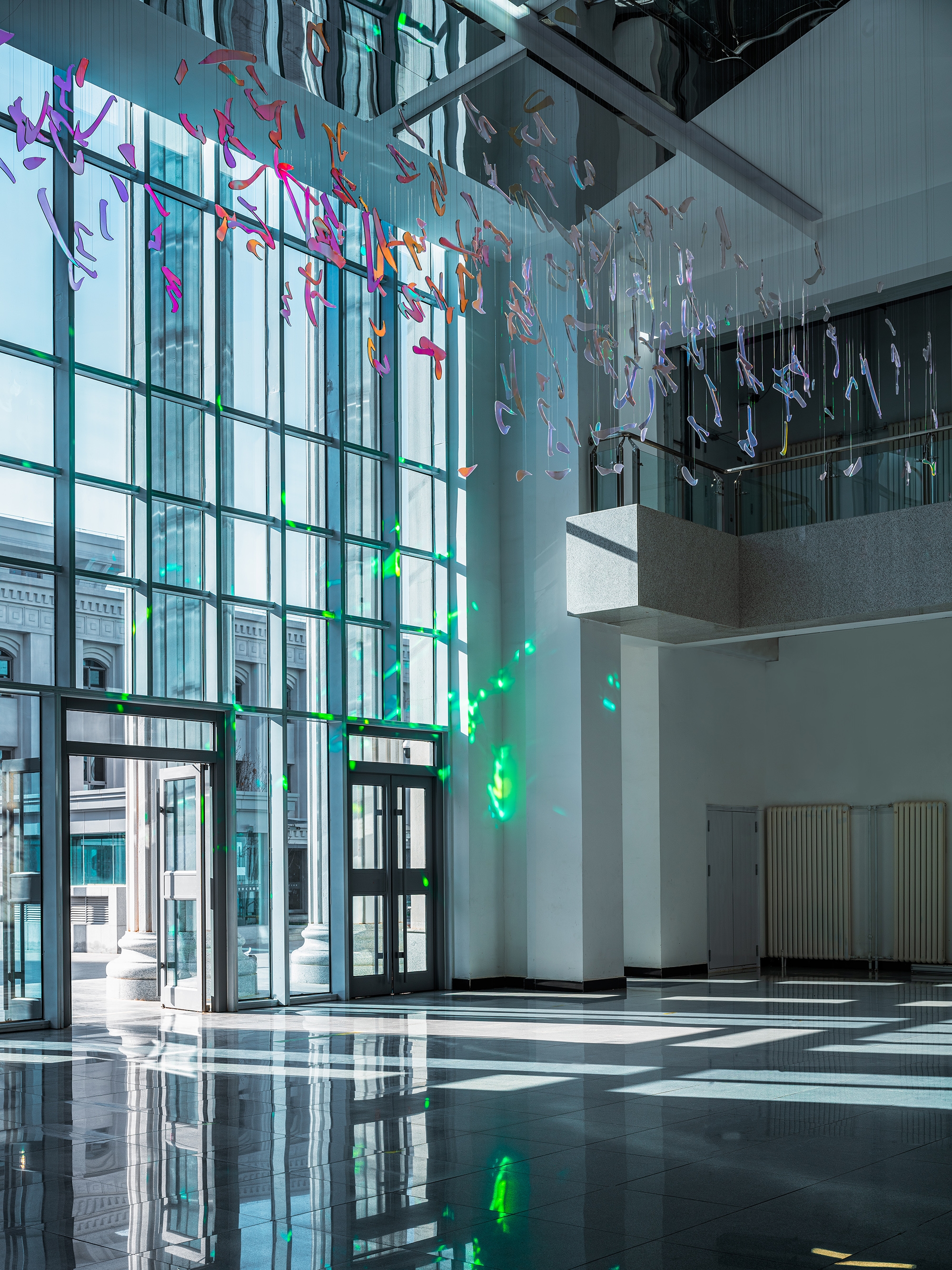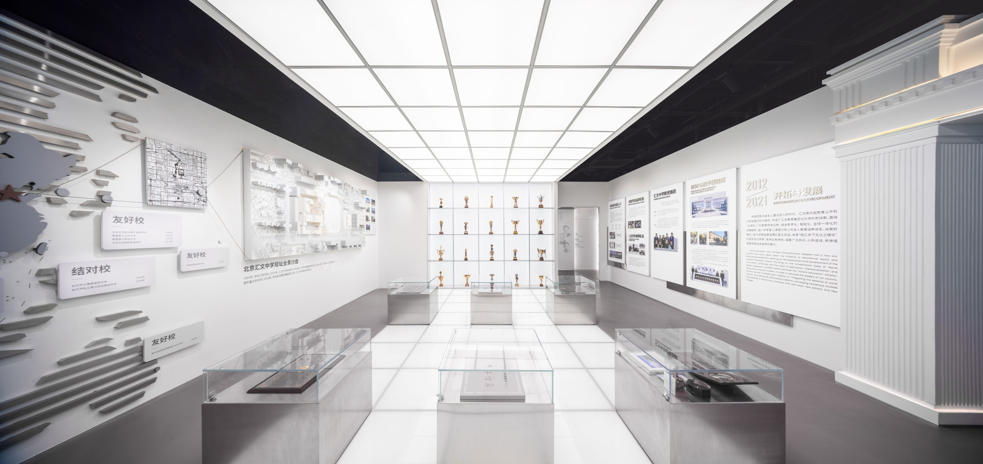 A series of new spaces and installations contributes to the 150-year history and culture of Beijing Huiwen Middle School. Advanced materials and laser positioning technology are used to present the school motto through optical illusions. The historical scenes restored in the school museum brought the alumni back to their common memories. With sound field and viewing angle calculation, the optimal solution is implemented in the design of the concert hall. An installation made out of cast glass and advanced concrete is inspired by an illustration published by the school 94 years ago. It not only expresses the school's tradition, but also provides opportunities for the formation of a new school culture in the future.