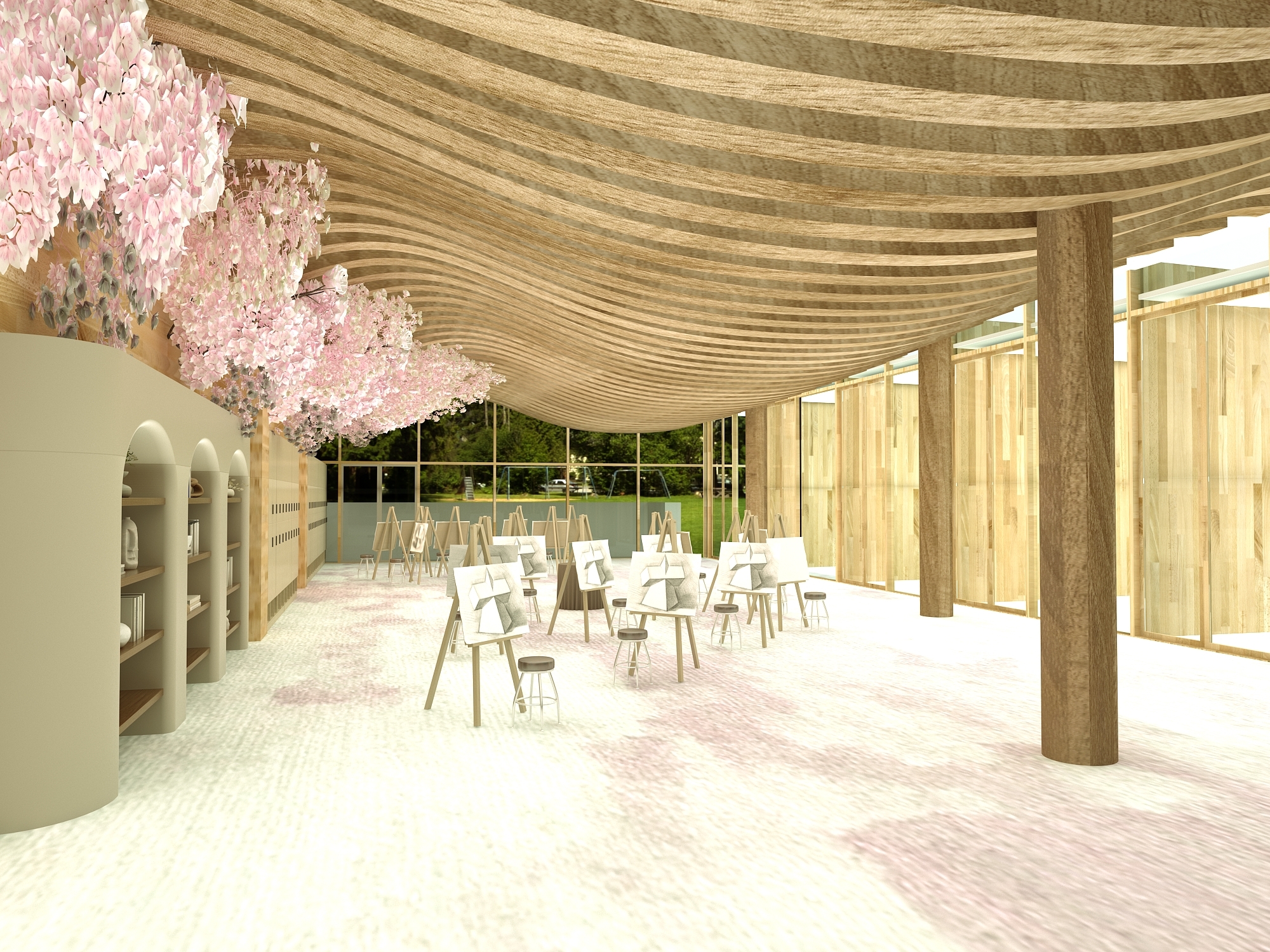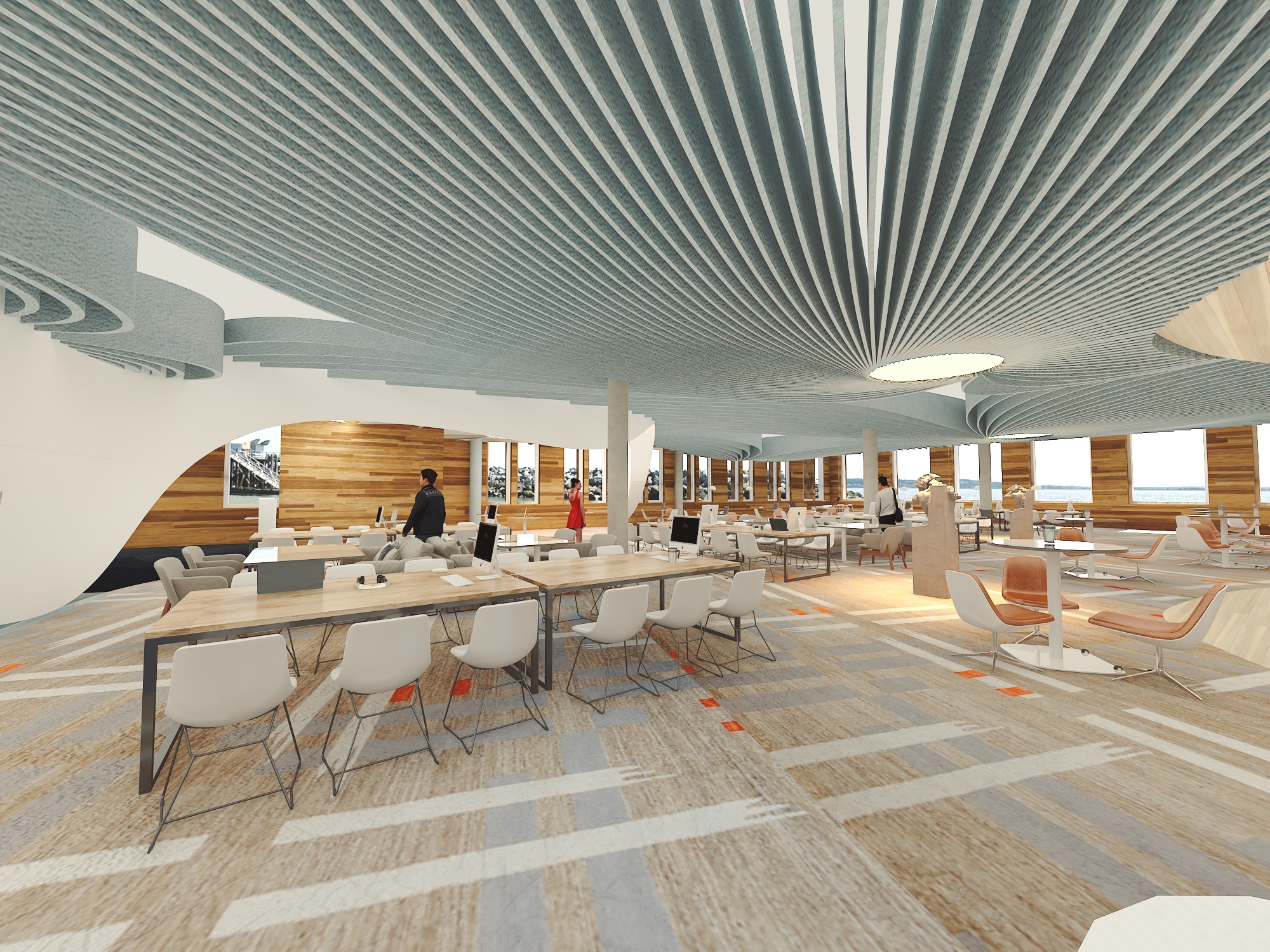 The newly designed learning environment at Salisbury University will become a contemporary space through the creative use of architectural elements making use of the five senses. A warm, inviting and comfortable atmosphere will be created through the sensible use of color theory, light theory, sound design, the HVAC system, and ergonomic design. The space planning, material, finish, and build-ins will reflect such theories as place attachment, attention restoration, third place, Pomodoro, bandwagon effect, and Maslow’s hierarchy of needs. In fact, all aspects of the new design will attend to students’ sensory needs as well as fuel their motivation and passion toward learning.