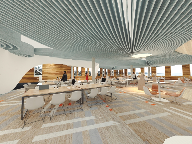 A new interior design in the Patricia R. Guerrieri academic commons will provide students at Salisbury University with a perspective than enhances their learning environment. This new design will include plans that provide each student study space with a variety of environmental options for different types of learning. Moreover, the design will enhance the flexibility of the space, so the student can feel comfortable studying, relaxing, or interacting with others.