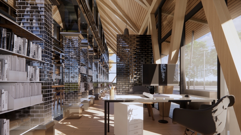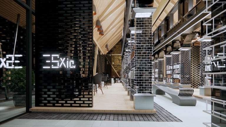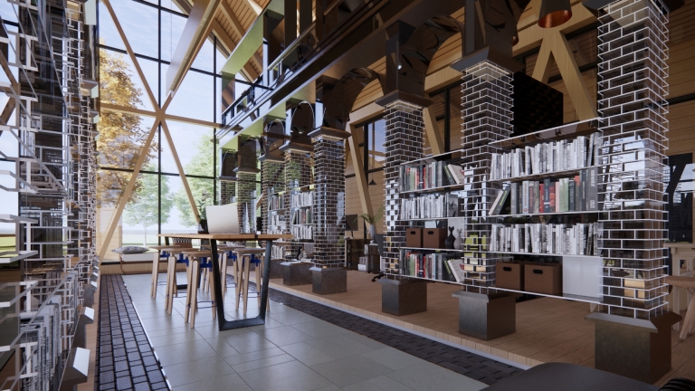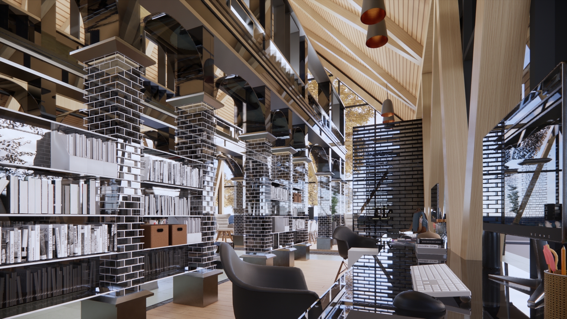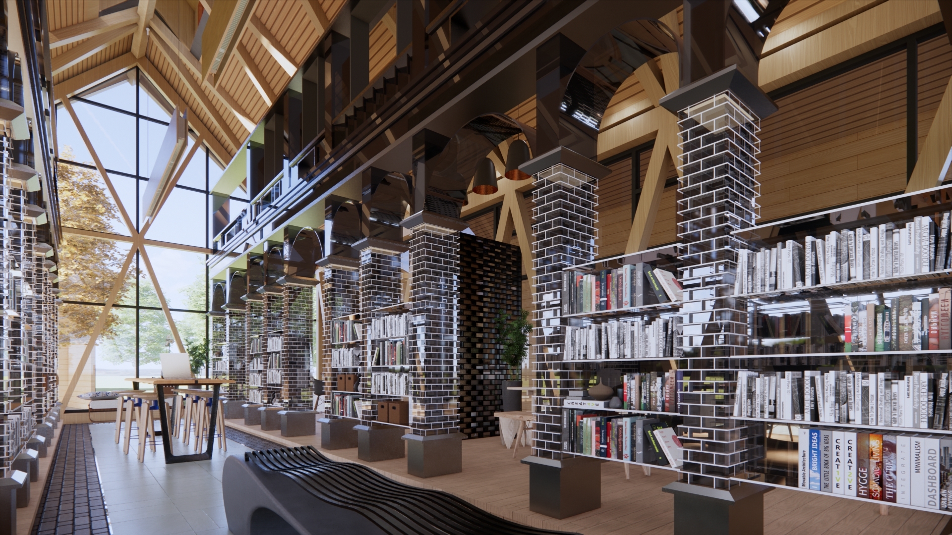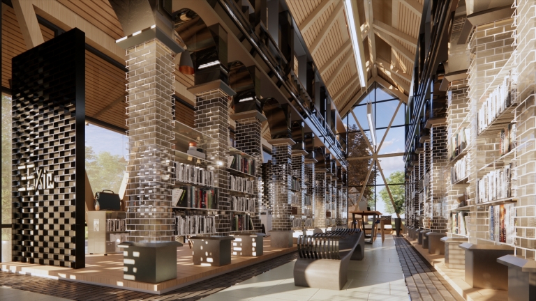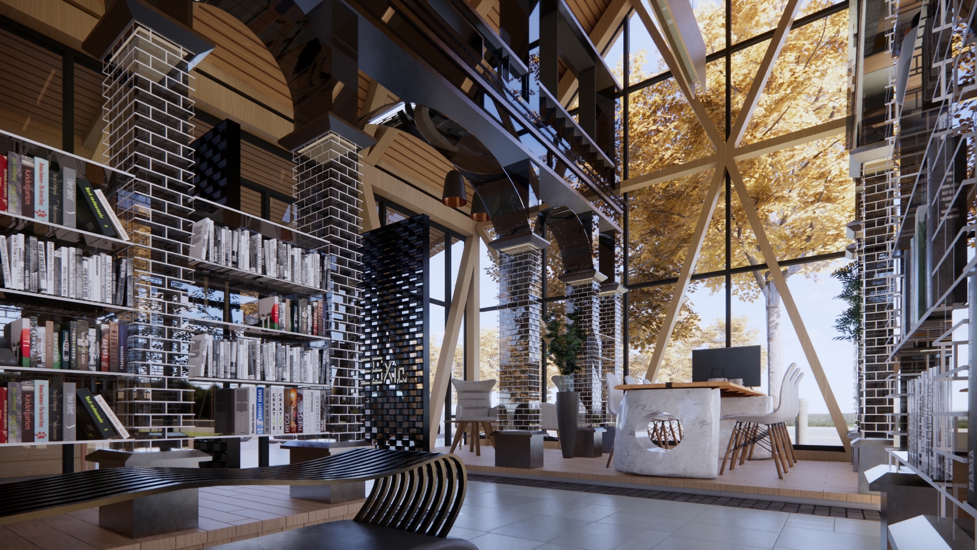Sanxia was an early distribution center of camphor, tea and cloth to be exported from Taiwan.Inspired by the old streets of Sanxia, With decorated archways and brickwork designed in a Baroque style, I combined modernist aesthetics into my design and rebuilt the images of the streets of Sanxia, making the structures with glass and iron. My intention is to show people who enters this space my way to express the imageries of the old streets of Sanxia.