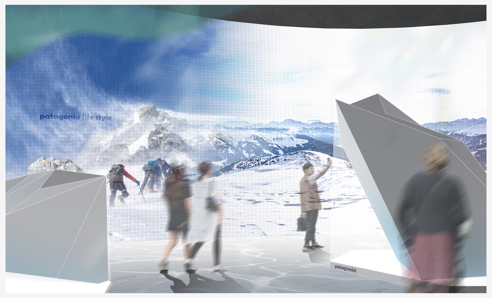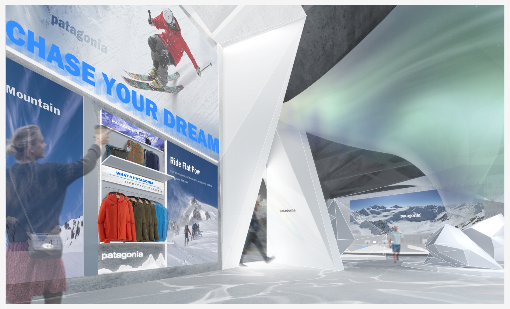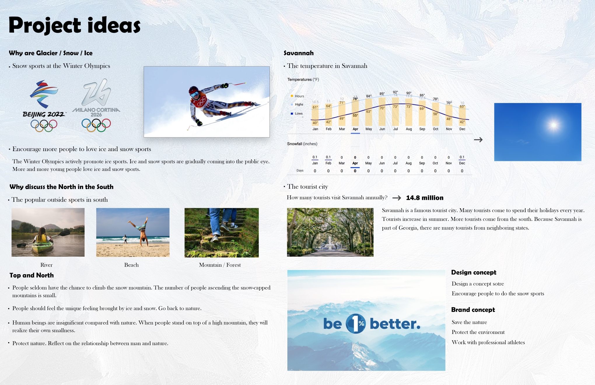 Savannah is a very beautiful city, and many people from the South come to spend their holidays in the hot summer. Most of Savannah's sportswear stores are yellow in color. The city needs a colorful, bold, and intensely styled sportswear store. Moving the "snow and ice" of the north to this city is my boldest idea, and also my romantic concept.