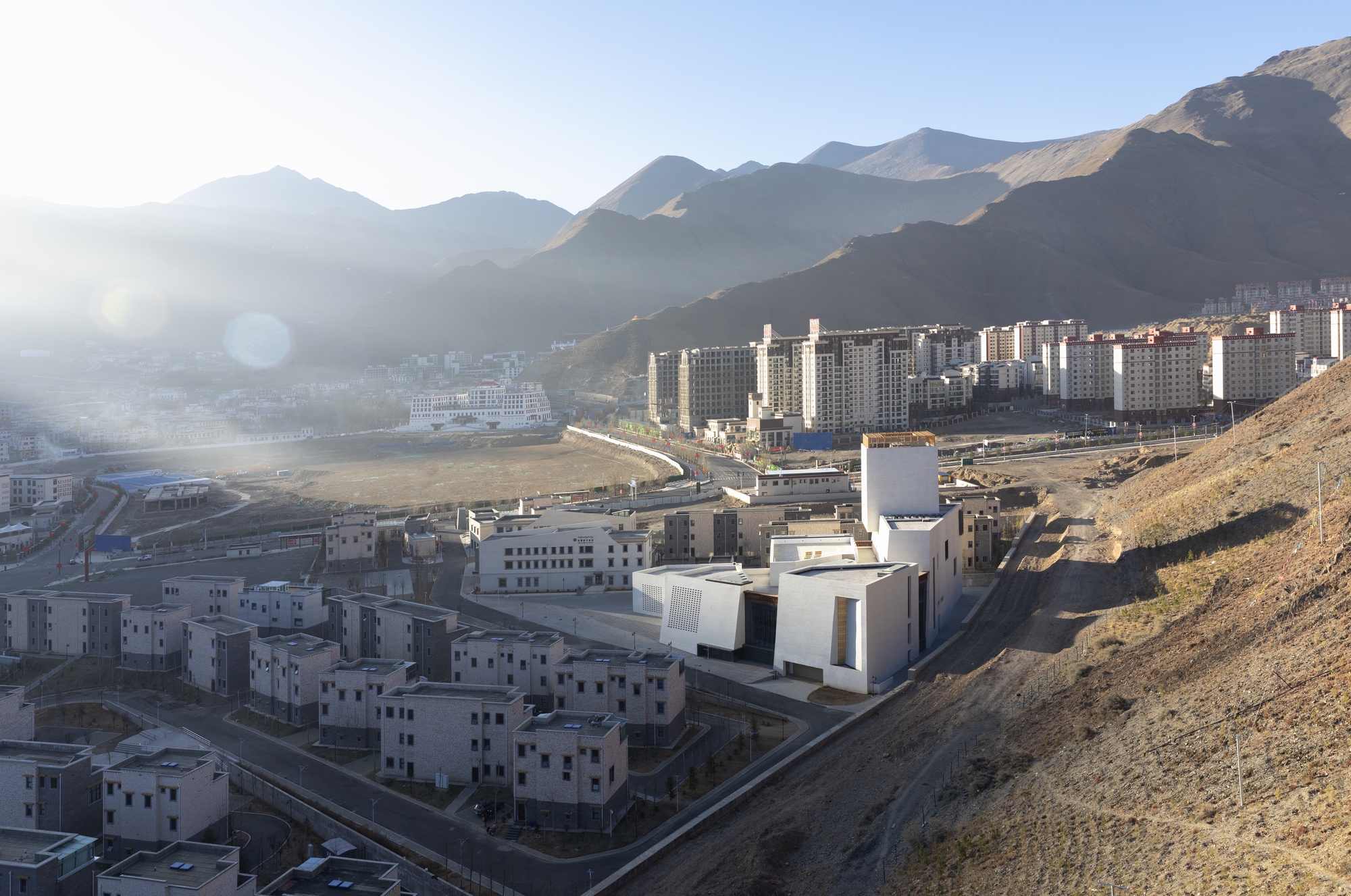 The building is deeply connected to Lhasa culture; following the inclined walls traditions, the monastery’s composition of volumes.