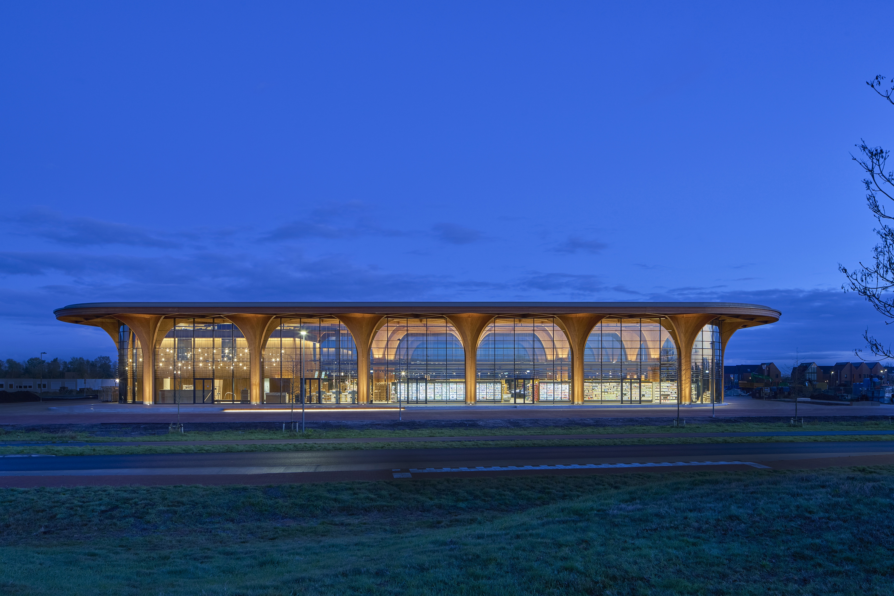 SuperHub represents a revitalised, circular version of the traditional market hall design, inspired by the mission to better connect the burgeoning district of Meerstad, Groningen and transform it into an interactive social space. With the neighbourhood’s future expansion in mind, Meerstad needed a sustainable and inviting community centre to serve as a place for residents to shop, meet, eat, and more.