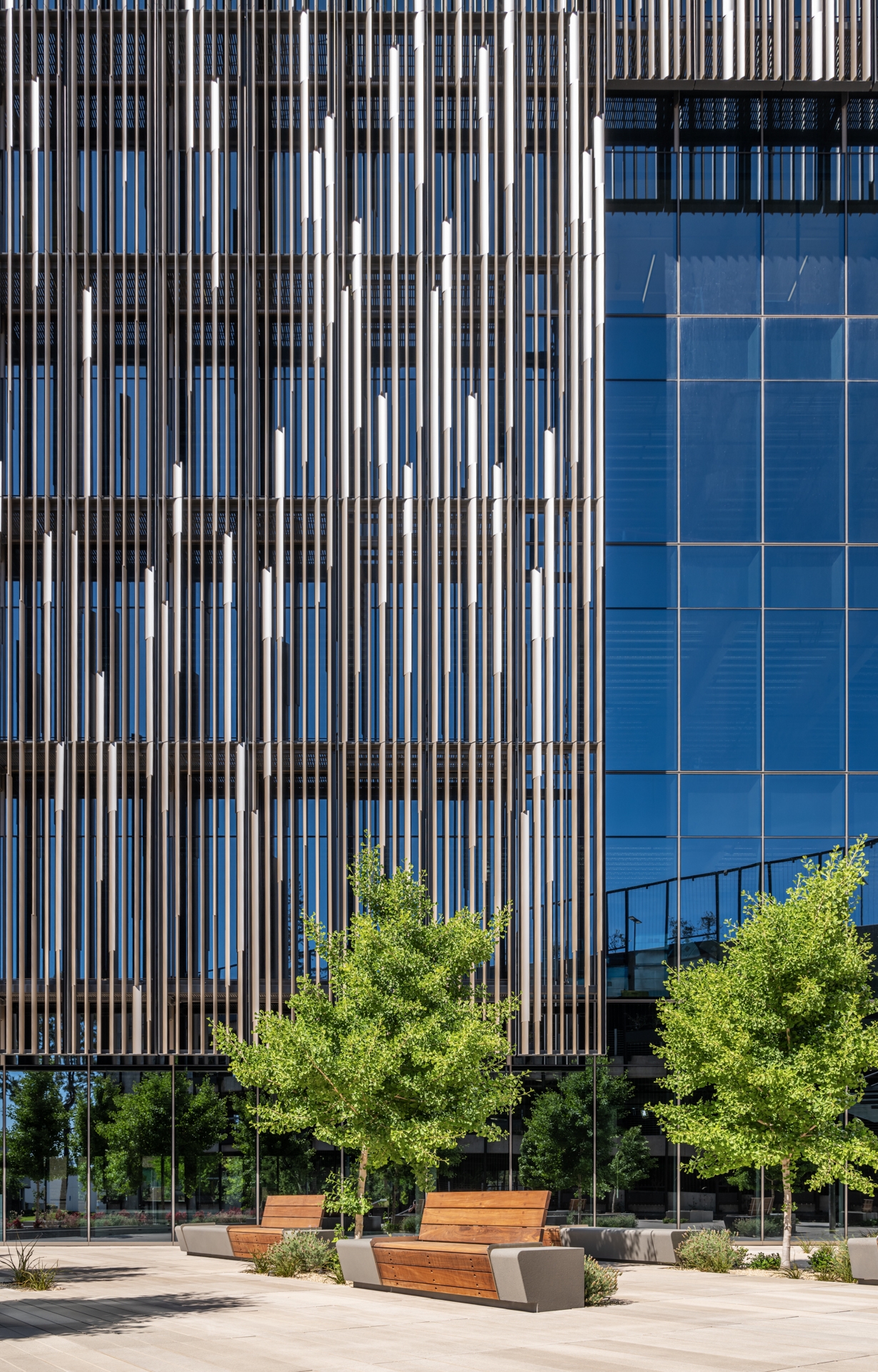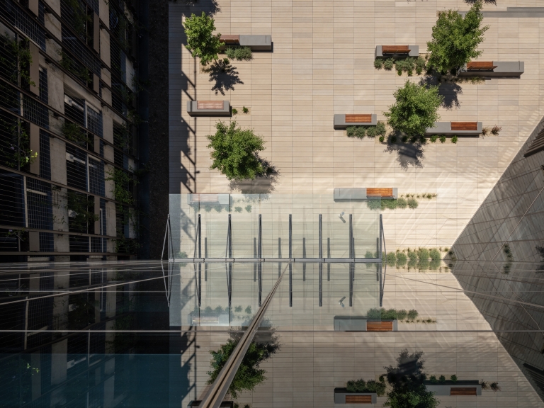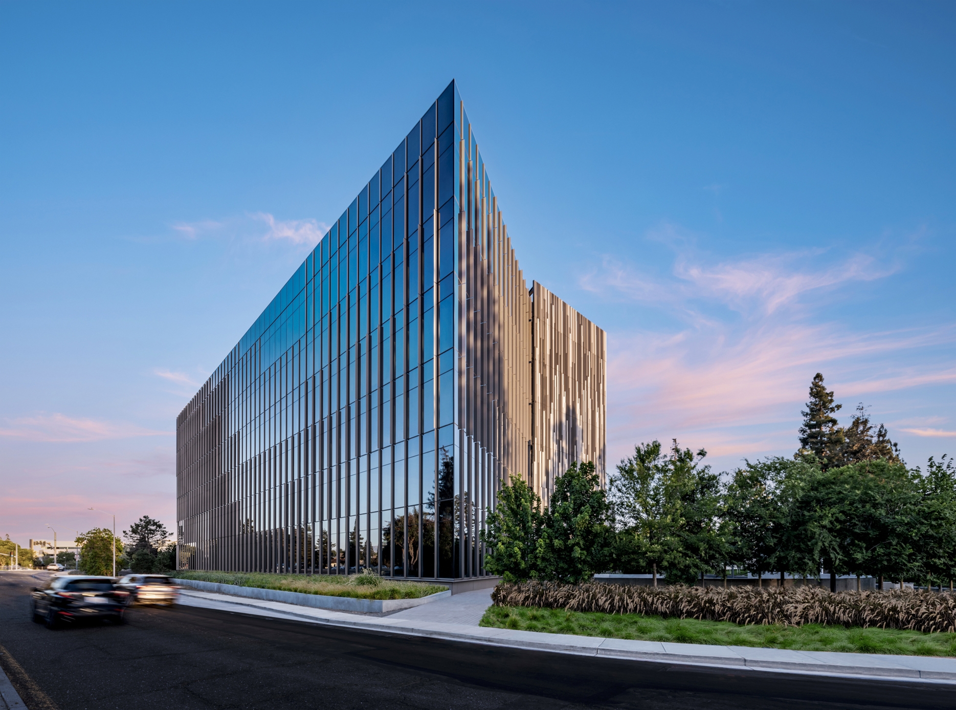 At a busy intersection in Santa Clara, Thirty75 Tech nestles into its urban site creating a new public space against a backdrop of office parks & freeways.