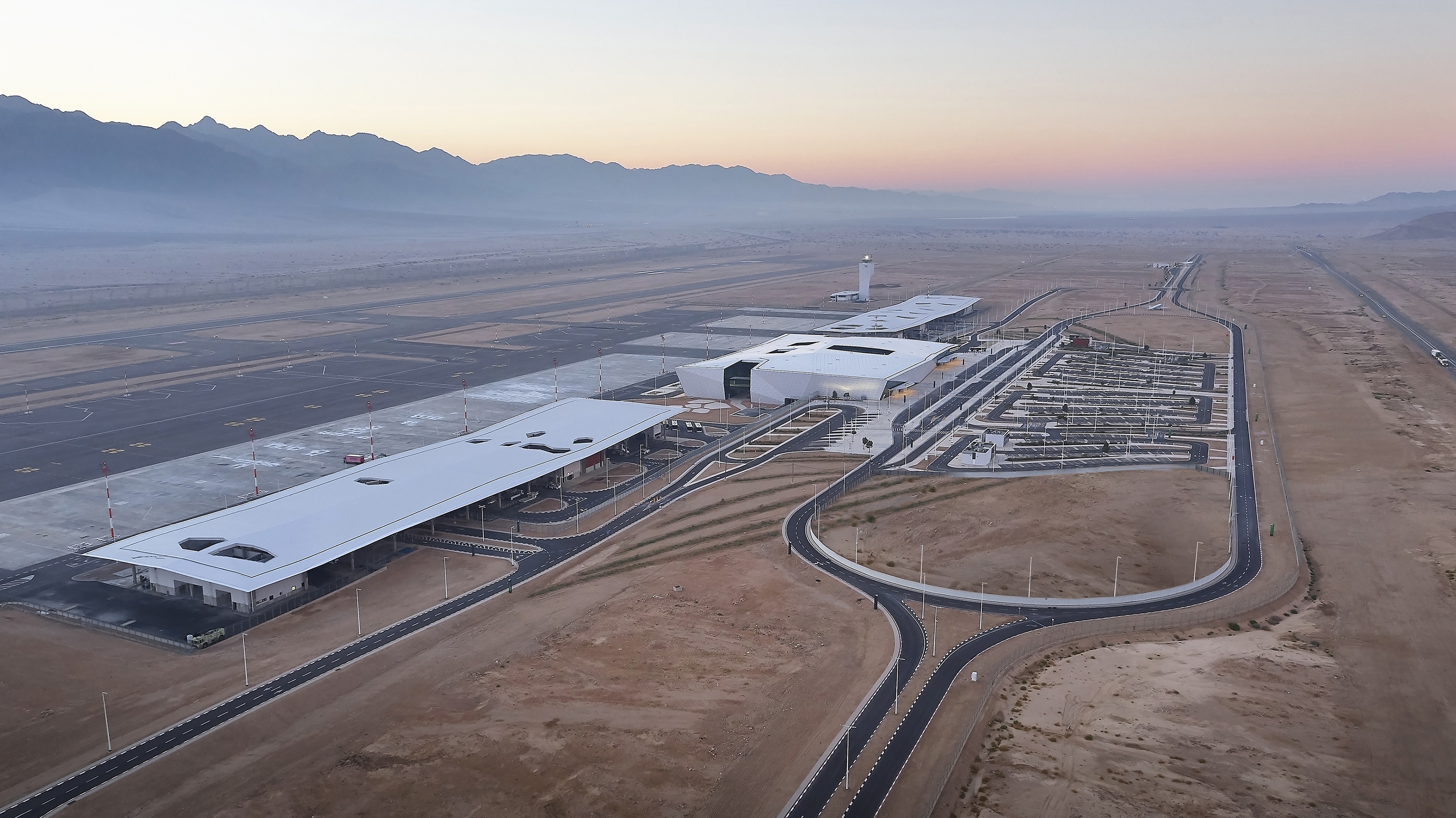 The International Airport serving the southern city of Eilat on the Red Sea is Israel’s first civil airport built from scratch (“Greenfield”). This mega project ia also unique as all its master planning, architectural and engineering design was under the responsibility of an architect. It was managed by Architect Amir Mann of Mann-Shinar as the Head of Team, in collaboration with the office of Moshe Zur, and with a team of 45 engineering companies, including Arup Aviation and Case Technology on the luggage handling systems.