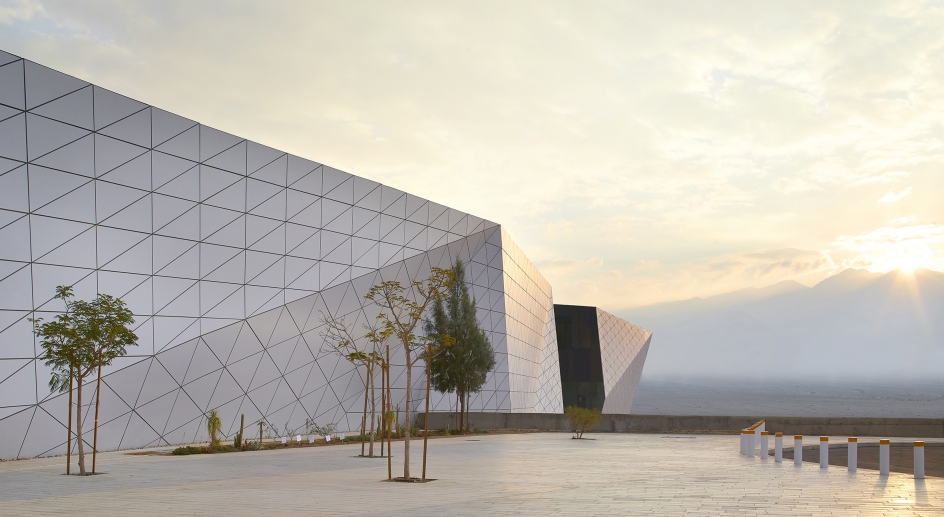The airport features a 3,600 m long runway and taxiway, aprons and support structures, at the center of which is the Passenger Terminal, all designed for annual capacity of 4.5 million passengers. A futuristic desert mirage: the entire airport is unified under one total architectural language, its inspiration drawn from the minimalist yet awesome desert surrounding as well as the world of aviation and technology. The Terminal Building is a self shading volume, shaped by the movements of incoming and outgoing traffic, similar to the desert boulder shaped by the forces of nature. The 50 m high Air Control Tower (ACT) is designed similarly as a origami env