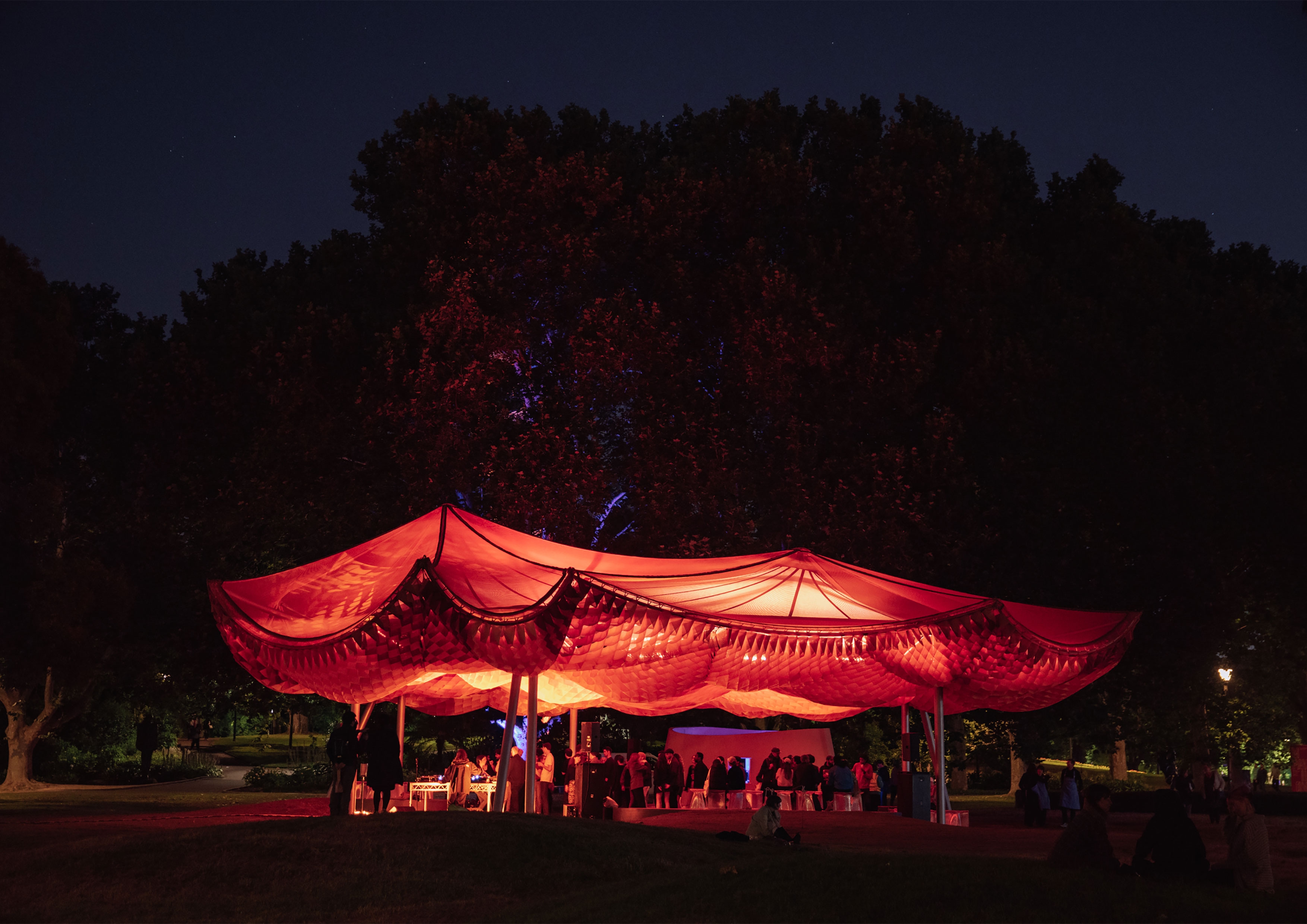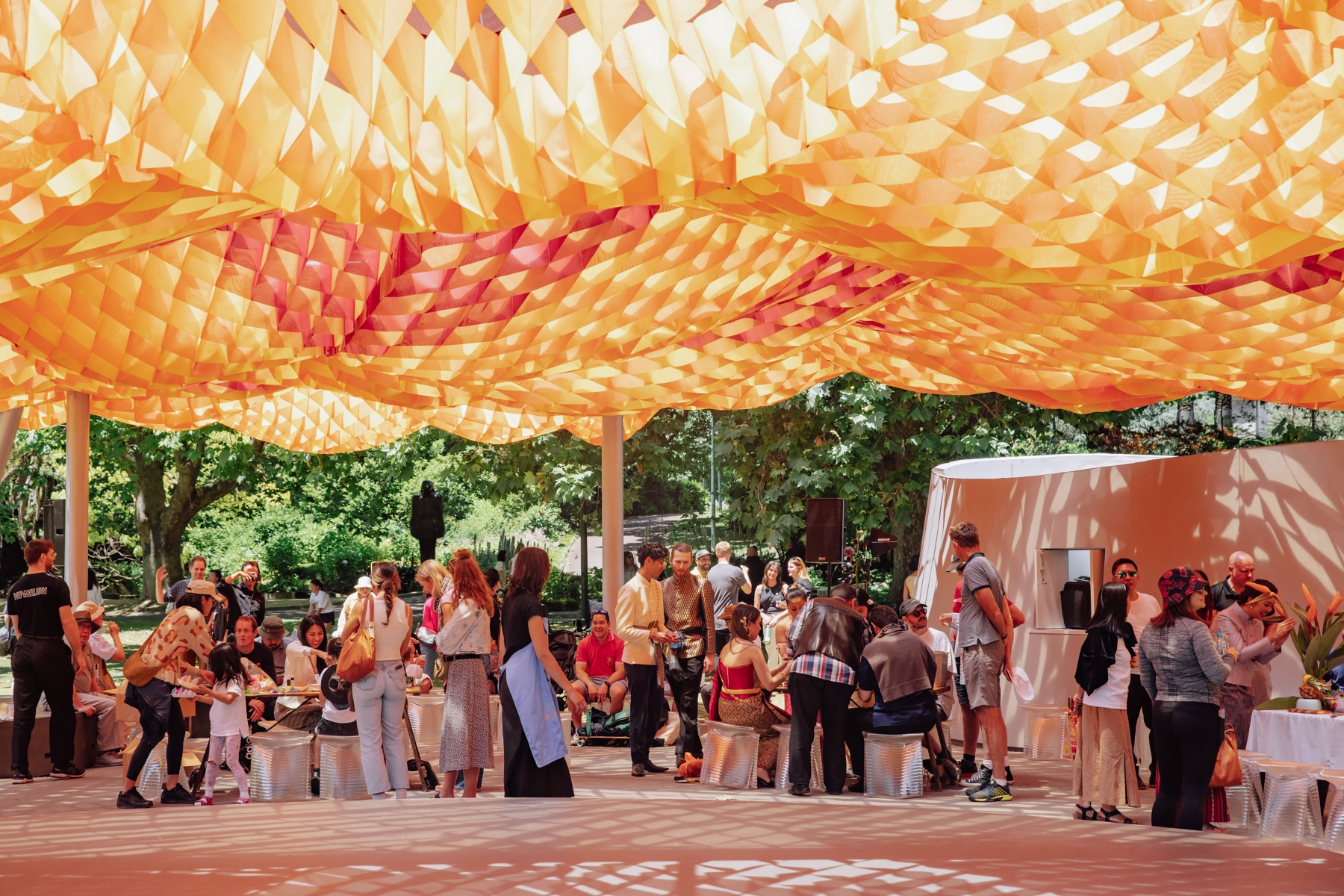 MPavilion 2022’s inventive employment of experimental tensile, fabric-based construction tests the boundaries of traditional architecture to provide a sophisticated solution that uses considerably less material than traditional building practices. A conceptually and ethically anchored design with people at its heart, MPavilion 2022 brings people together under its joyous canopy to celebrate Melbourne’s creative and cultural life.