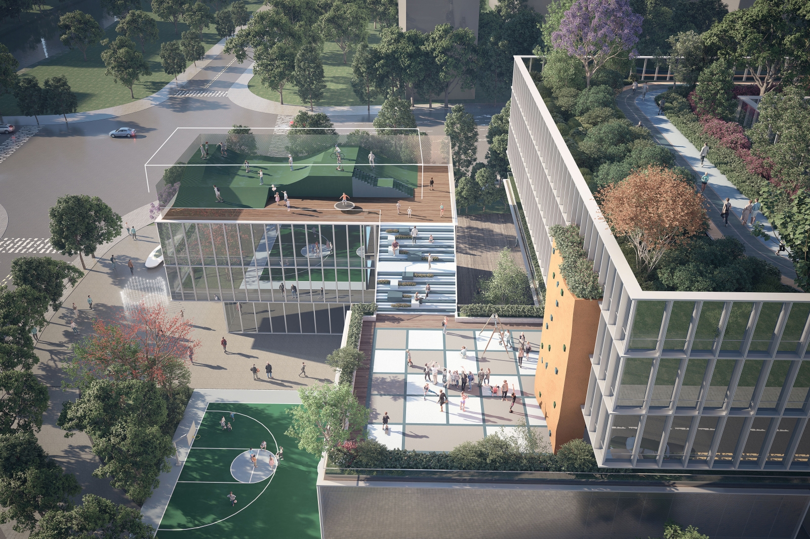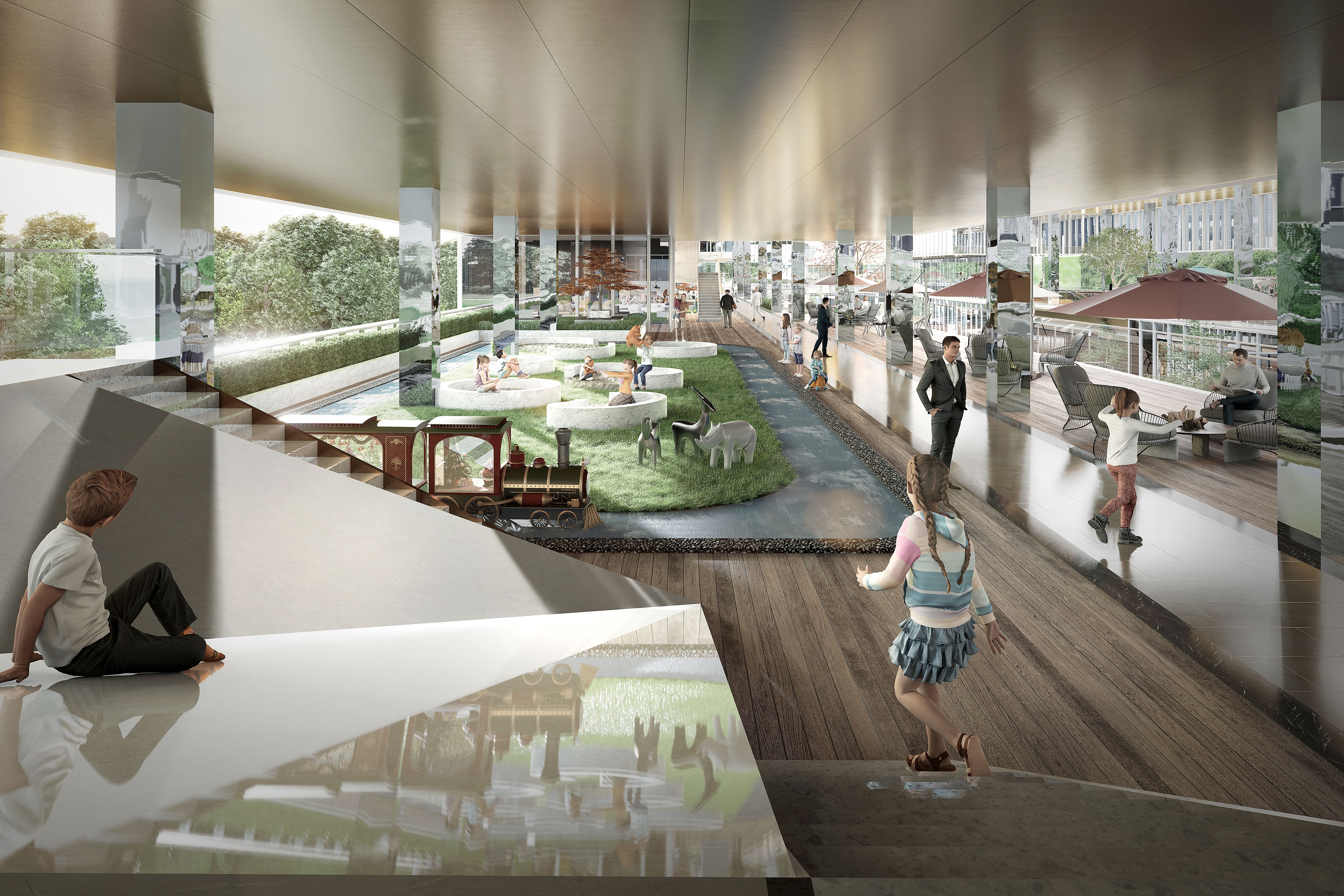 In summary, the park spaces within the project establish a dynamic connection with the environment, offering recreational opportunities and enhancing the overall aesthetic appeal. They revolve around the three fundamental needs of life, spirit, and ecology, forming the fundamental essence of the building.